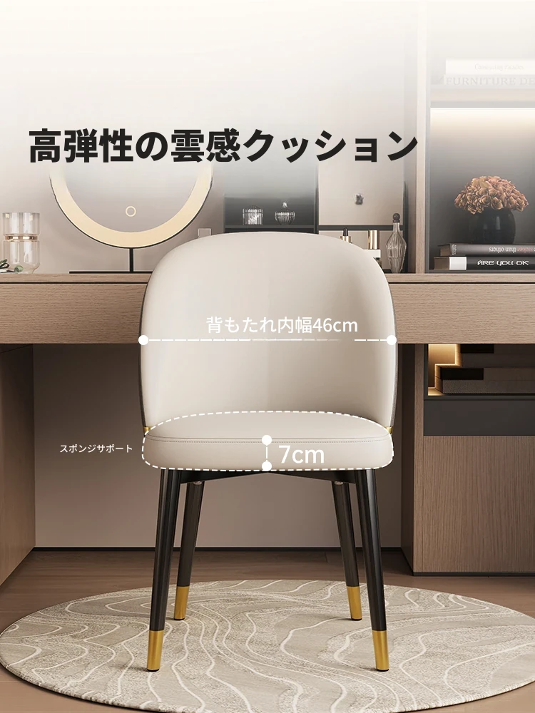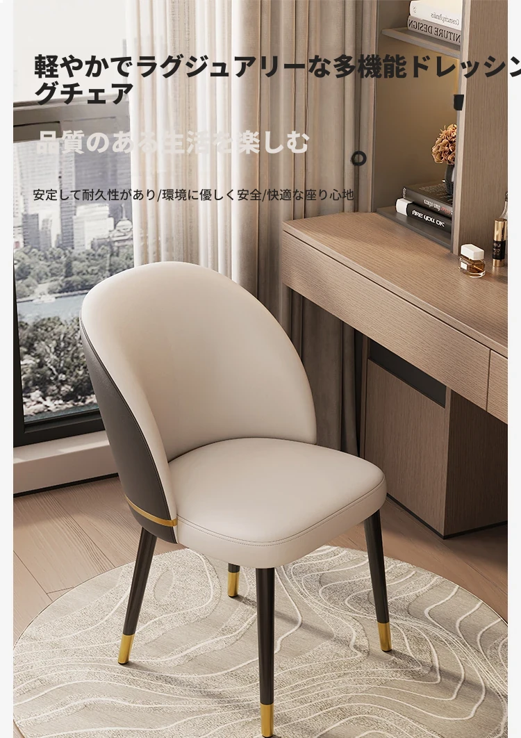 モダンシンプルメイクスツール|寝室にぴったりの化粧台|軽やかに贅沢感を演出|美容院やネイルサロンにも最適|背もたれ付きの快適な椅子|ダイニングチェアとしても使える多機能デザイン
