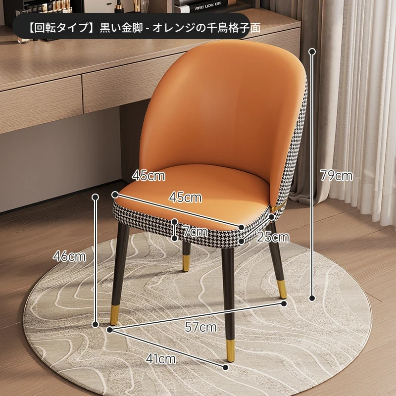 【回転タイプ】黒金脚-オレンジの千鳥格子面【雲のようなクッション❤長時間座ってもへたらない】
