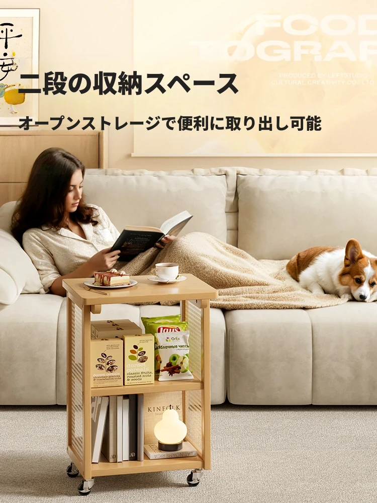 移動式ソファサイドテーブル|シンプルでモダンなデザインの小型ティーテーブル|リビングや寝室に最適なクリエイティブなサイドテーブル兼収納ラック【おしゃれなライフスタイルを演出】