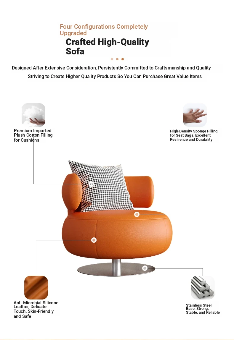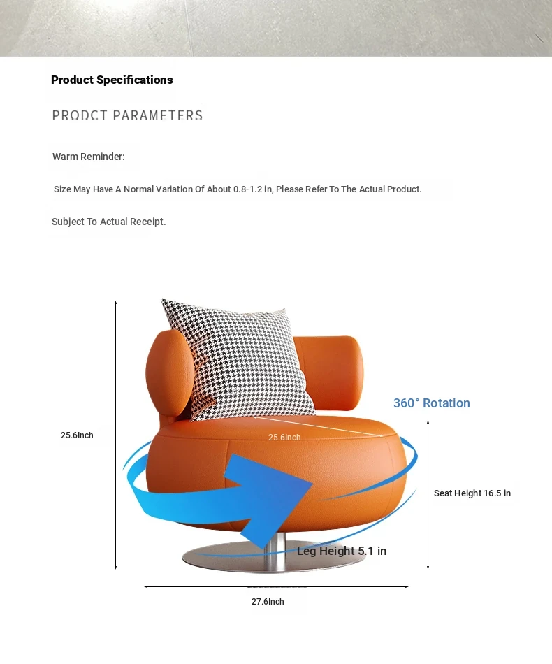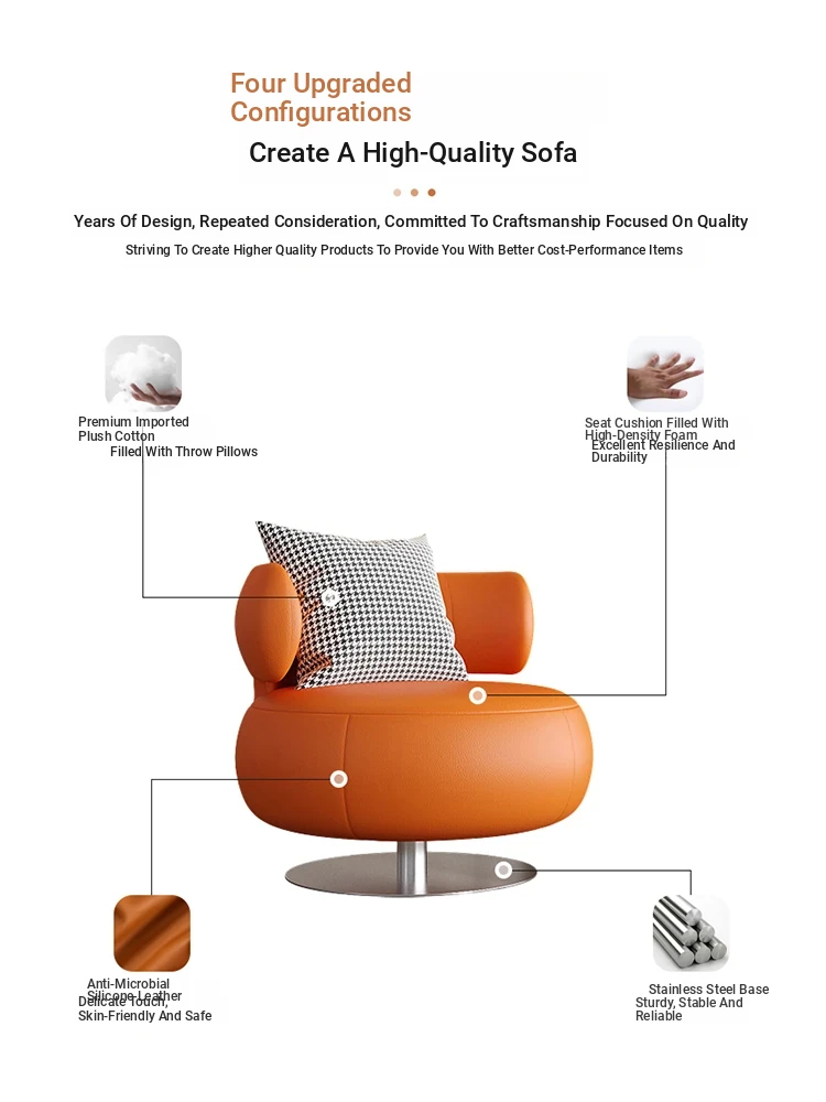 Modern Minimalist Single Sofa Chair - Rotating Leisure Chair for Beauty Salons, Hotels, and Balconies - Stylish and Comfortable Seating for Relaxation and Reception