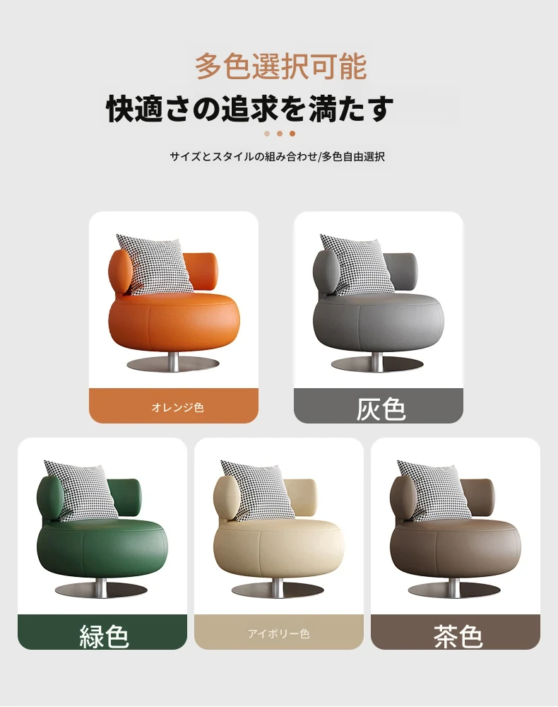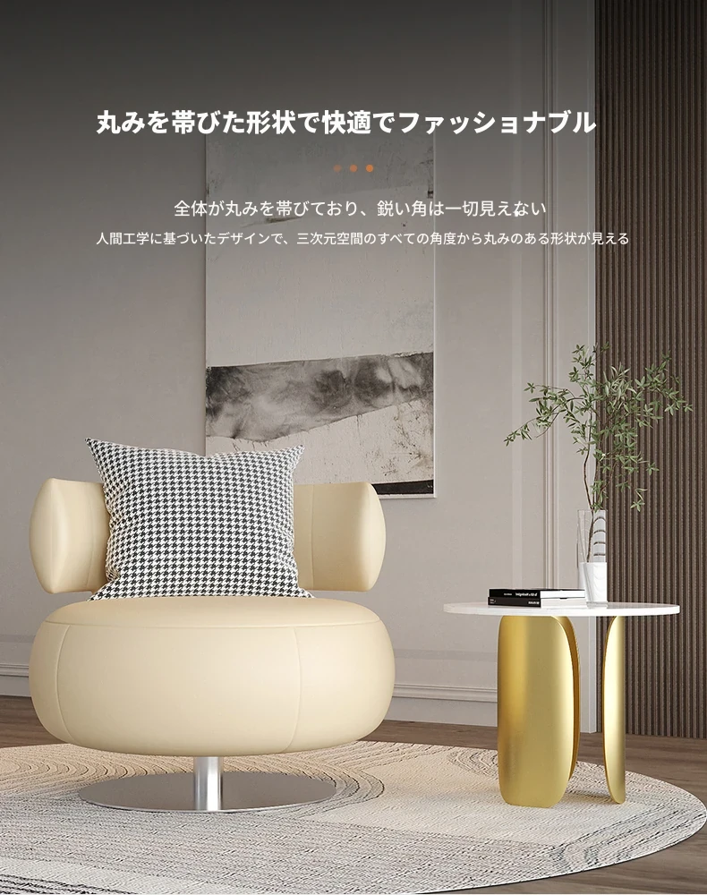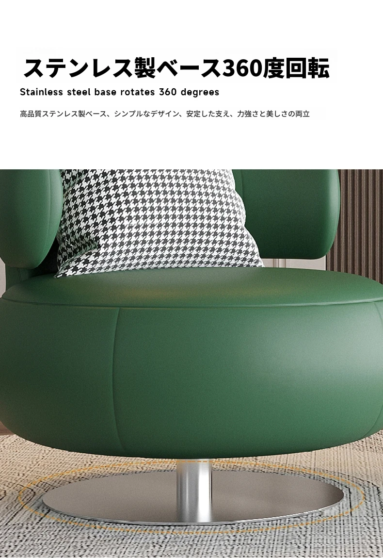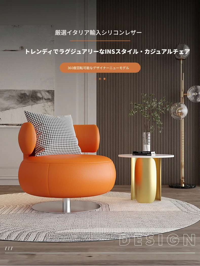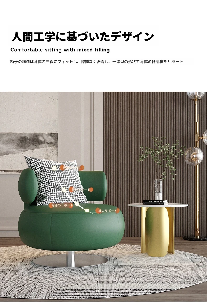 モダンシンプルな一人掛けソファチェア - リラックスできる回転式デザイン、軽やかなラグジュアリー感!美容室やホテル、バルコニーの休憩・接待に最適です。あなたの空間に洗練されたスタイルをプラス!