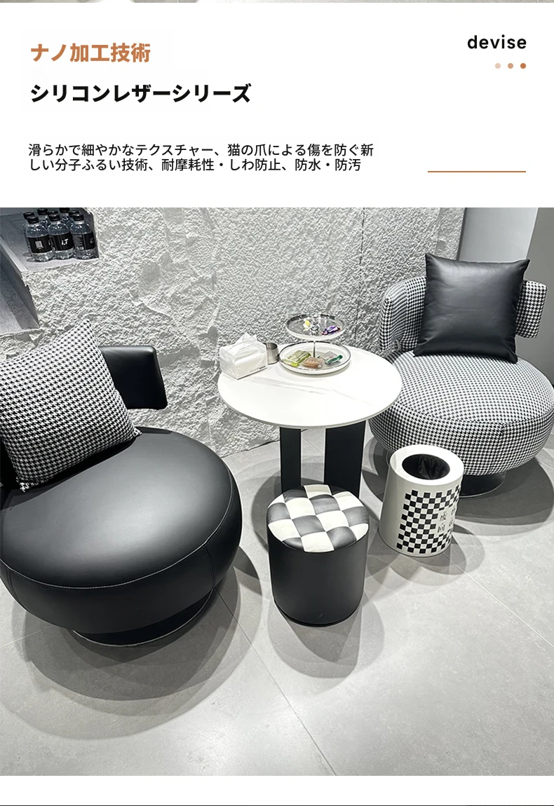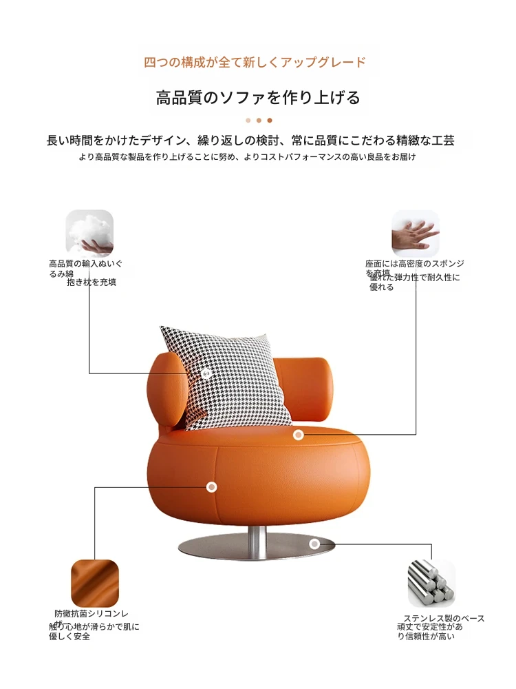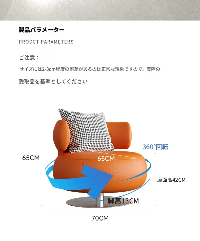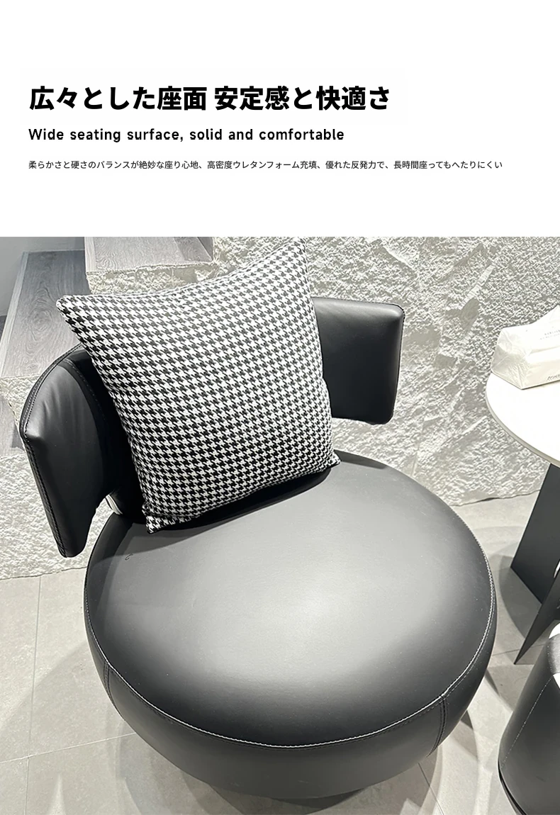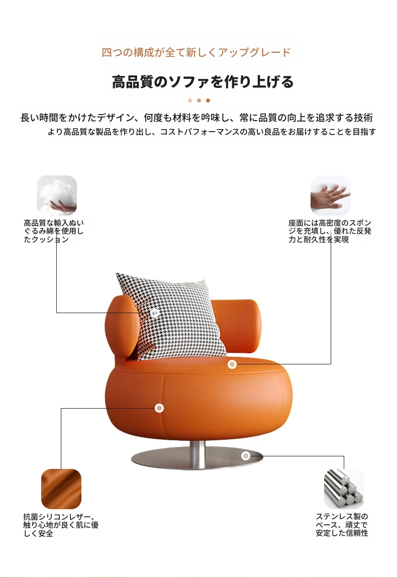 モダンシンプルな一人掛けソファチェア - リラックスできる回転式デザイン、軽やかなラグジュアリー感!美容室やホテル、バルコニーの休憩・接待に最適です。あなたの空間に洗練されたスタイルをプラス!
