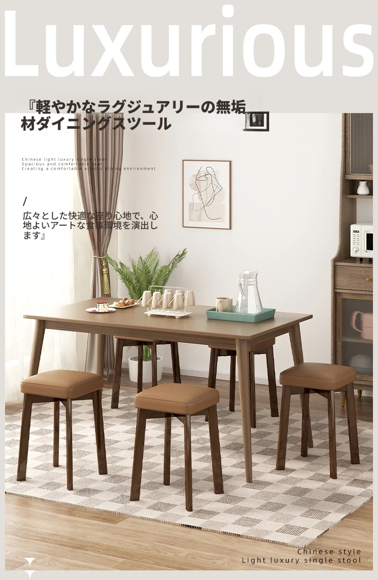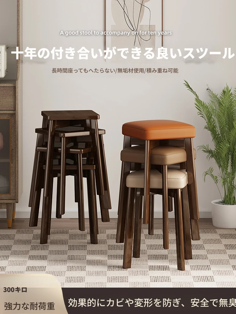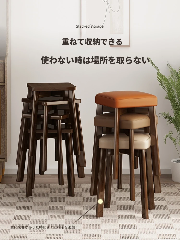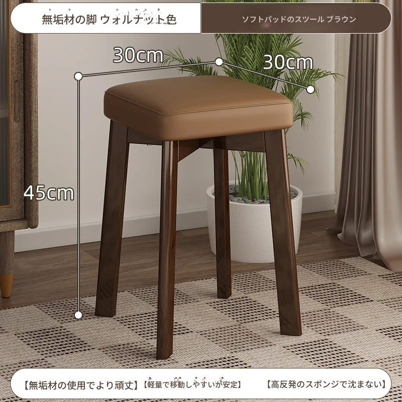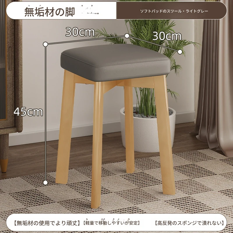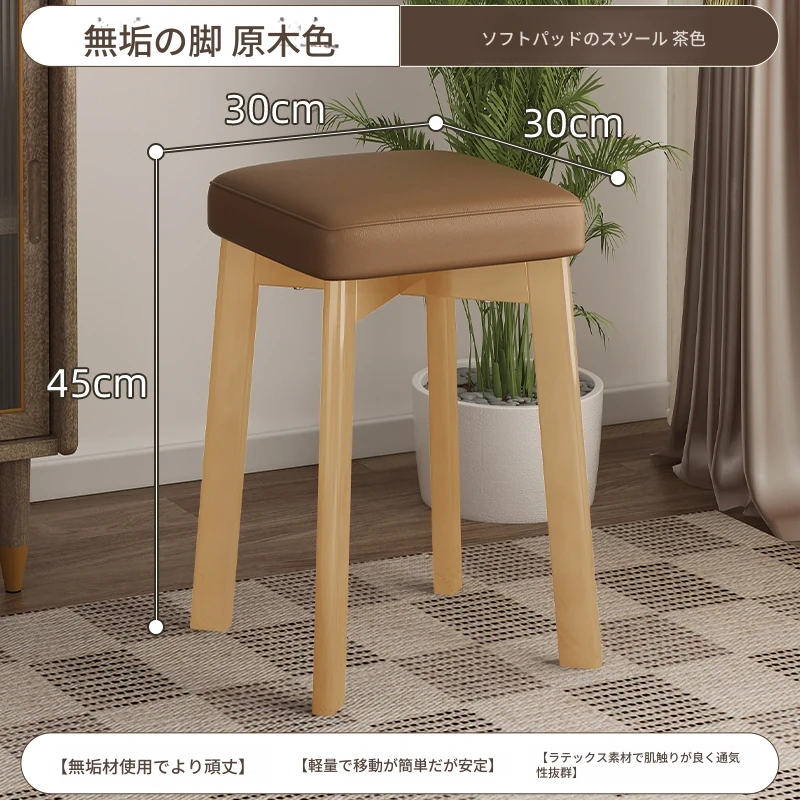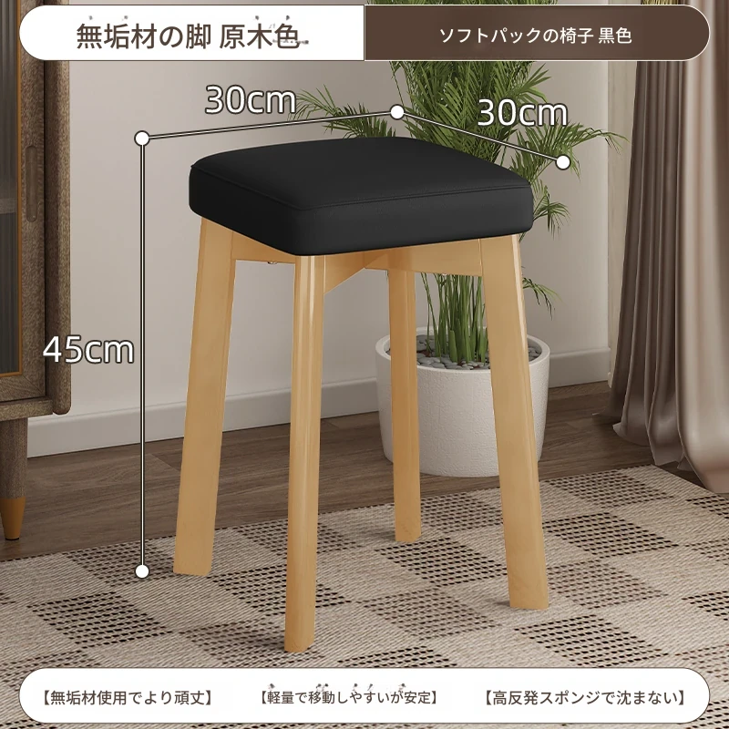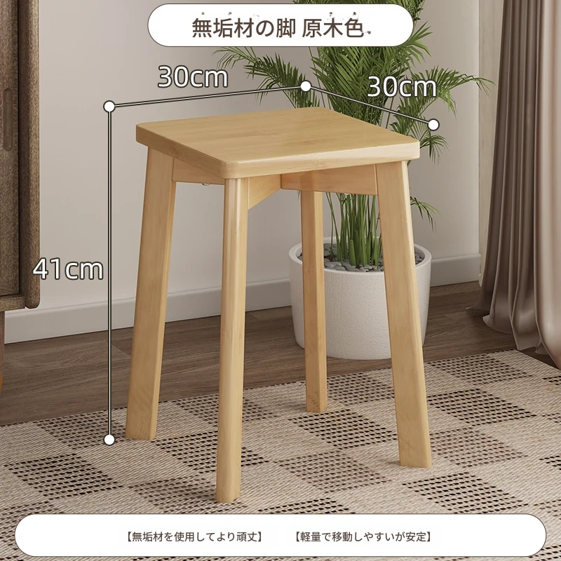 モダンでシンプルな家庭用小型スツール - おしゃれな円形スツール、重ねて収納可能!実木製の四角いスツールと低いスツール、ダイニングテーブルにぴったりのデザインです。