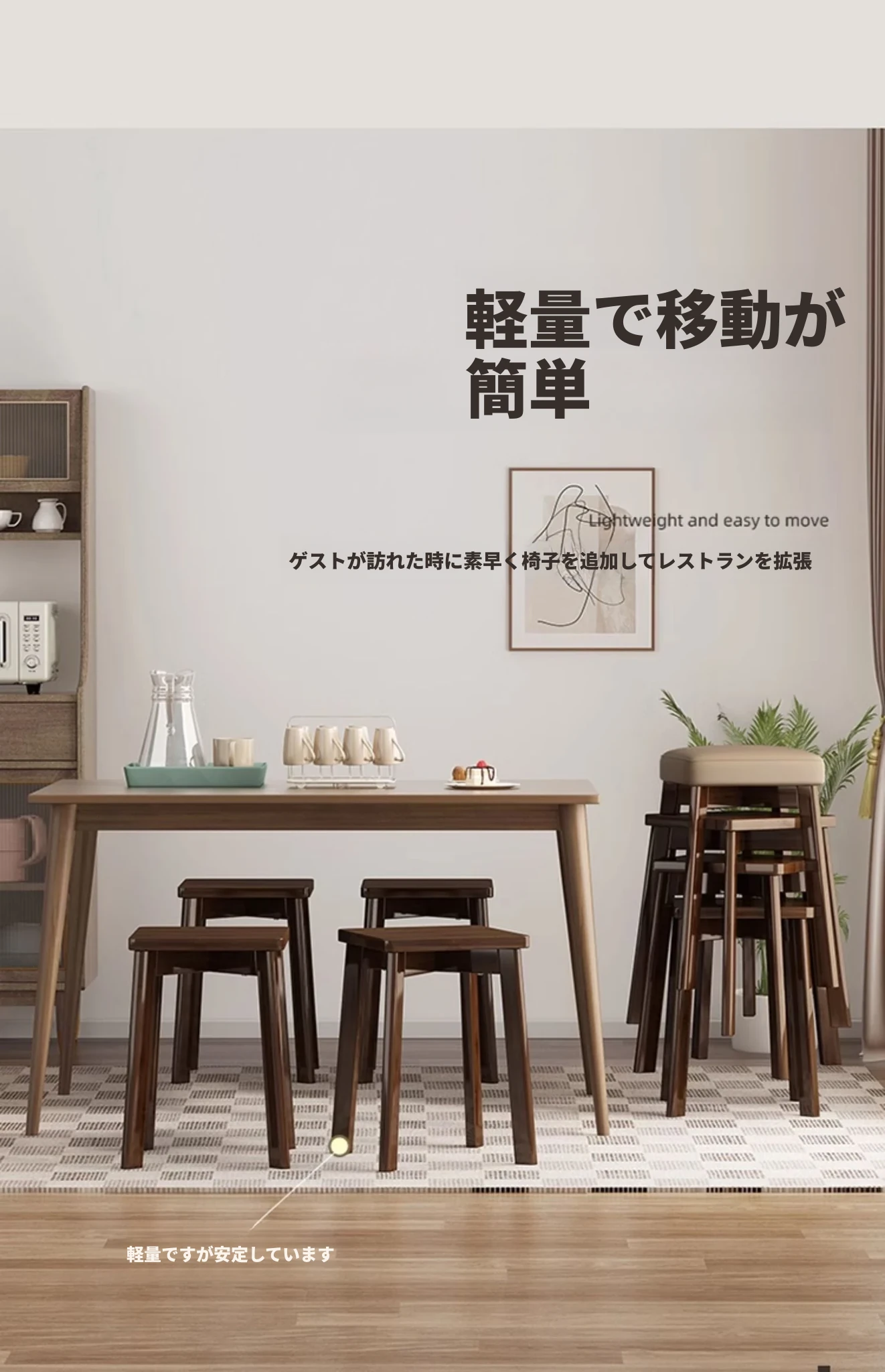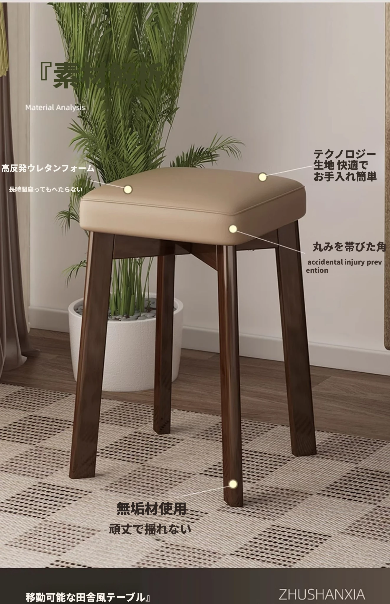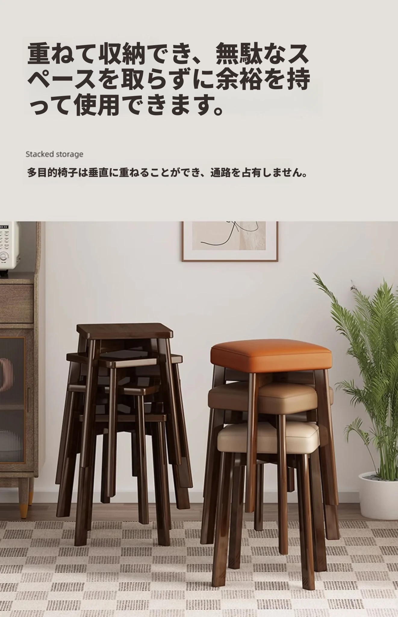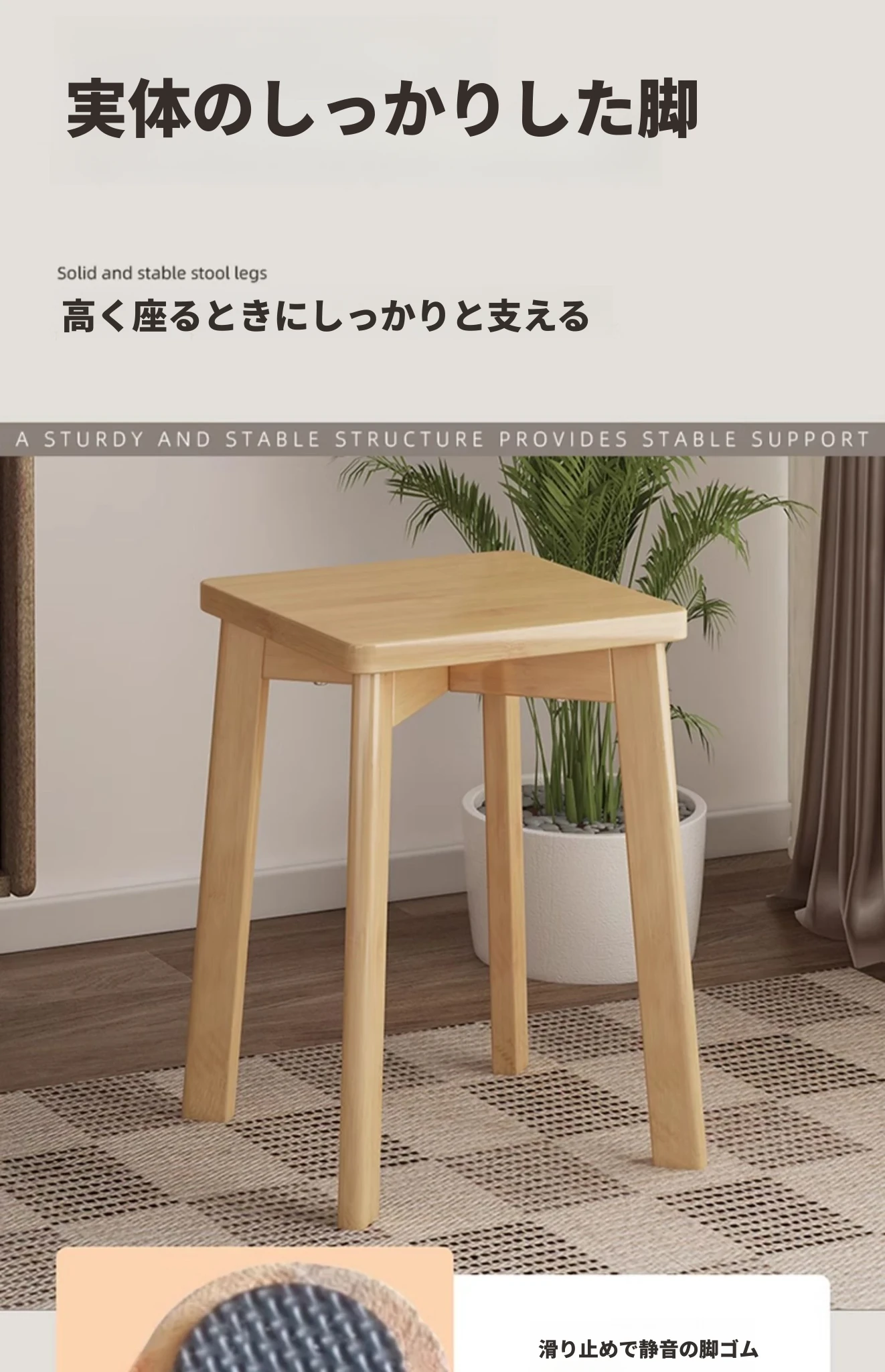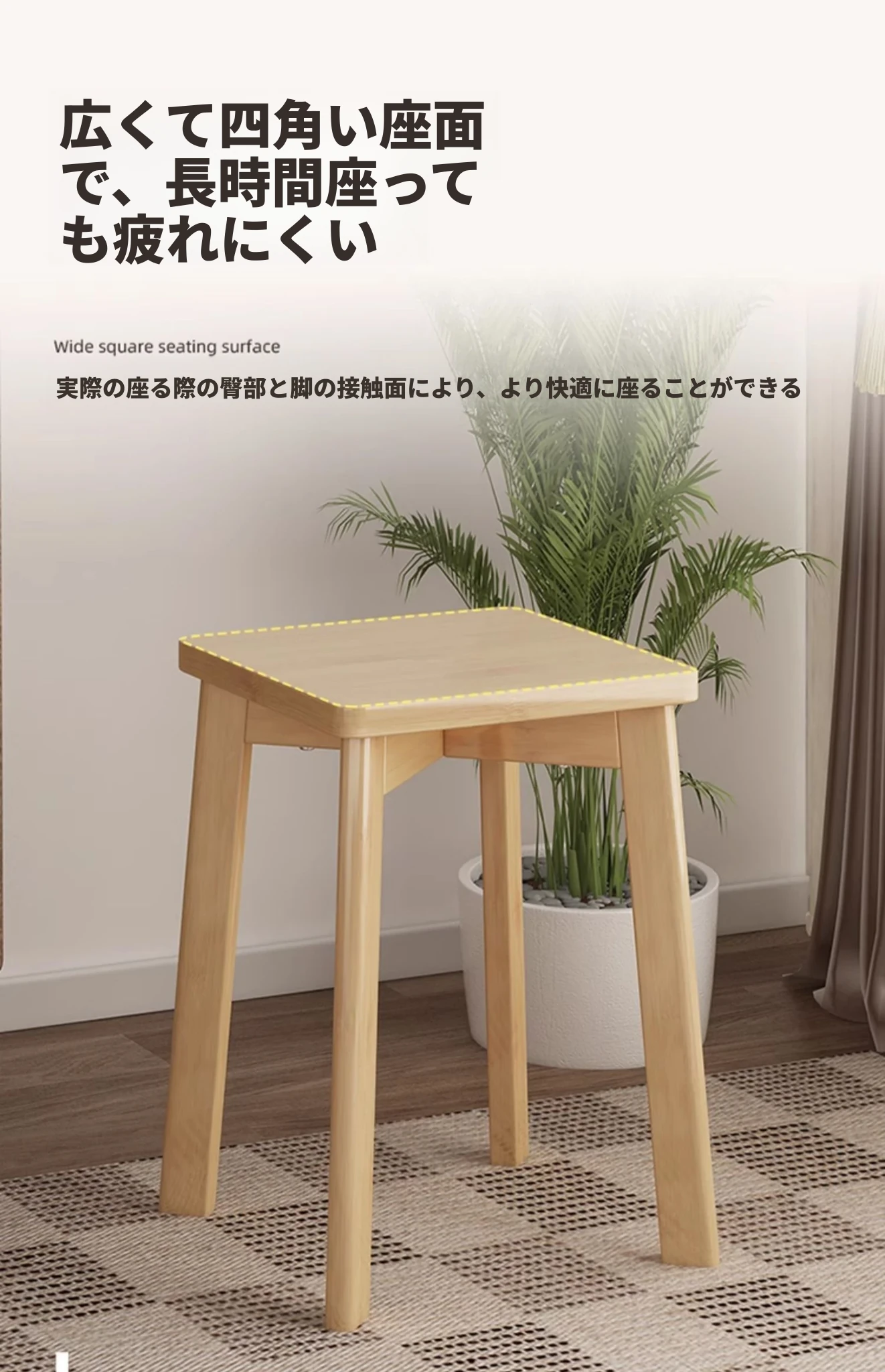 モダンでシンプルな家庭用小型スツール - おしゃれな円形スツール、重ねて収納可能!実木製の四角いスツールと低いスツール、ダイニングテーブルにぴったりのデザインです。