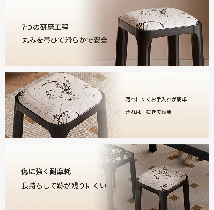 単脚-ナチュラルウッド脚-繁花【無垢材で製作 加幅したスツール面】