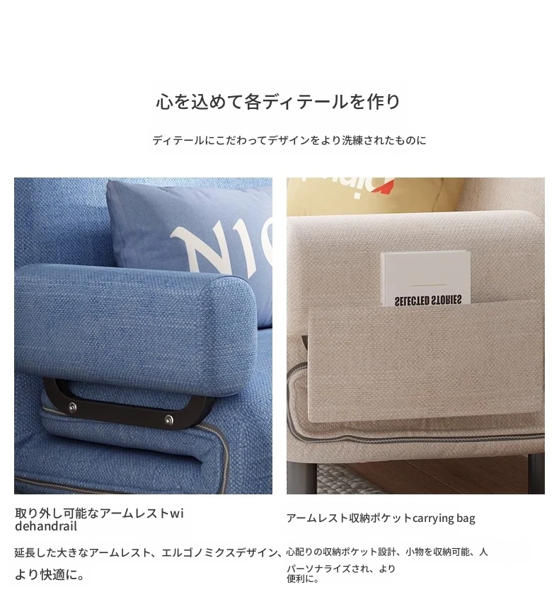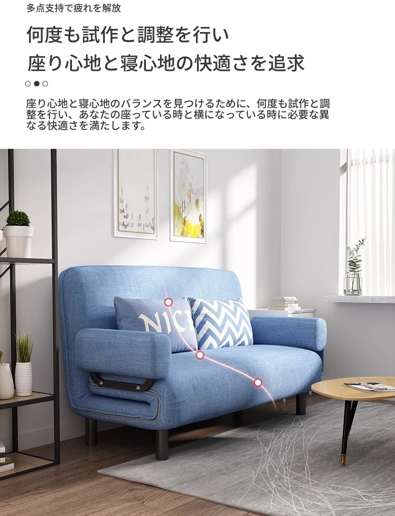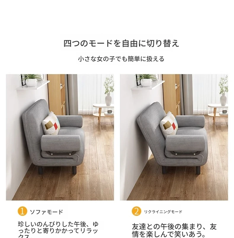現代的インフルエンサーオフィス向け!コンパクトで経済的なソファ、リラックスできる昼休み用。伸縮可能で小型リビングに最適な一人用・二人用ベッドとしても使える優れもの!