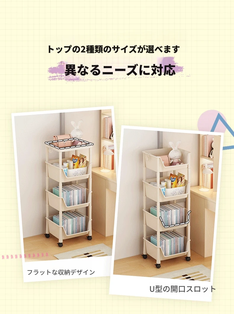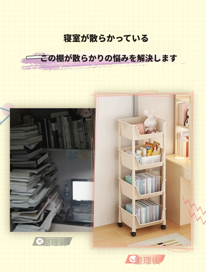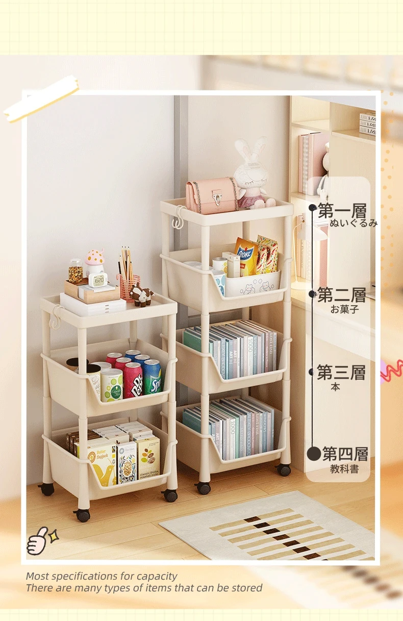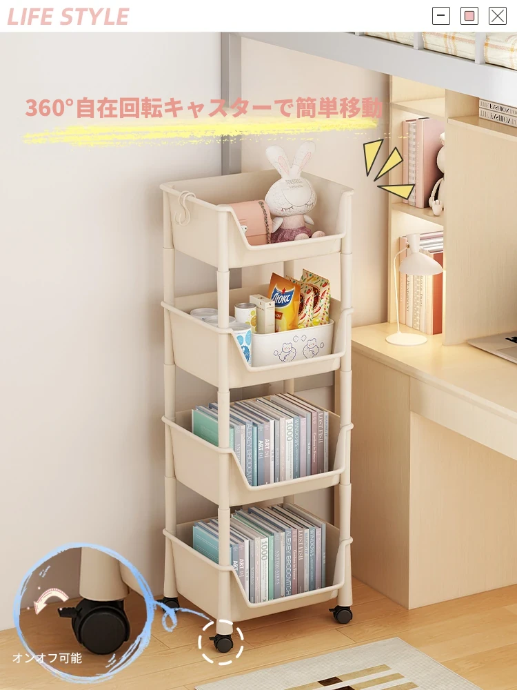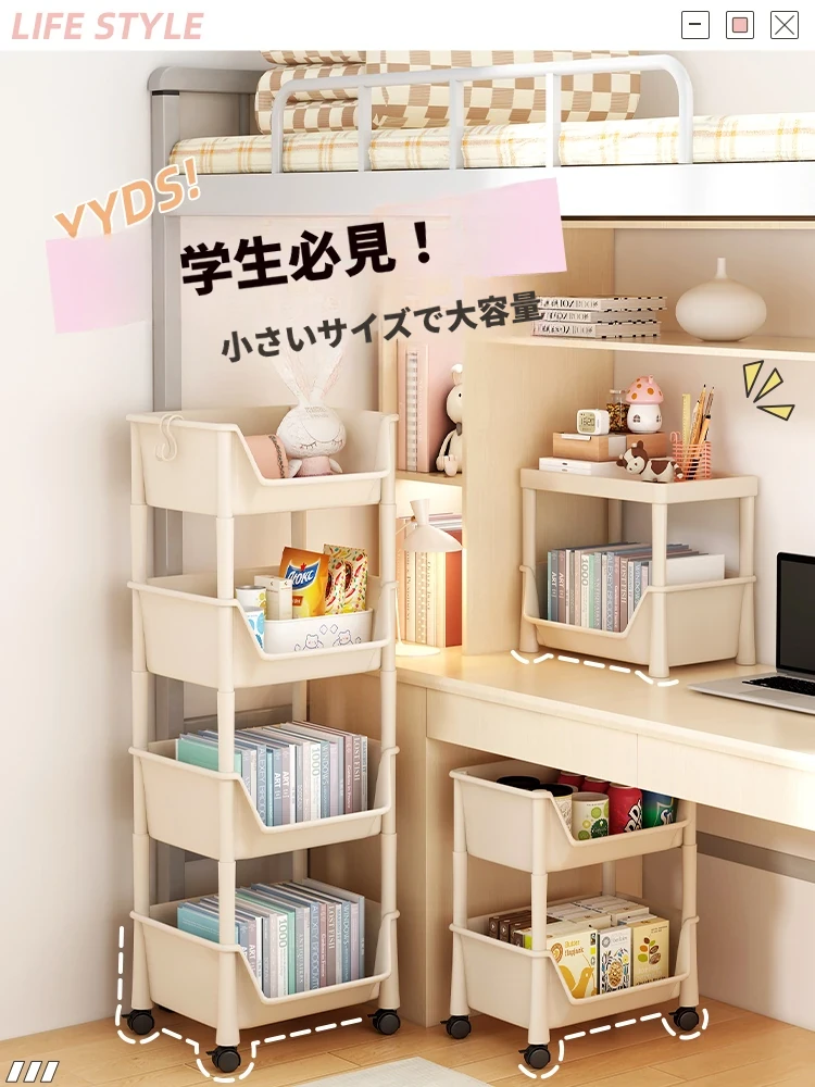 移動式ブックシェルフ・マルチレイヤー収納ラック!おもちゃやスナックもスッキリ整理できる、家や寮にぴったりの小型キャスター付きストレージラック!おしゃれで実用的な収納ソリューションを手に入れよう!