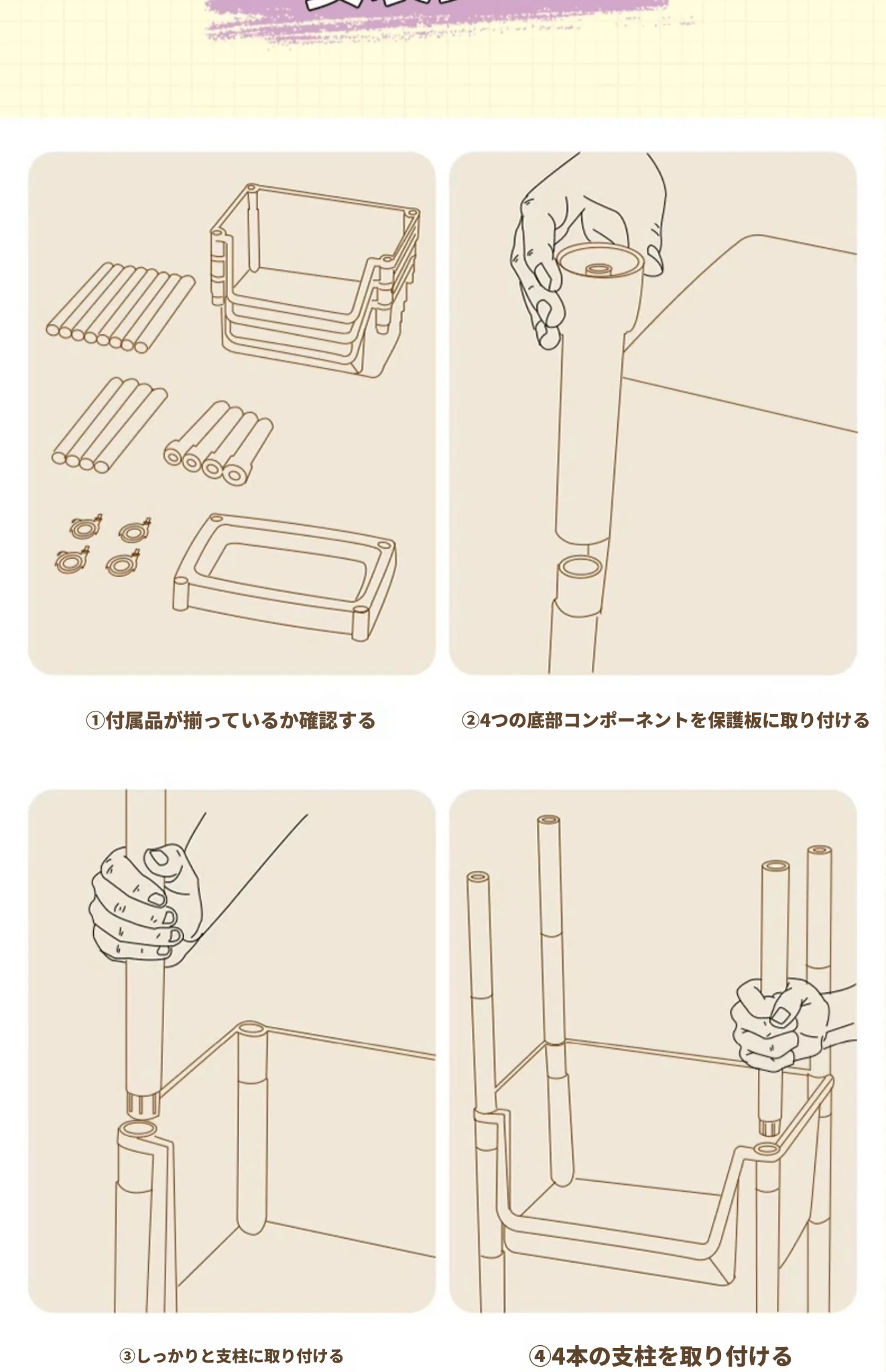 4層キャスター付き-ピンク-フラットタイプ【安定して頑丈】