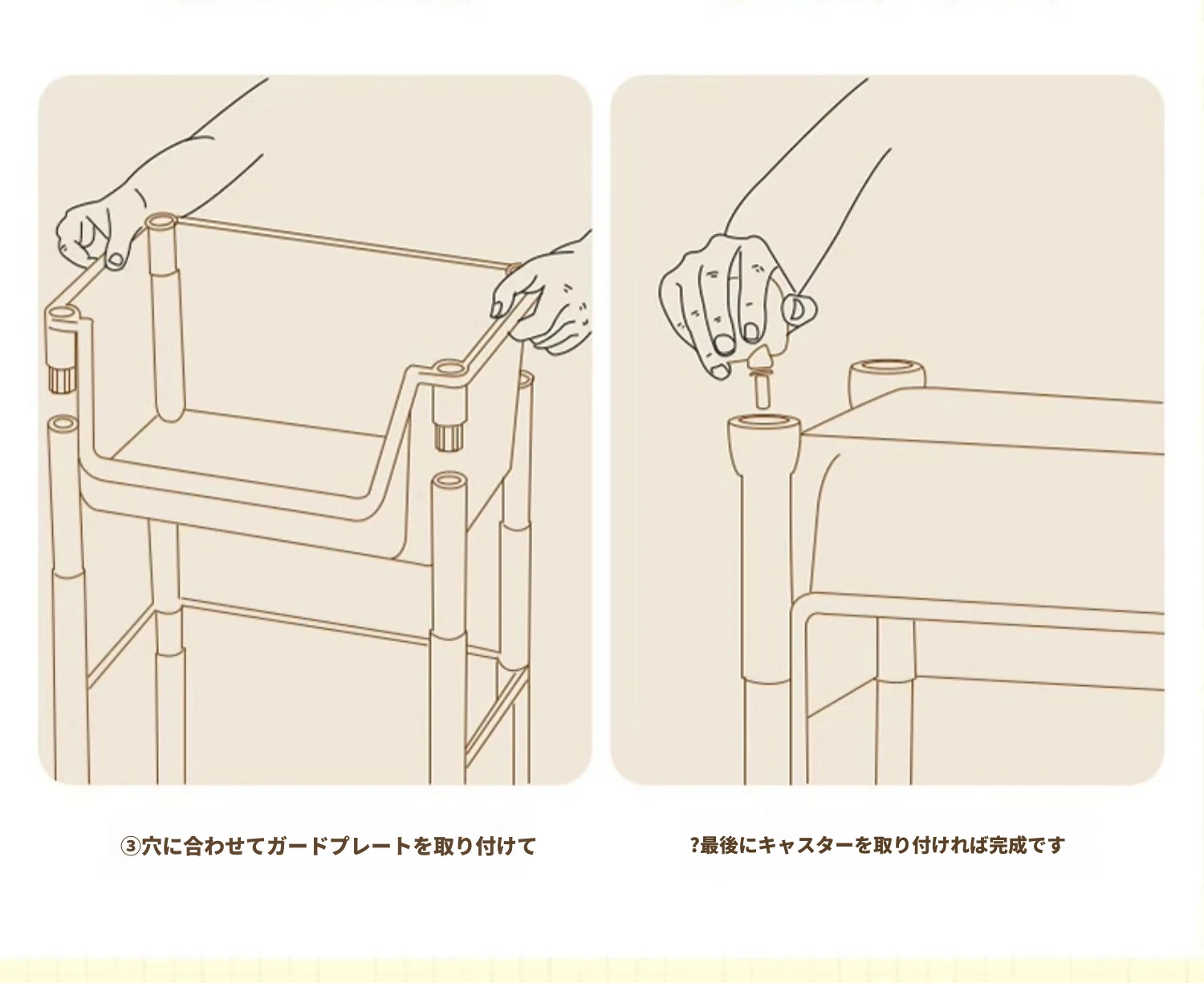2層キャスター付き-カーキ-オープンタイプ【安定して頑丈】