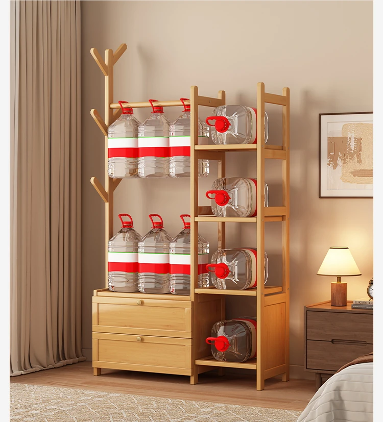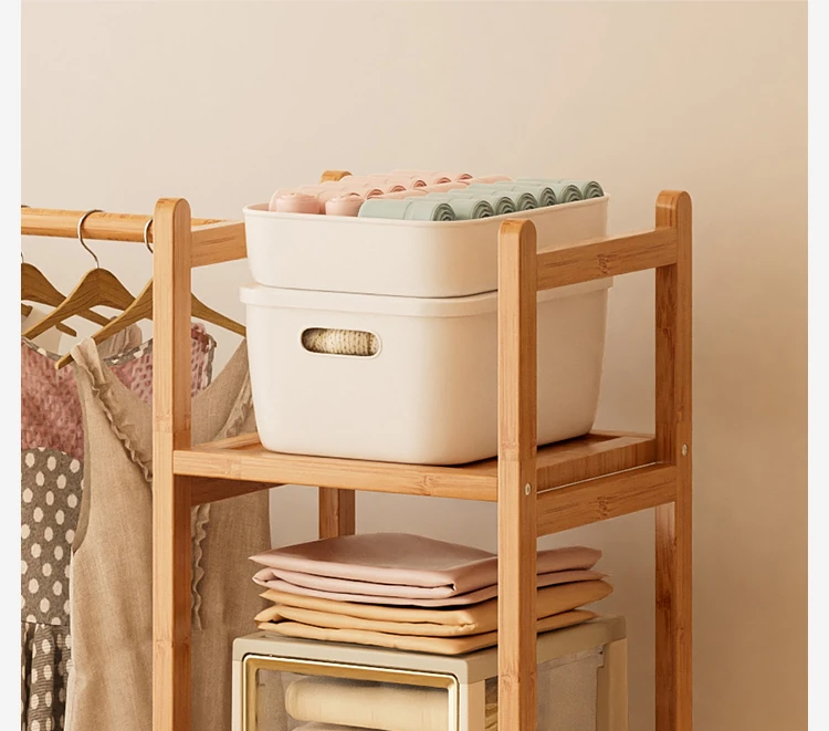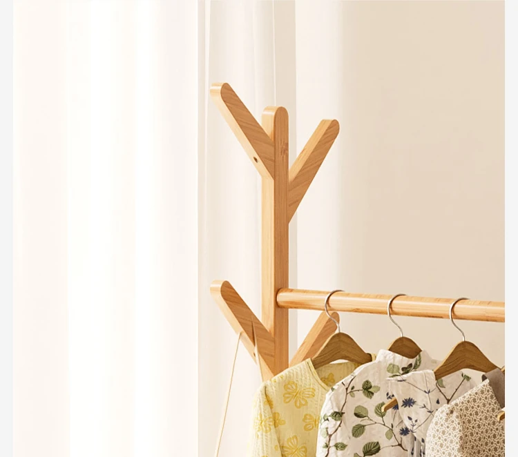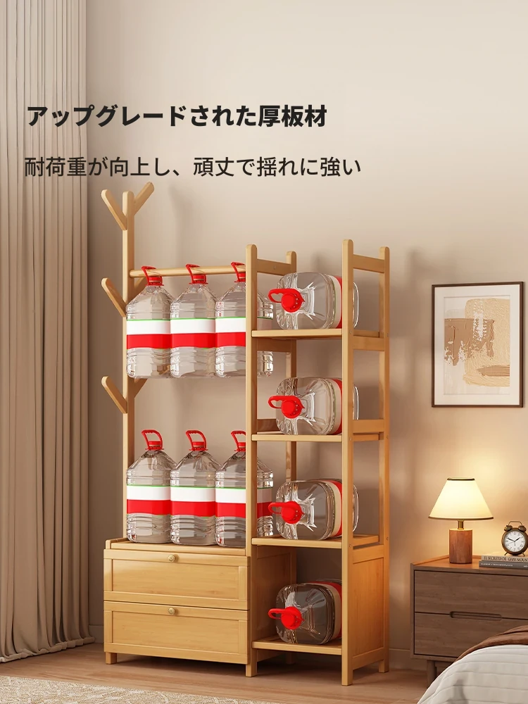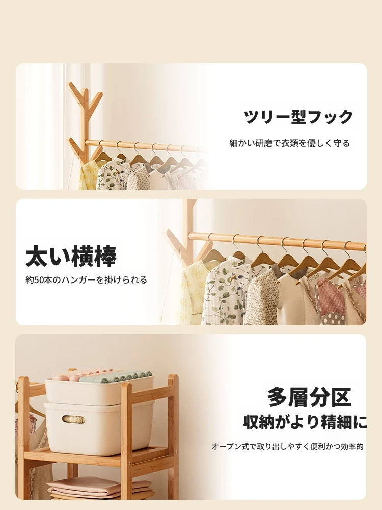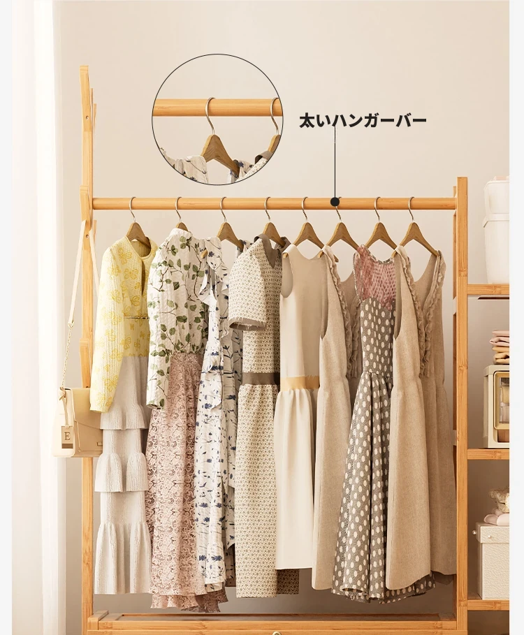 収納力抜群!寝室用フロアハンガー - 収納キャビネット付き、ベッドサイドでの衣類収納に最適!高品質な無垢材使用の多機能コートラックで、夜のお洋服もスッキリ整理!