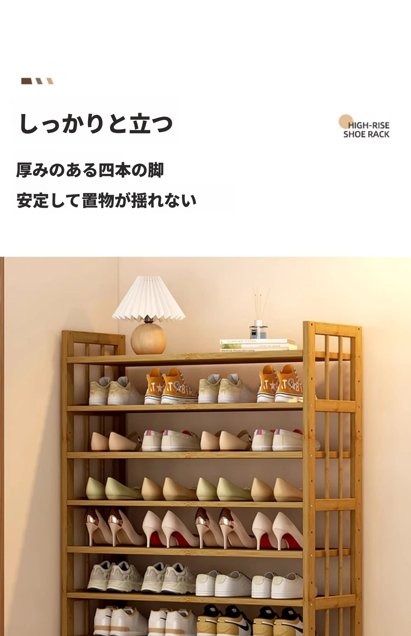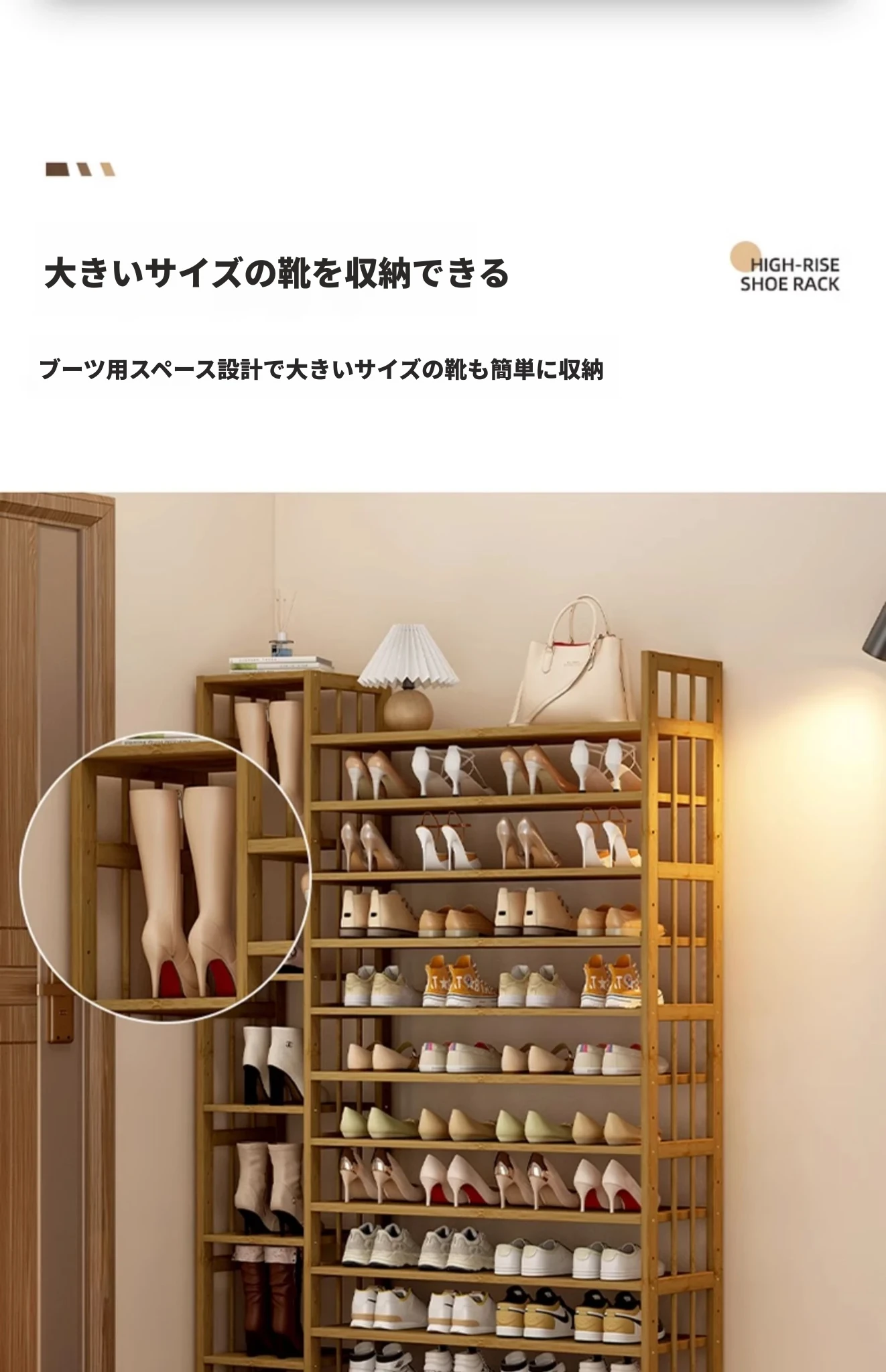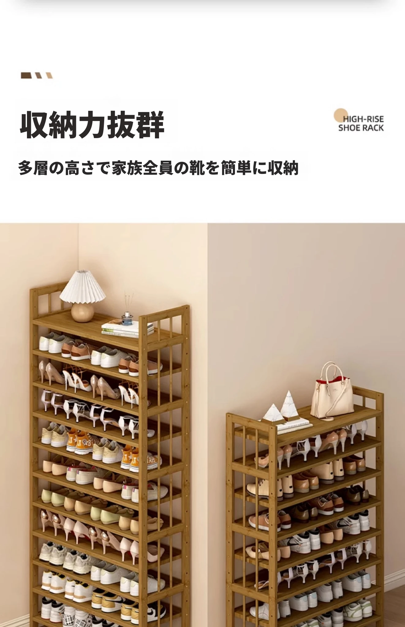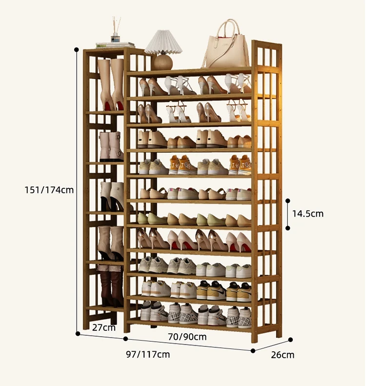新作!多層家用靴ラック - 省スペースでおしゃれな玄関収納、室内用バンブーシューズシェルフ。すっきり整理整頓、スタイリッシュな空間を実現!