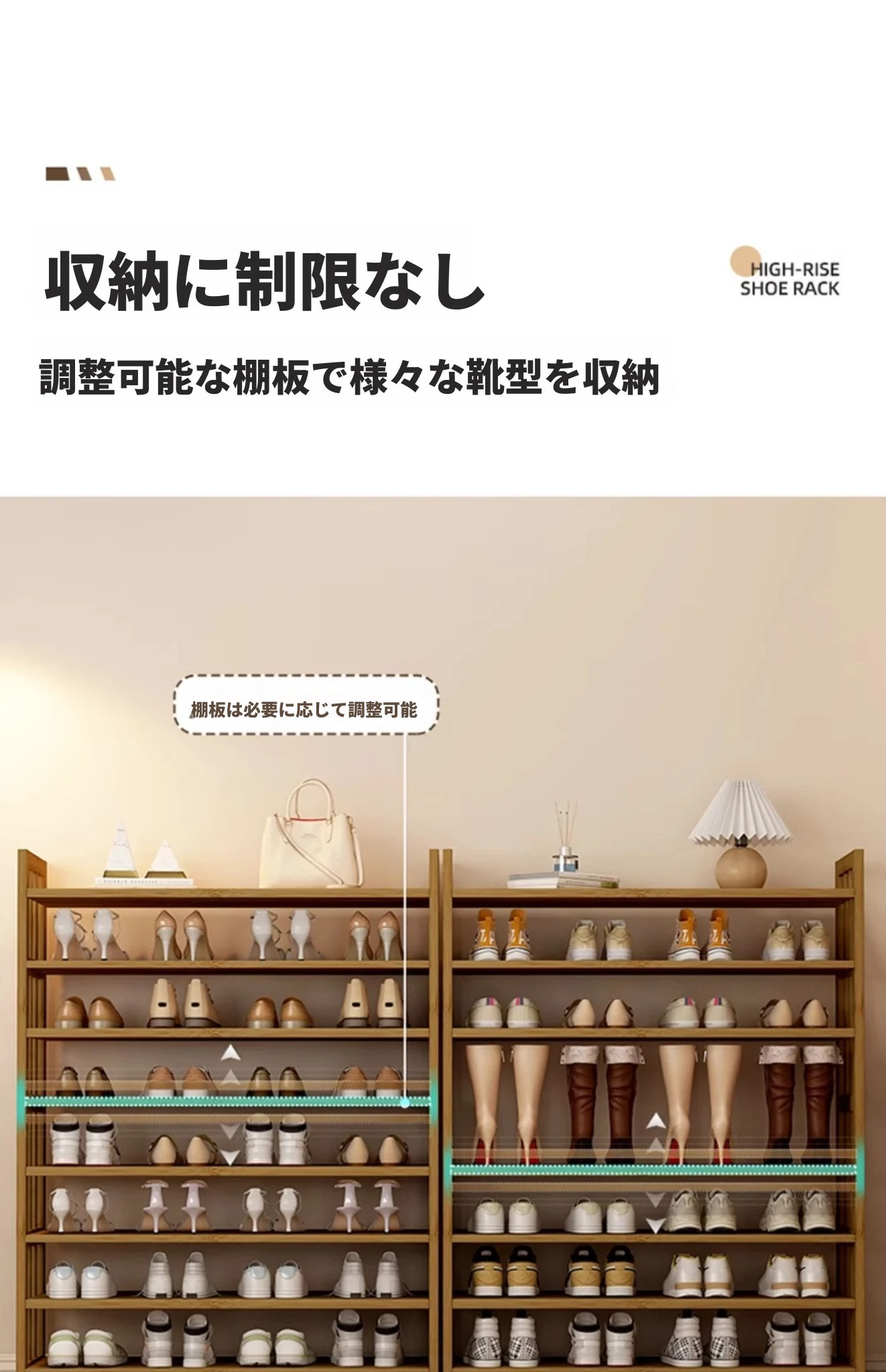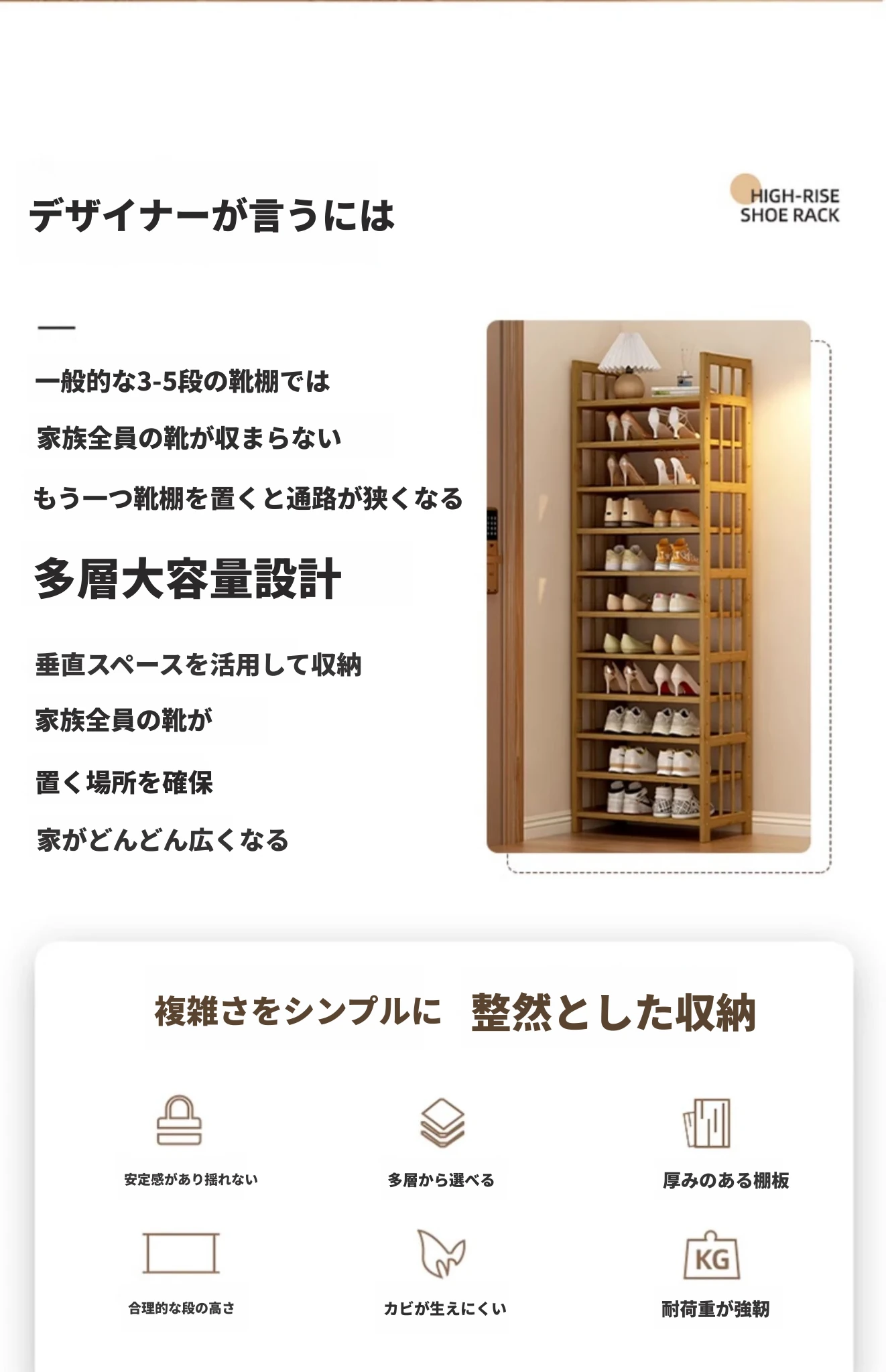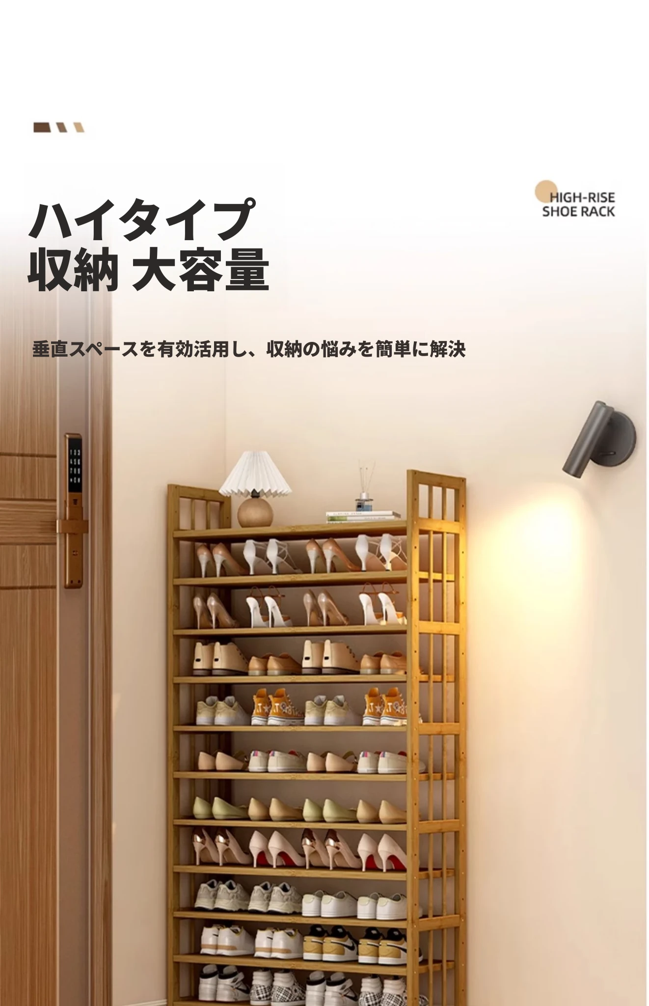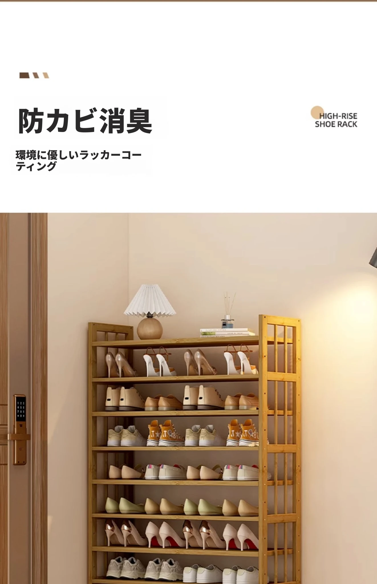 新作!多層家用靴ラック - 省スペースでおしゃれな玄関収納、室内用バンブーシューズシェルフ。すっきり整理整頓、スタイリッシュな空間を実現!