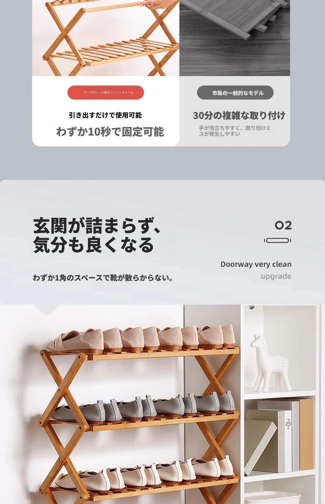 多層簡易シューズラック|経済的で便利な大学生向け!玄関にぴったりの折りたたみ式小型靴収納|面倒な取り付け不要で、すっきりとした空間を実現!