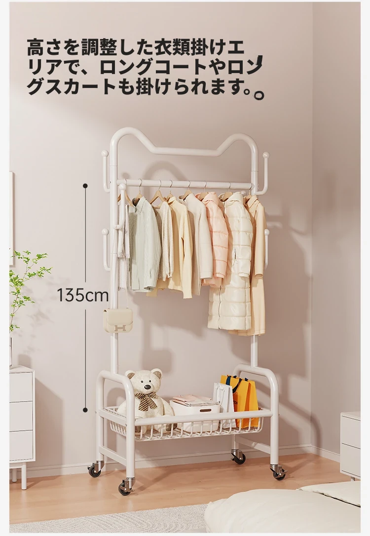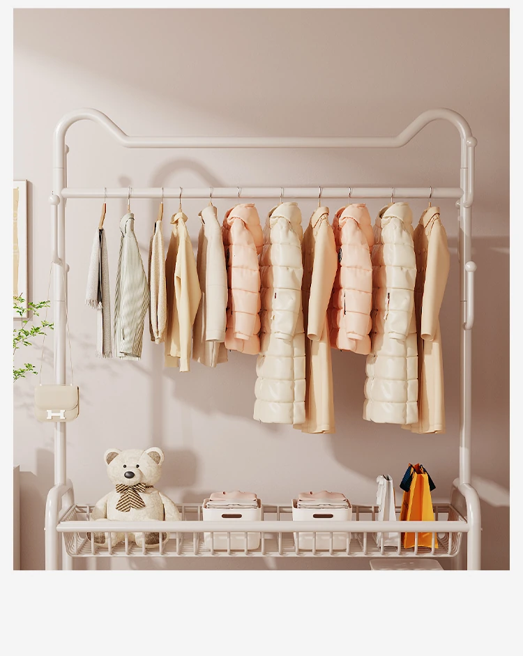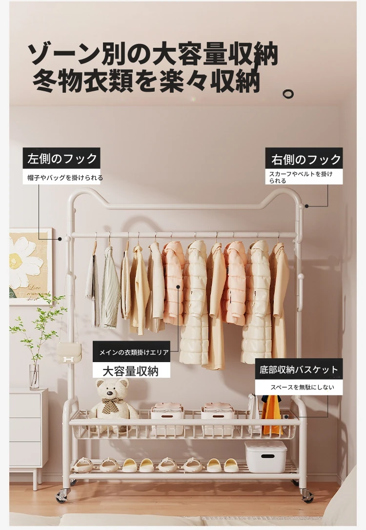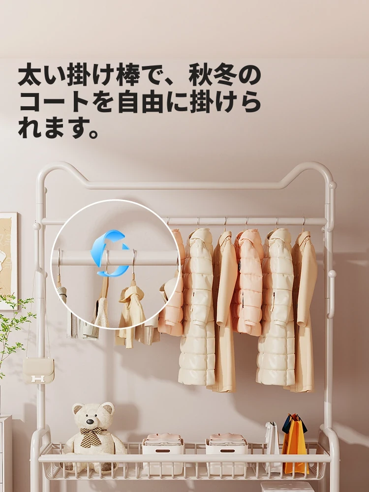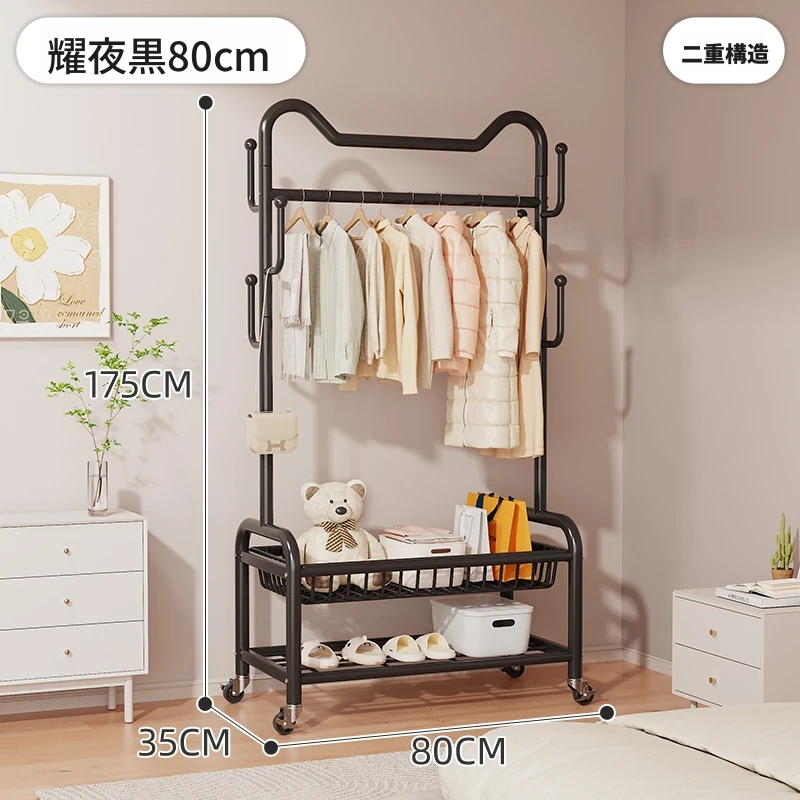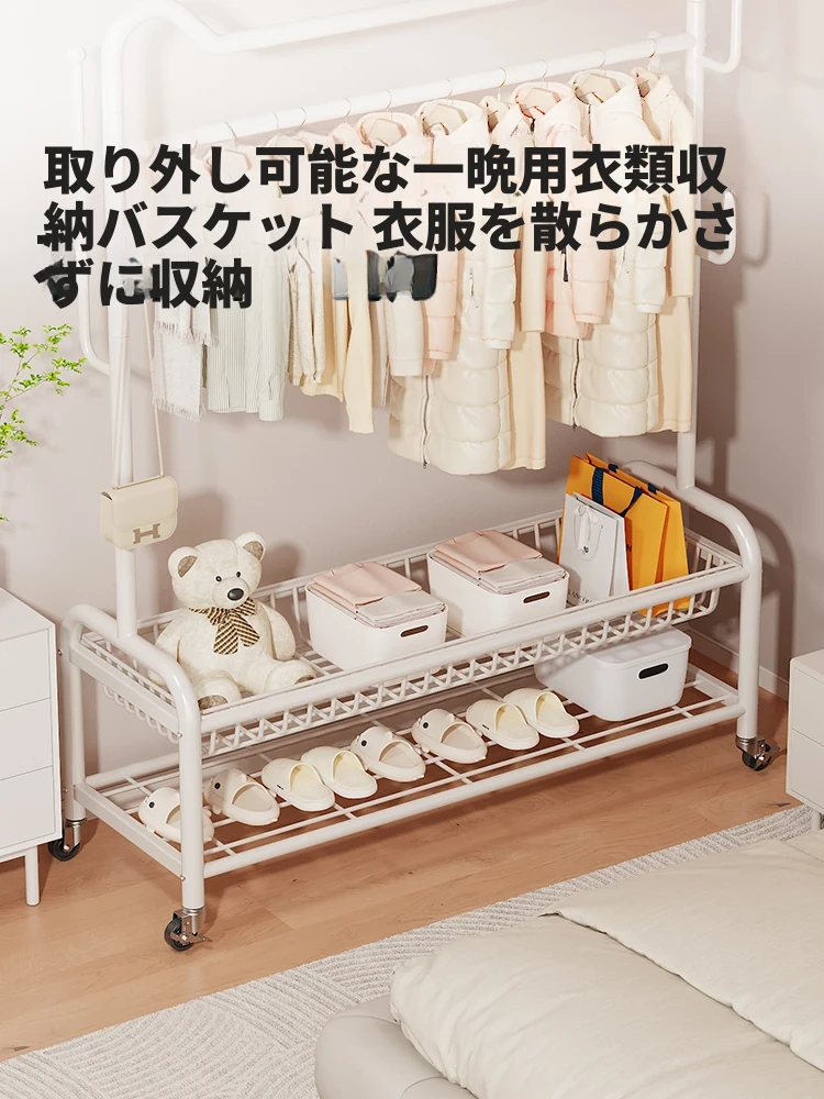 寝室や小さいスペースに最適!多層収納のスタイリッシュな衣類ラック。ベッドサイドでの衣服置きに便利な、ファッション性と機能性を兼ね備えた衣帽掛け!