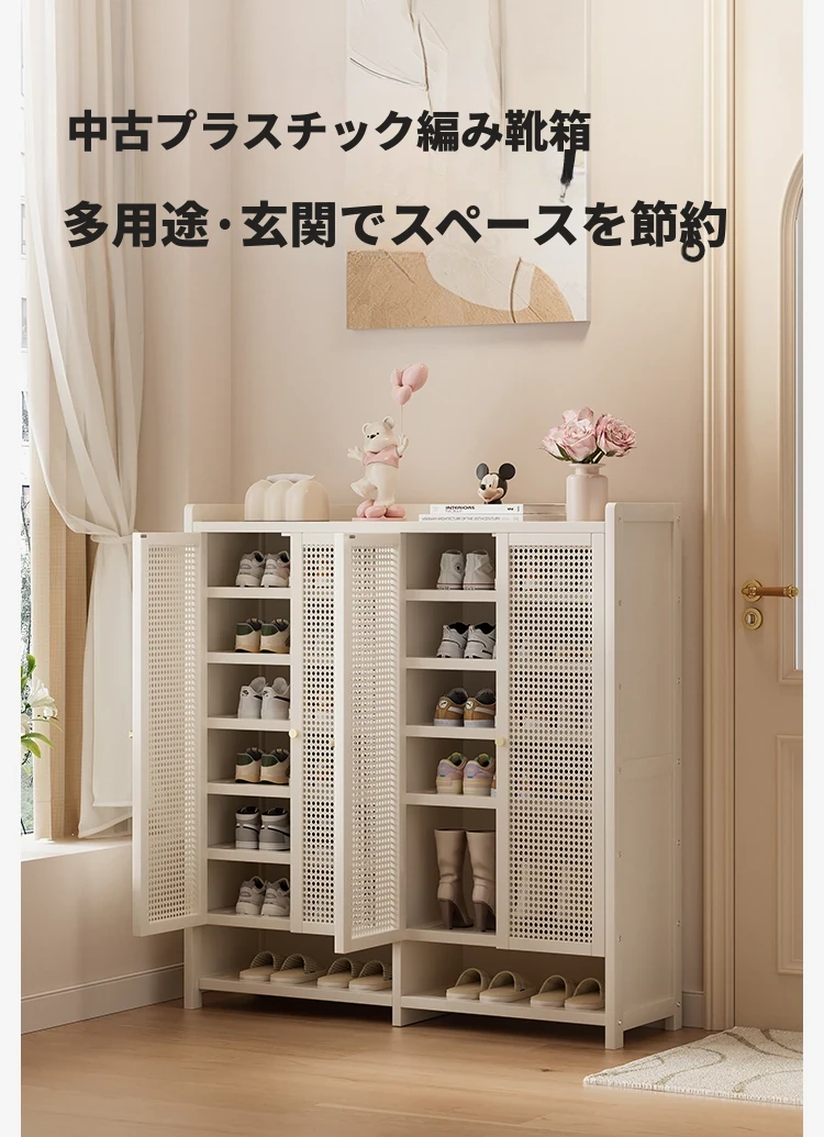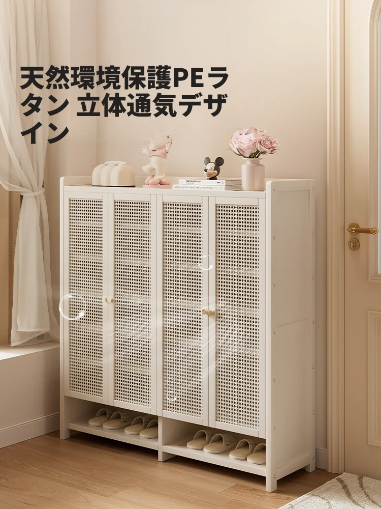 玄関用シューズキャビネット - 多層大容量、ホコリ防止扉付き、シンプルなデザインで室内をスッキリ整理!家族全員の靴を収納できる超大容量の便利な収納家具。