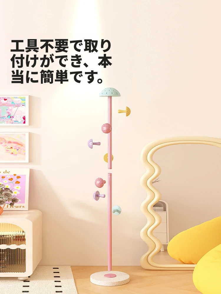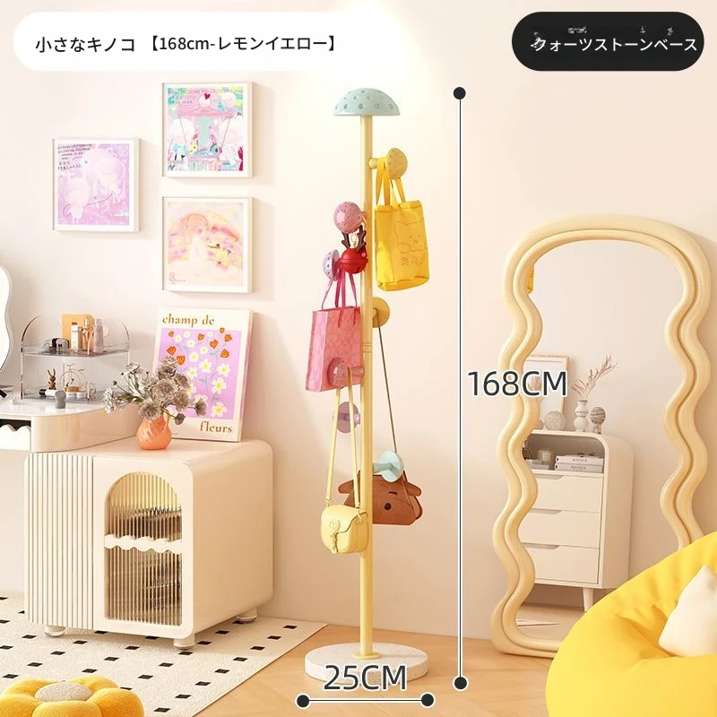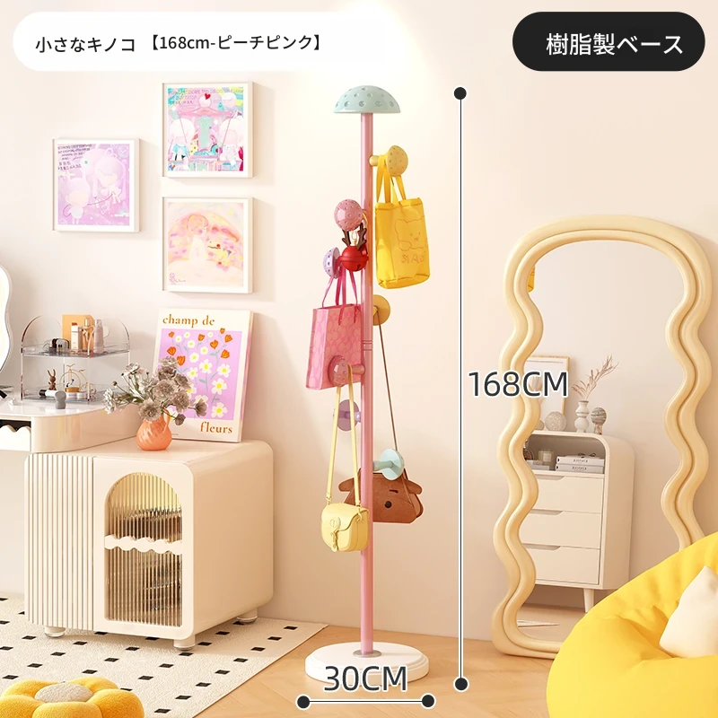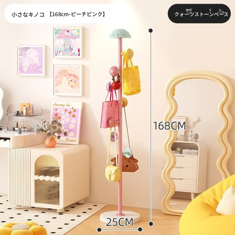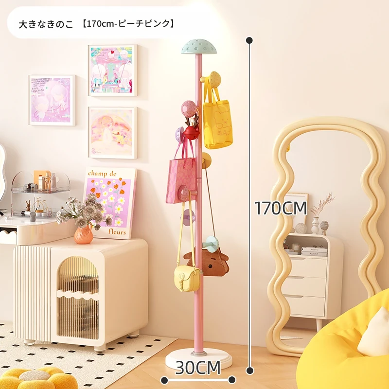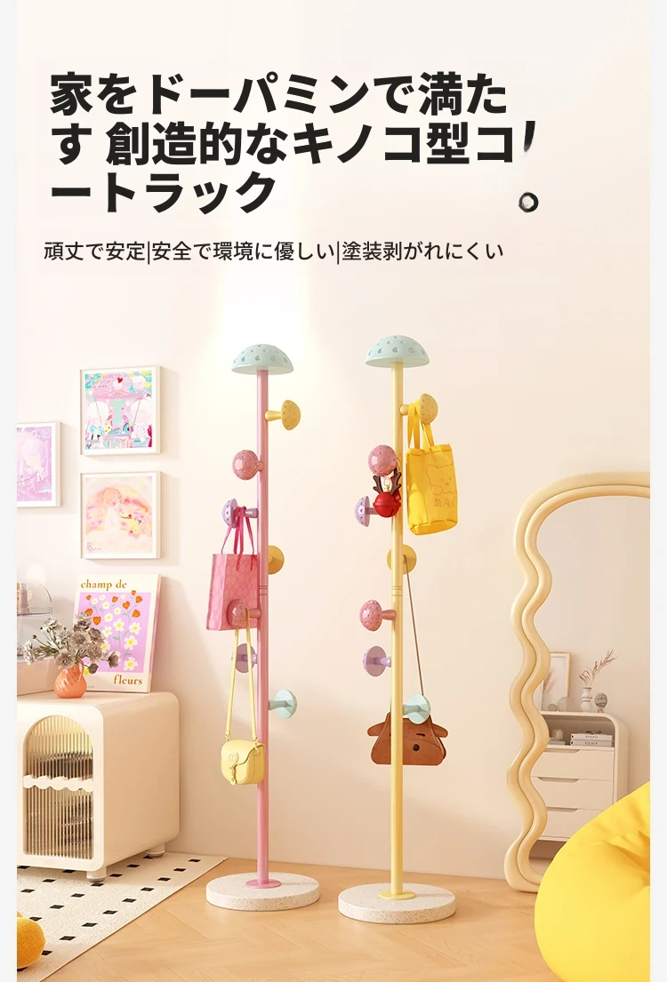 ド派手なマッシュルームデザインのスタンド式コートハンガー!省スペースでおしゃれな収納を実現。人気のアイテムで、あなたの寝室をスタイリッシュに演出。バッグ掛けにも最適な多機能ハンガーです!
