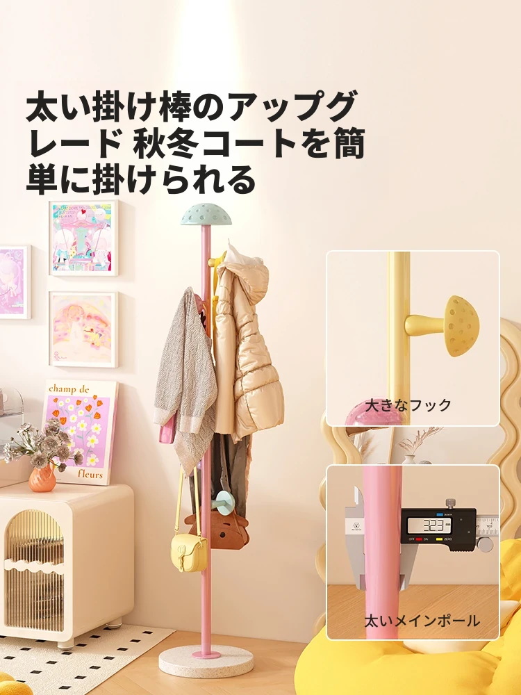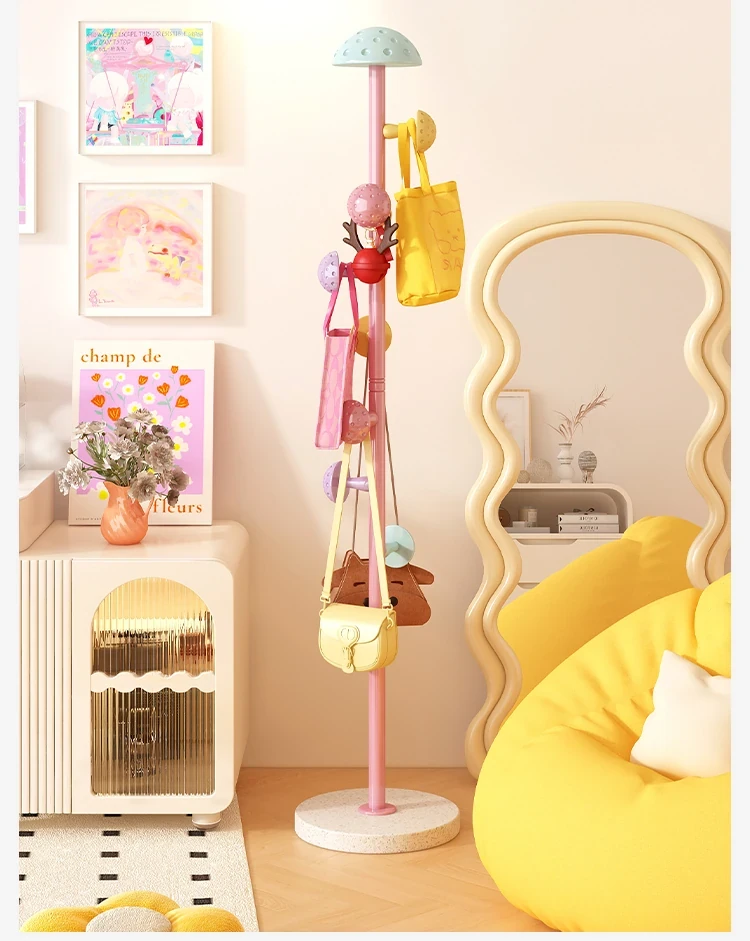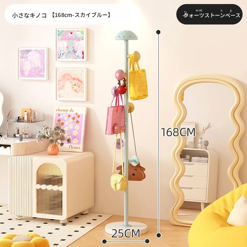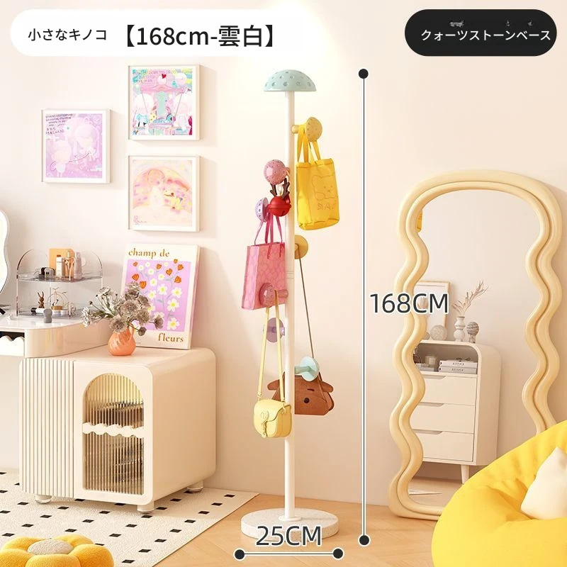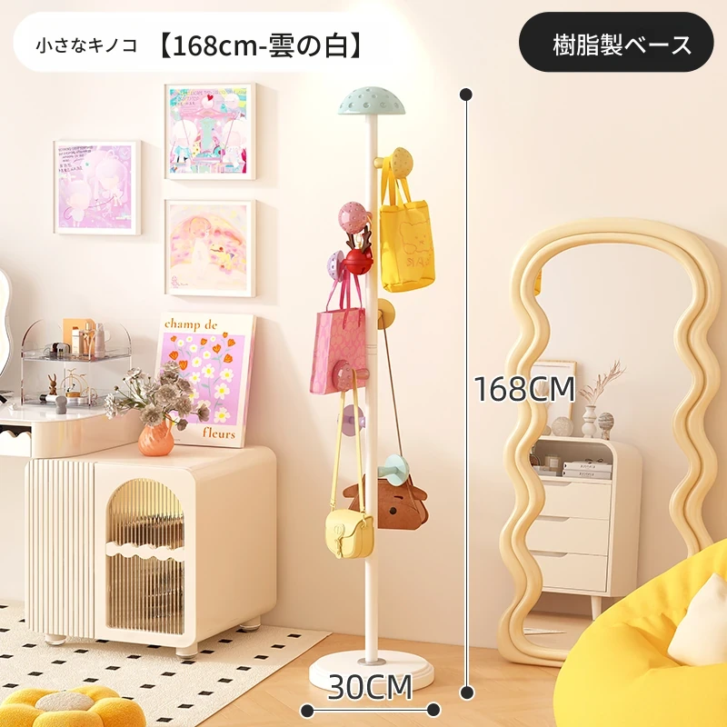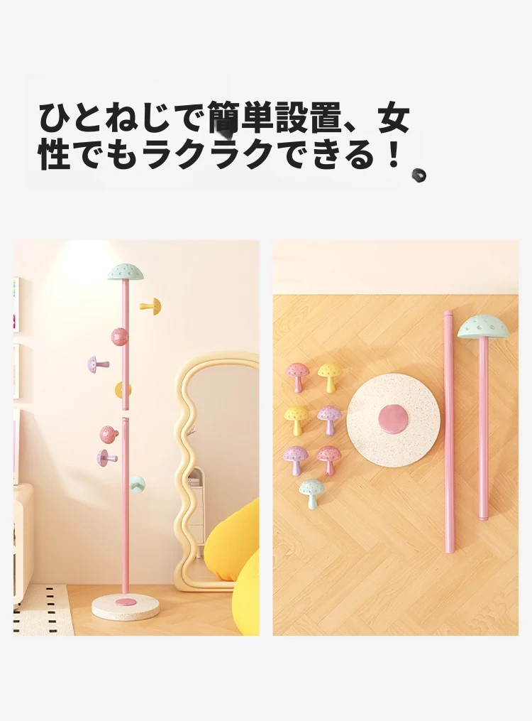 ド派手なマッシュルームデザインのスタンド式コートハンガー!省スペースでおしゃれな収納を実現。人気のアイテムで、あなたの寝室をスタイリッシュに演出。バッグ掛けにも最適な多機能ハンガーです!