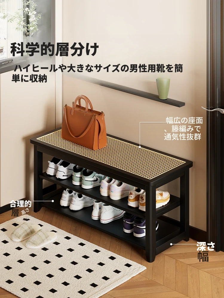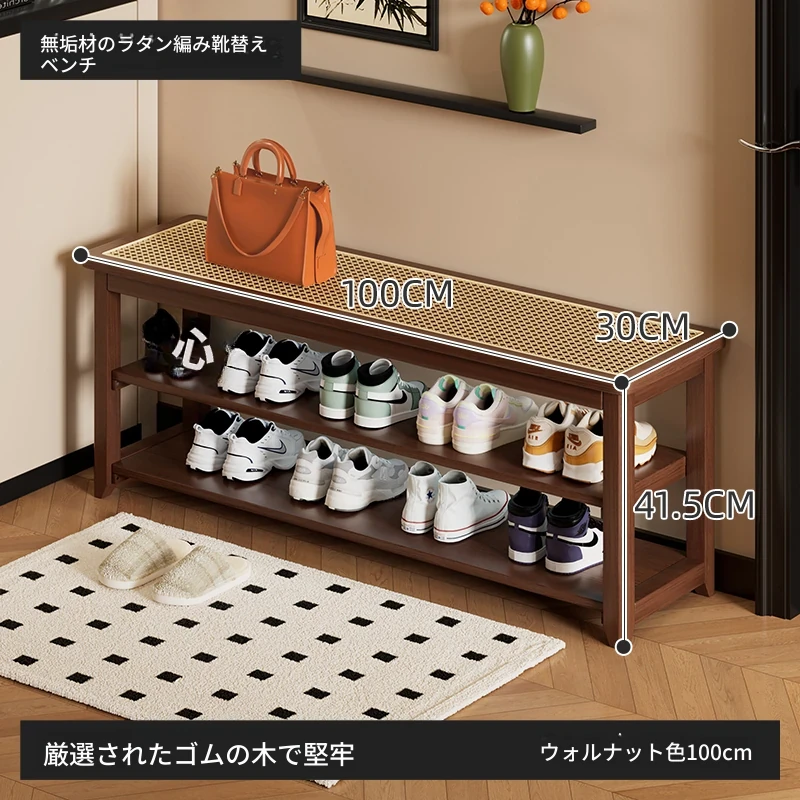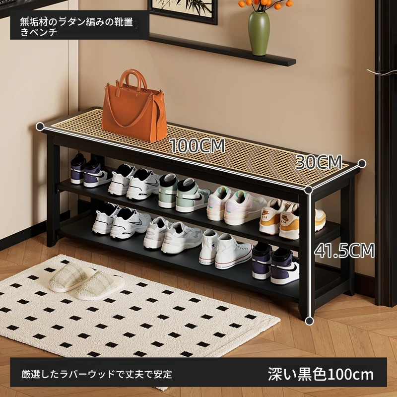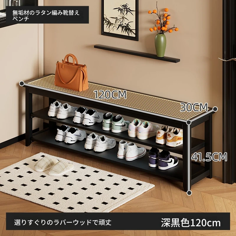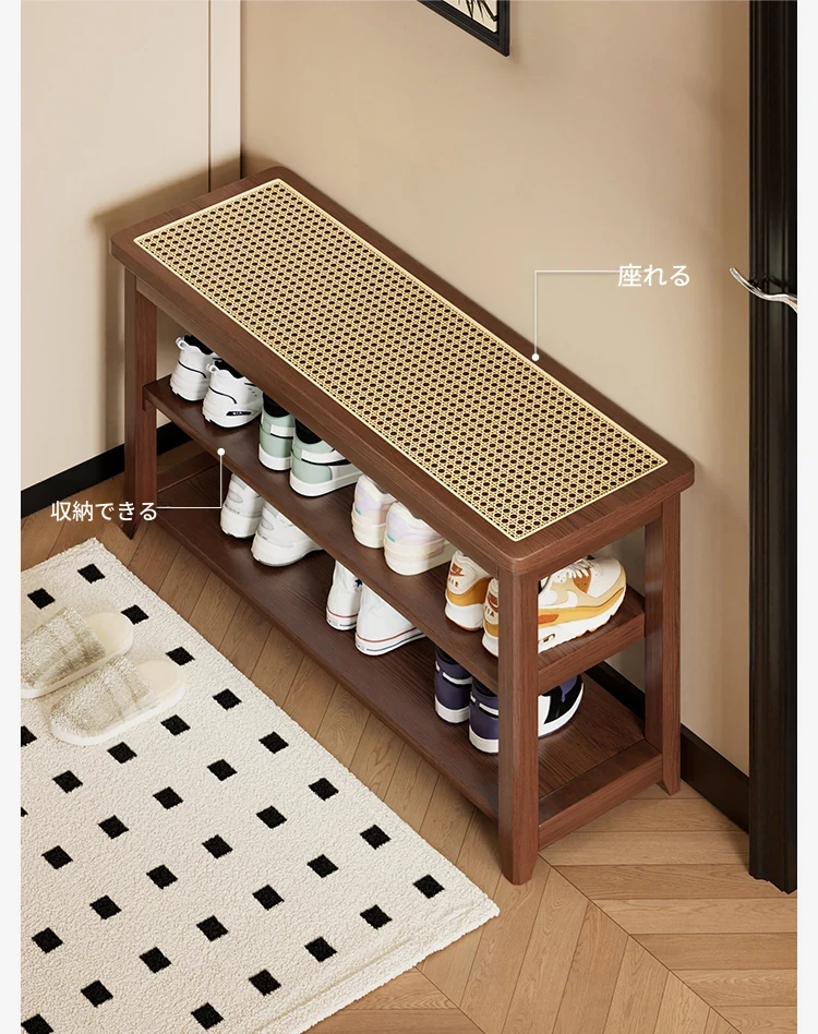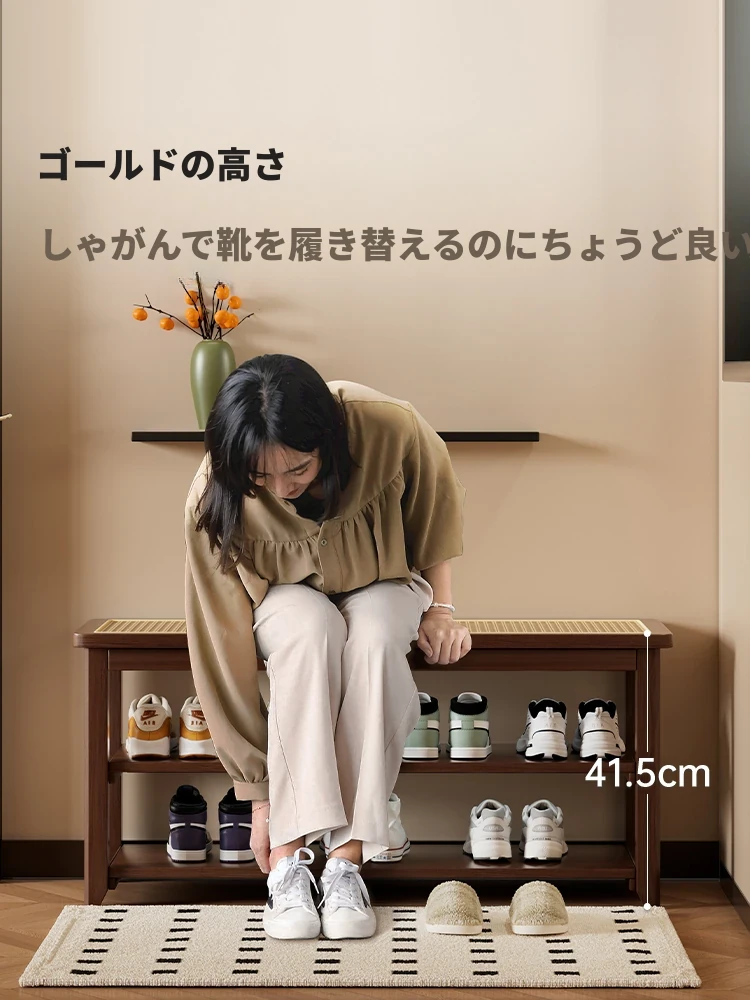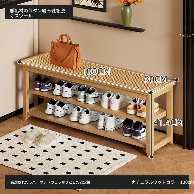 小型スリムシューズベンチ|玄関や狭いスペースに最適な実木製|靴を履く時に便利なシンプルデザイン|収納もできるシューズラックとしても使用可能!