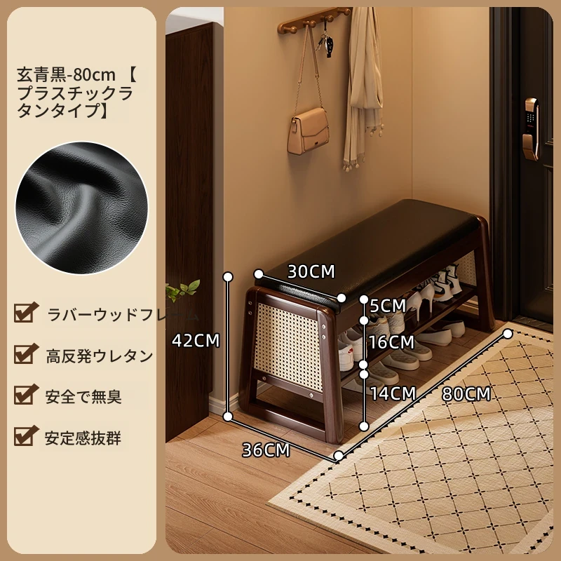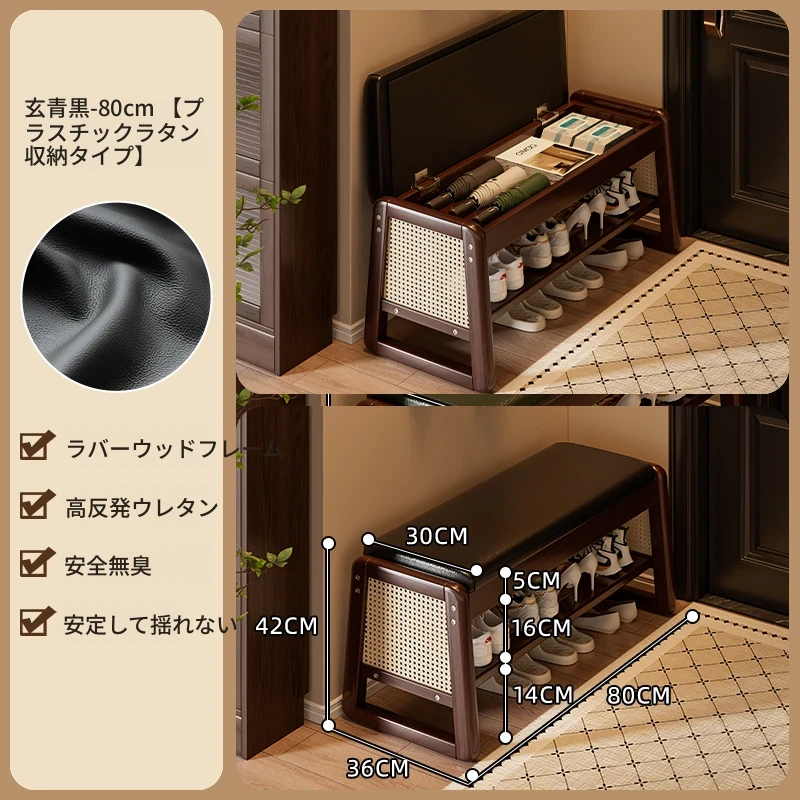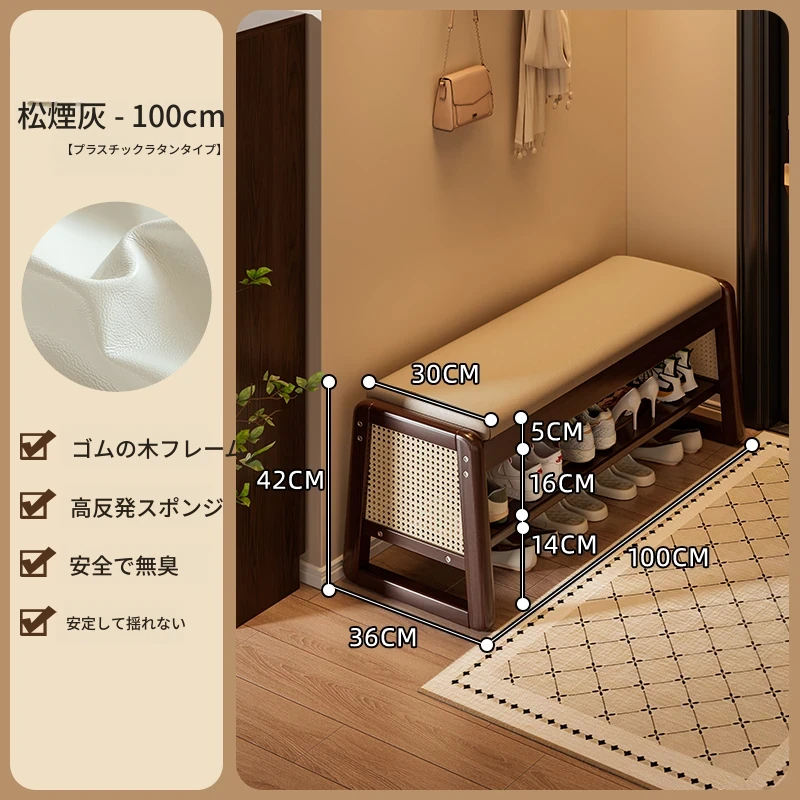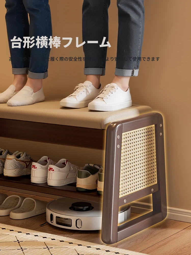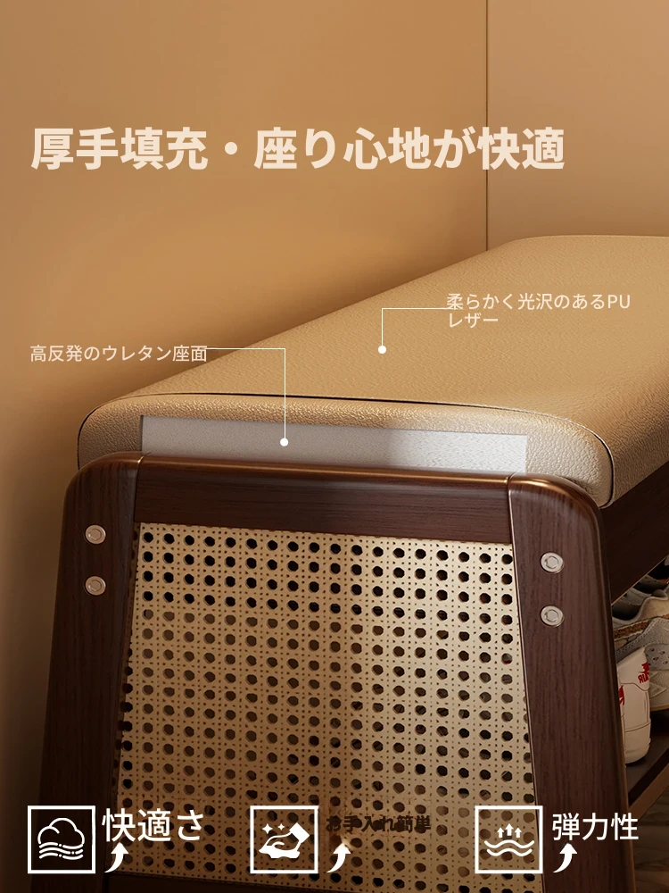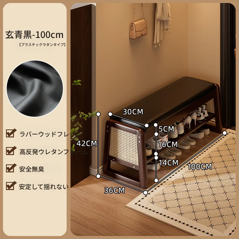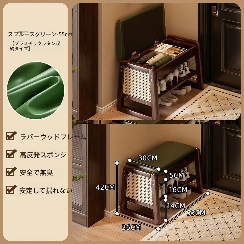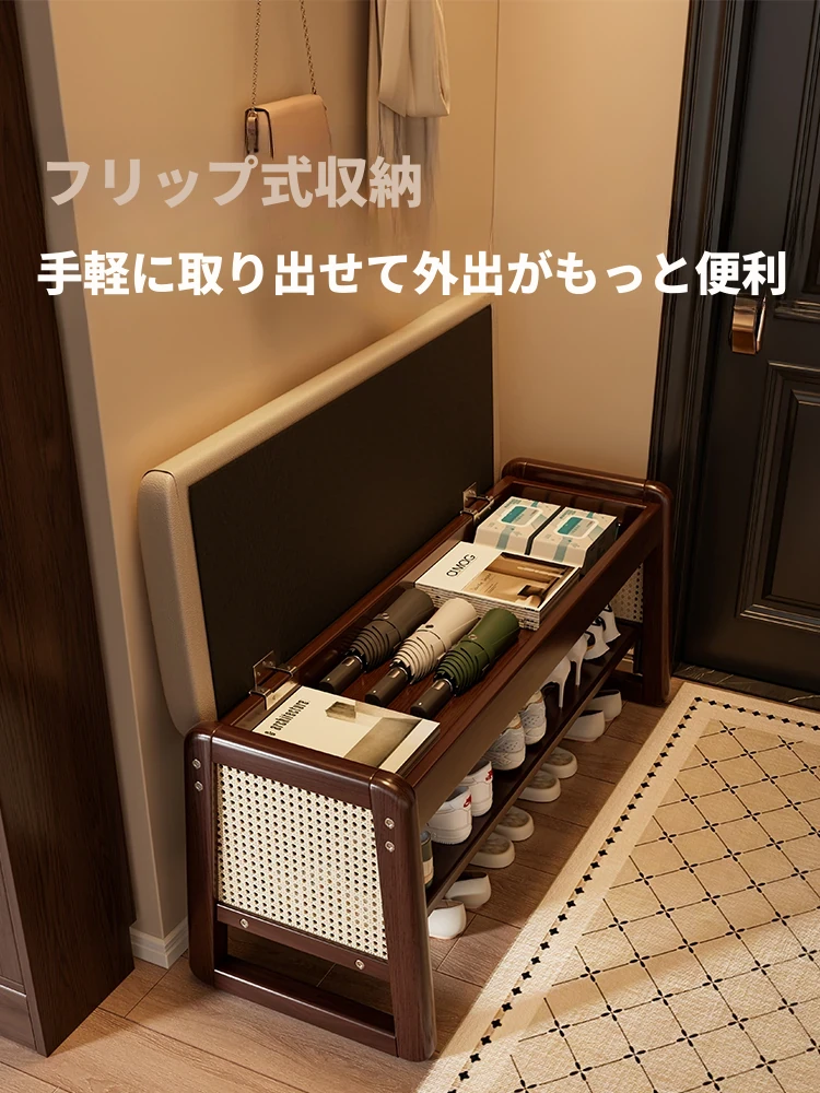 【おしゃれな玄関に最適】天然木製シューズベンチ収納付き|省スペースデザイン|座れる&靴を収納できる一体型シューズキャビネット|スリムな玄関用スツール