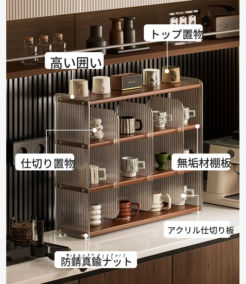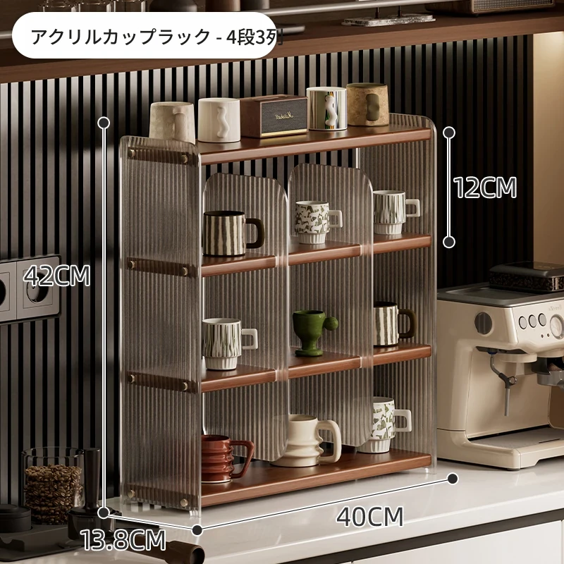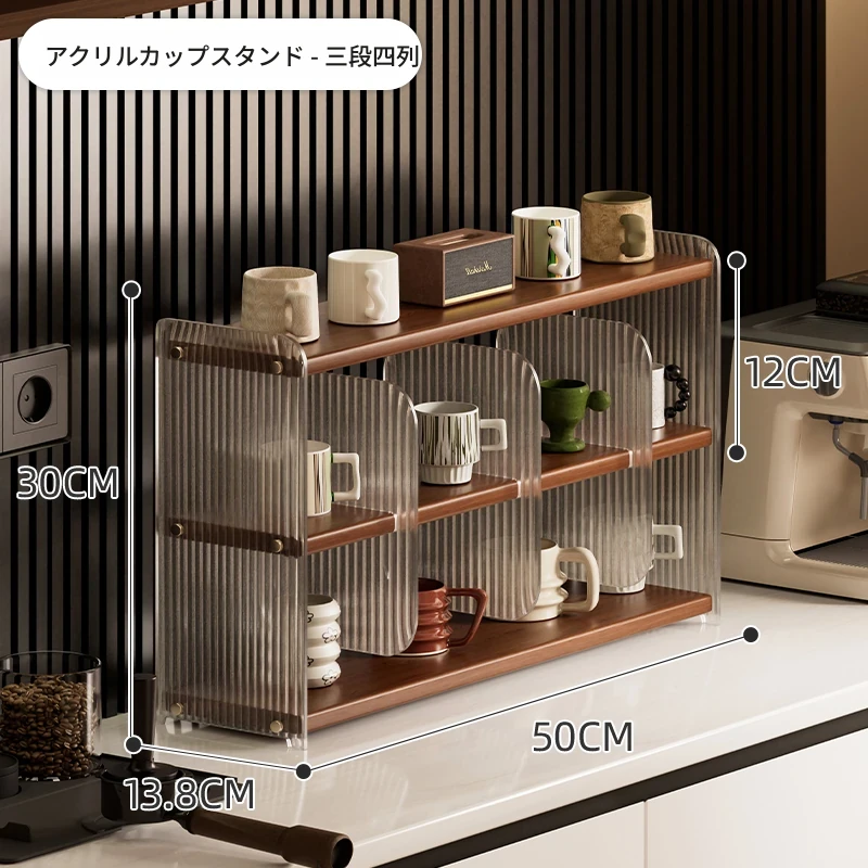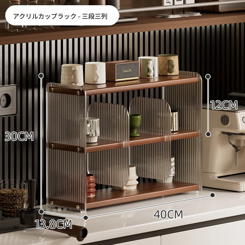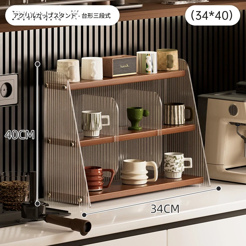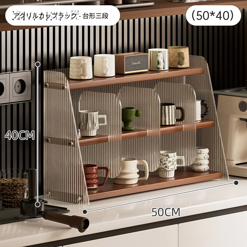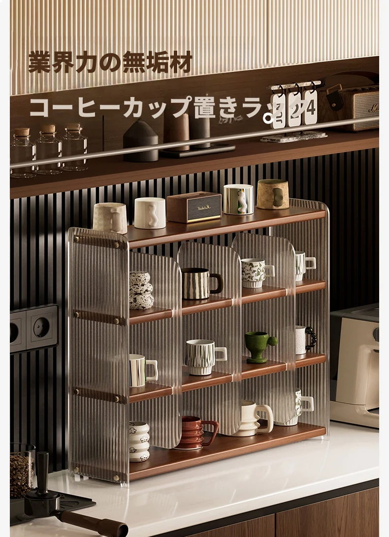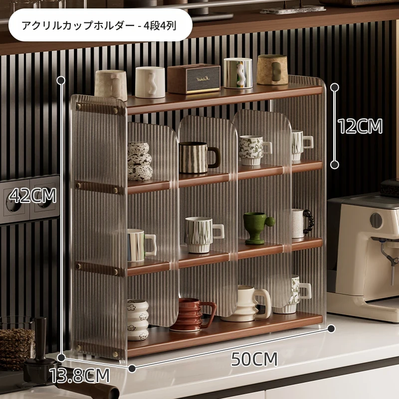 壁に寄り添うスリムなデスクオーガナイザー!アクリルとウッドのコンビネーションでスタイリッシュに収納。実用的な棚板でデスクスペースを拡張し、コーヒーカップや小物を美しくディスプレイ。
