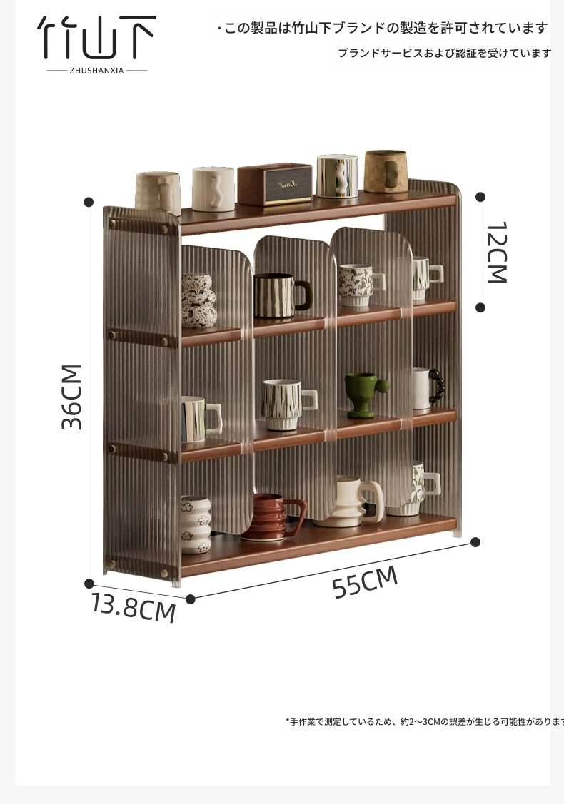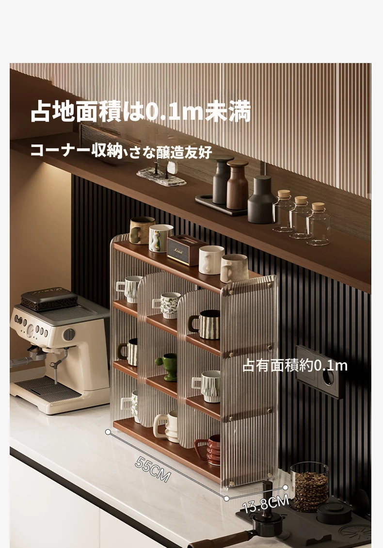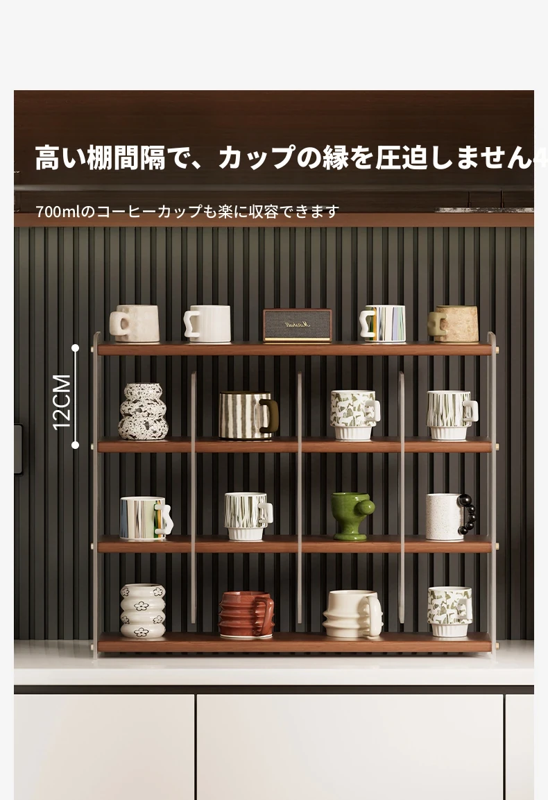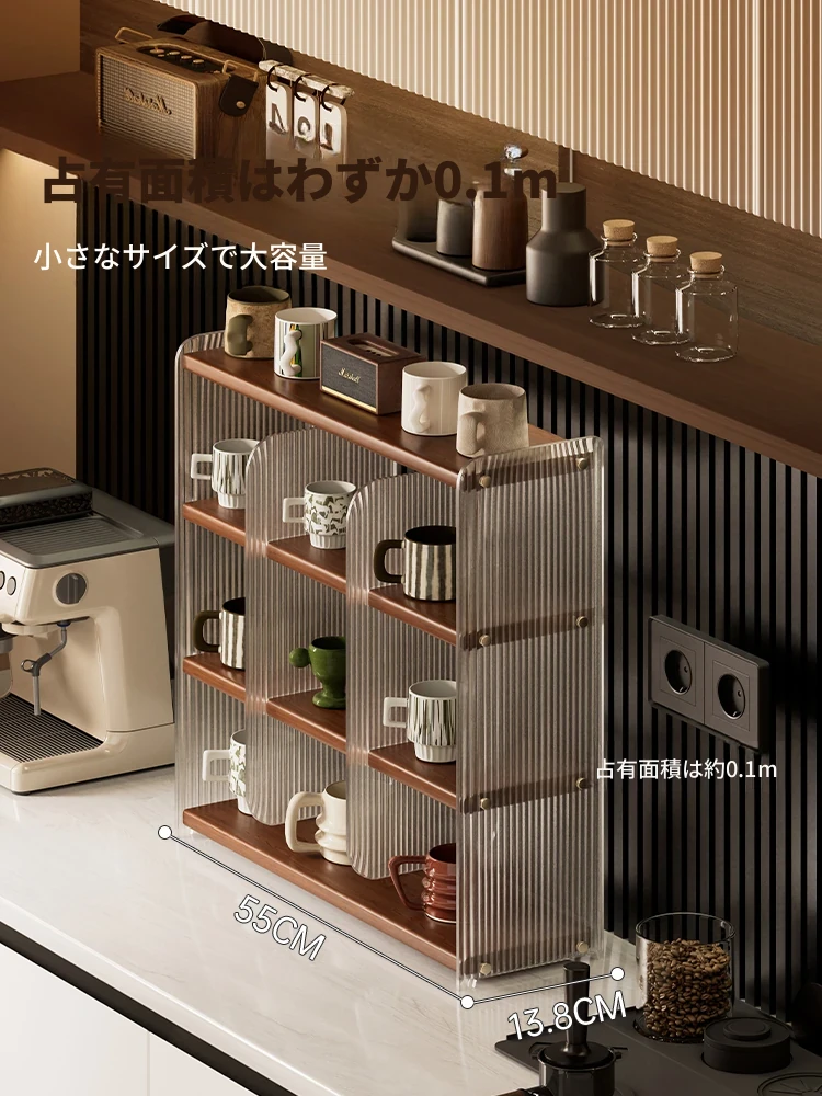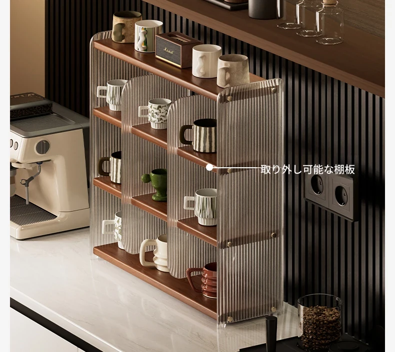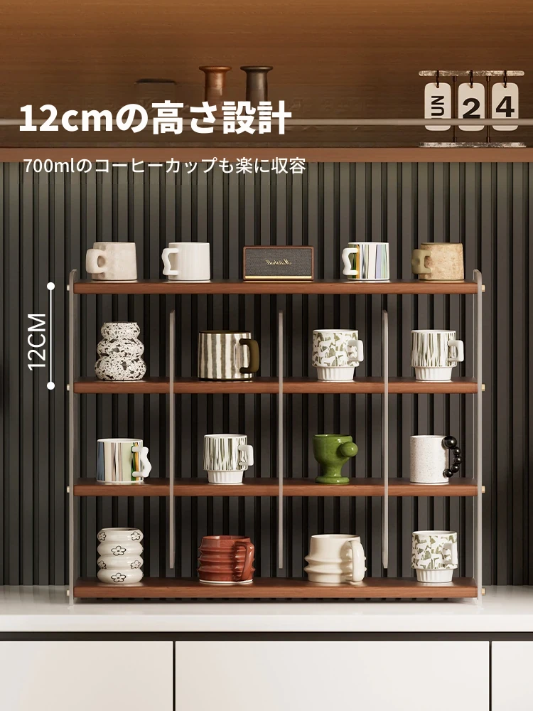 壁に寄り添うスリムなデスクオーガナイザー!アクリルとウッドのコンビネーションでスタイリッシュに収納。実用的な棚板でデスクスペースを拡張し、コーヒーカップや小物を美しくディスプレイ。