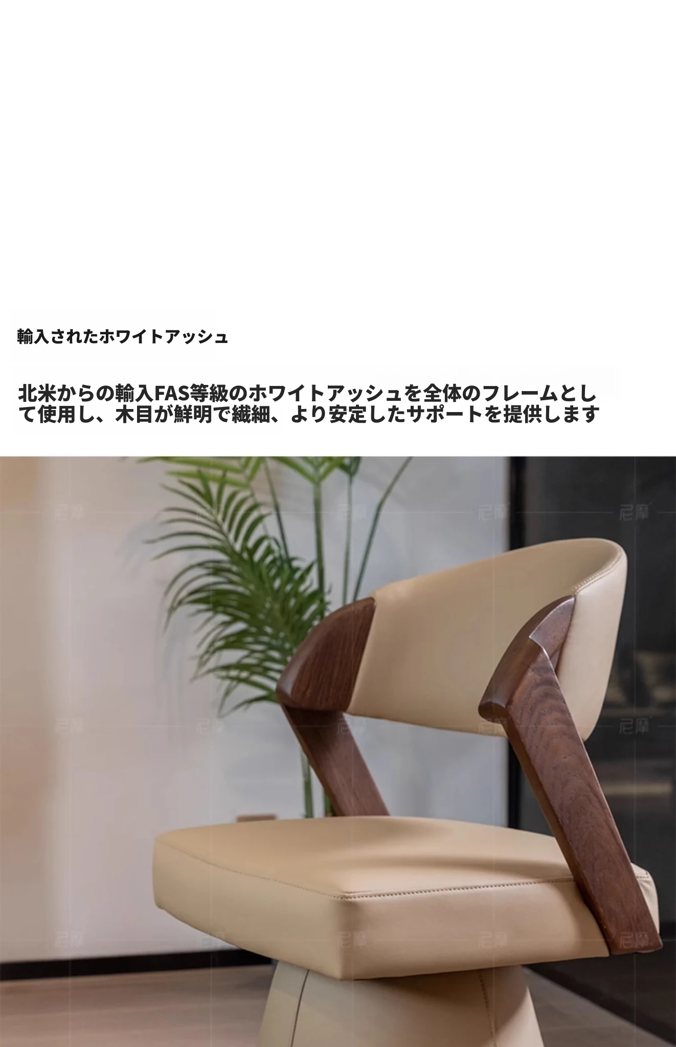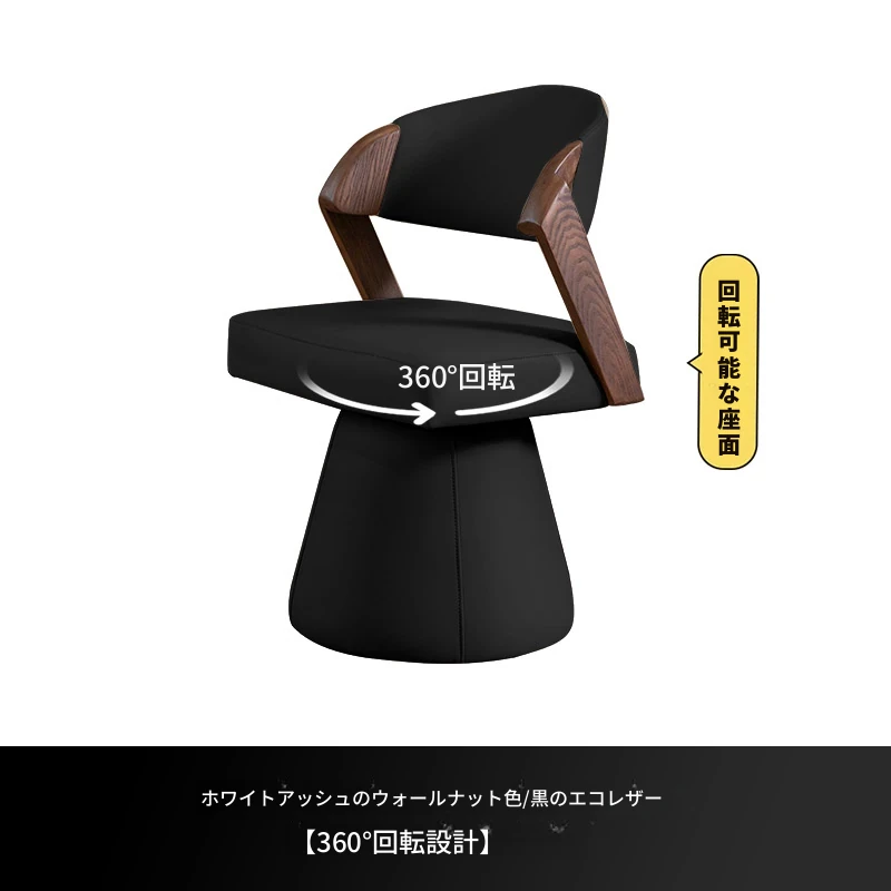 ホワイトアッシュ・ウォールナット色/ブラックエコレザー【360°回転可能】