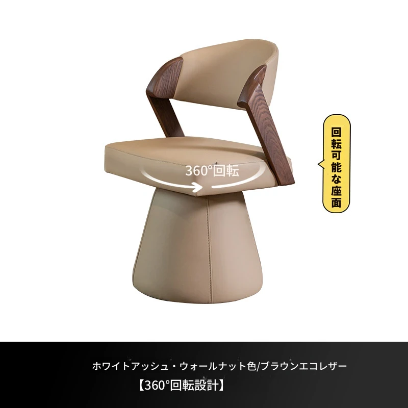 ホワイトアッシュ・ウォールナット色/ブラウンエコレザー【360°回転可能】