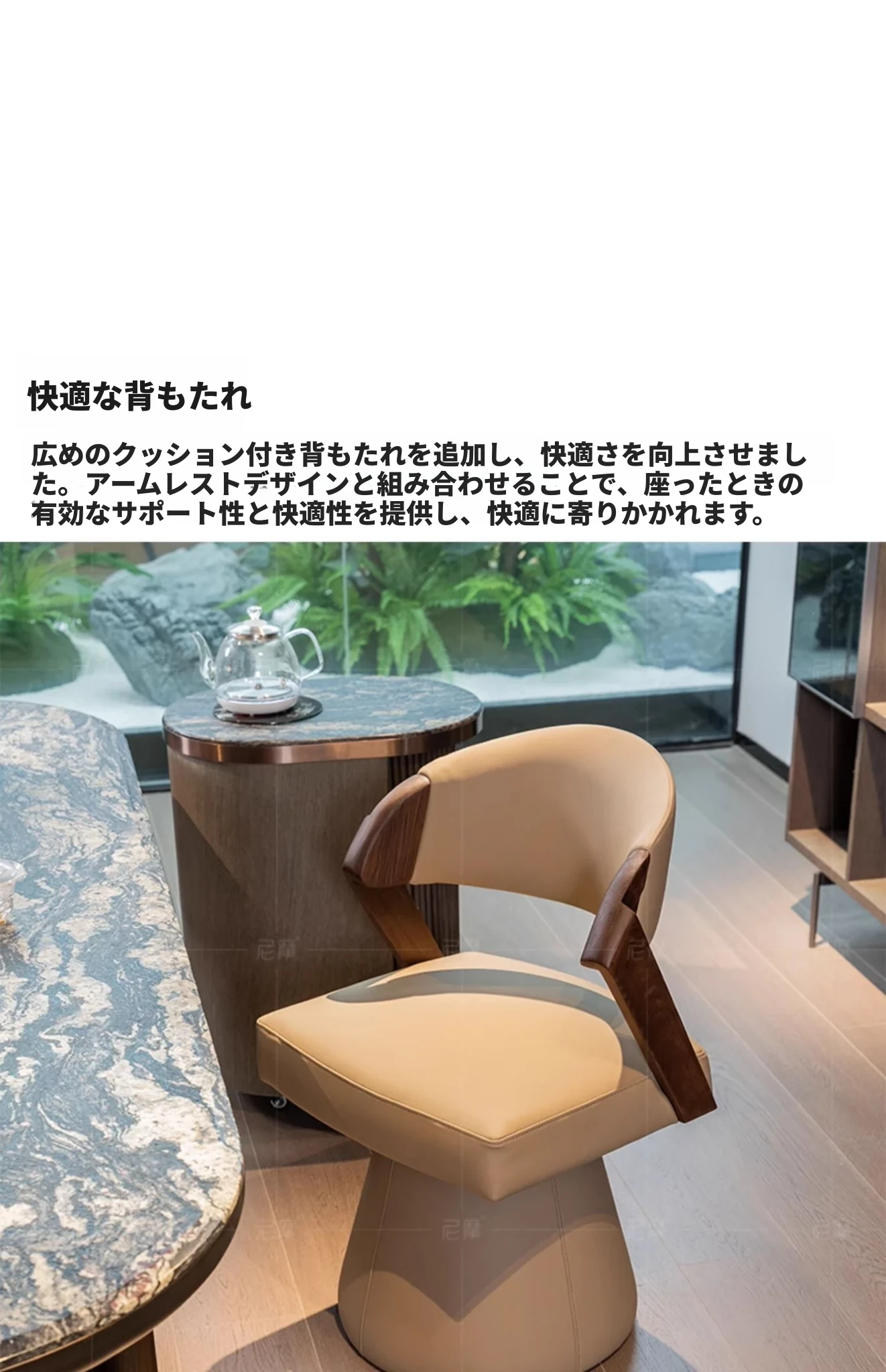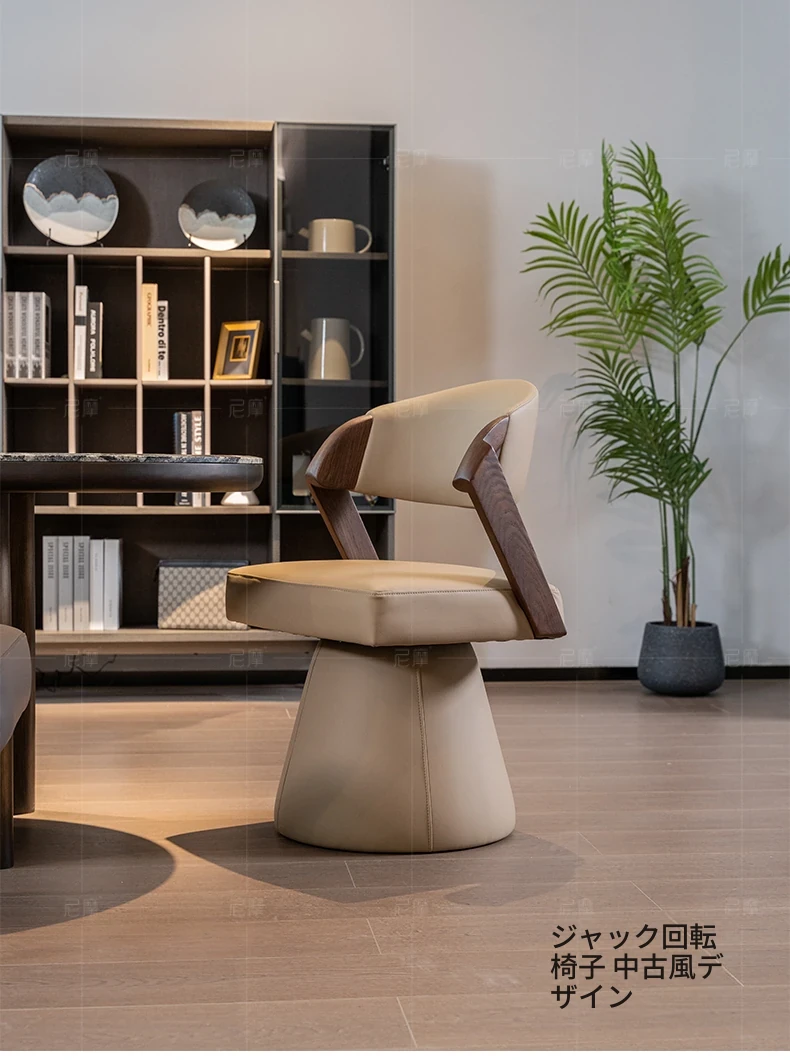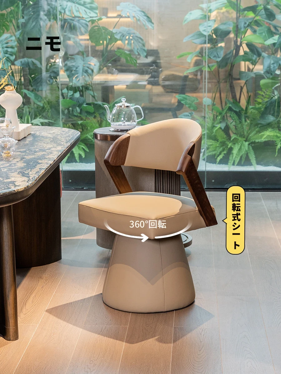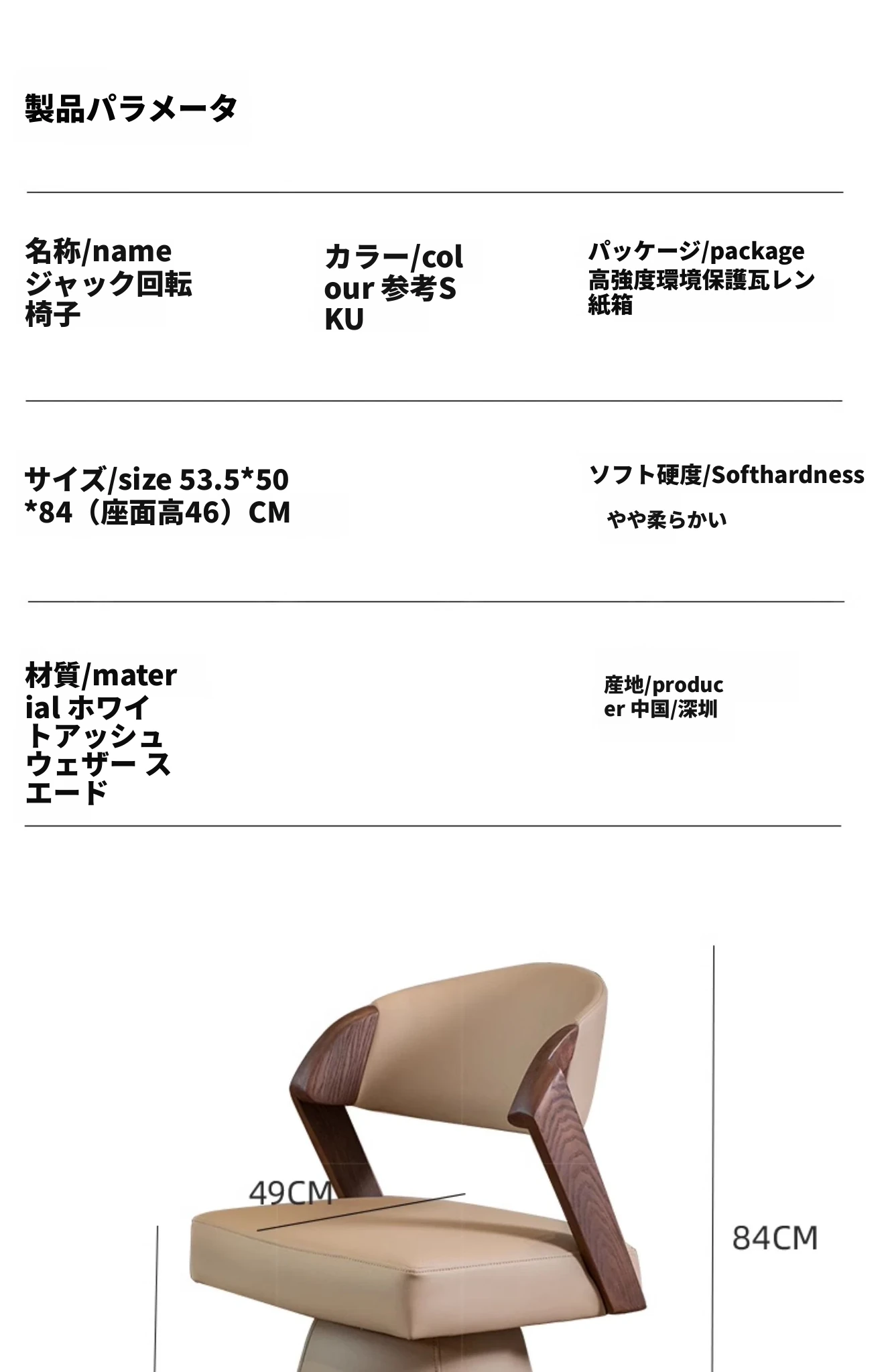 ニモデザイナー2025ラグジュアリー本革回転椅子 オーナーポジション用 ブラックウォールナット ティーカラー アンティークスタイル 無垢材ダイニングチェア