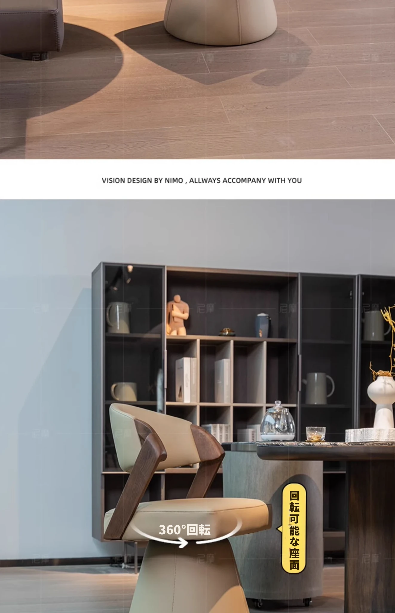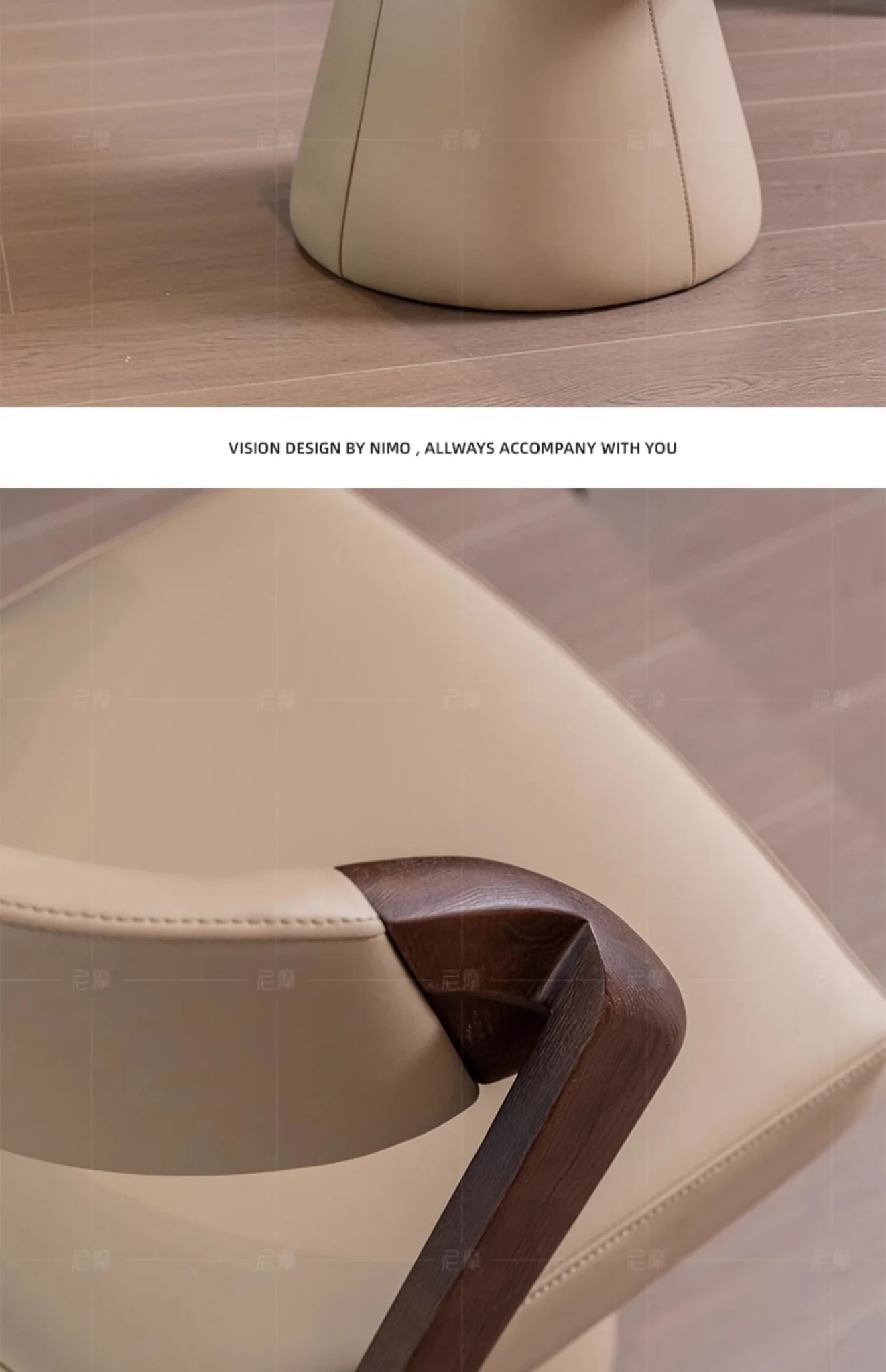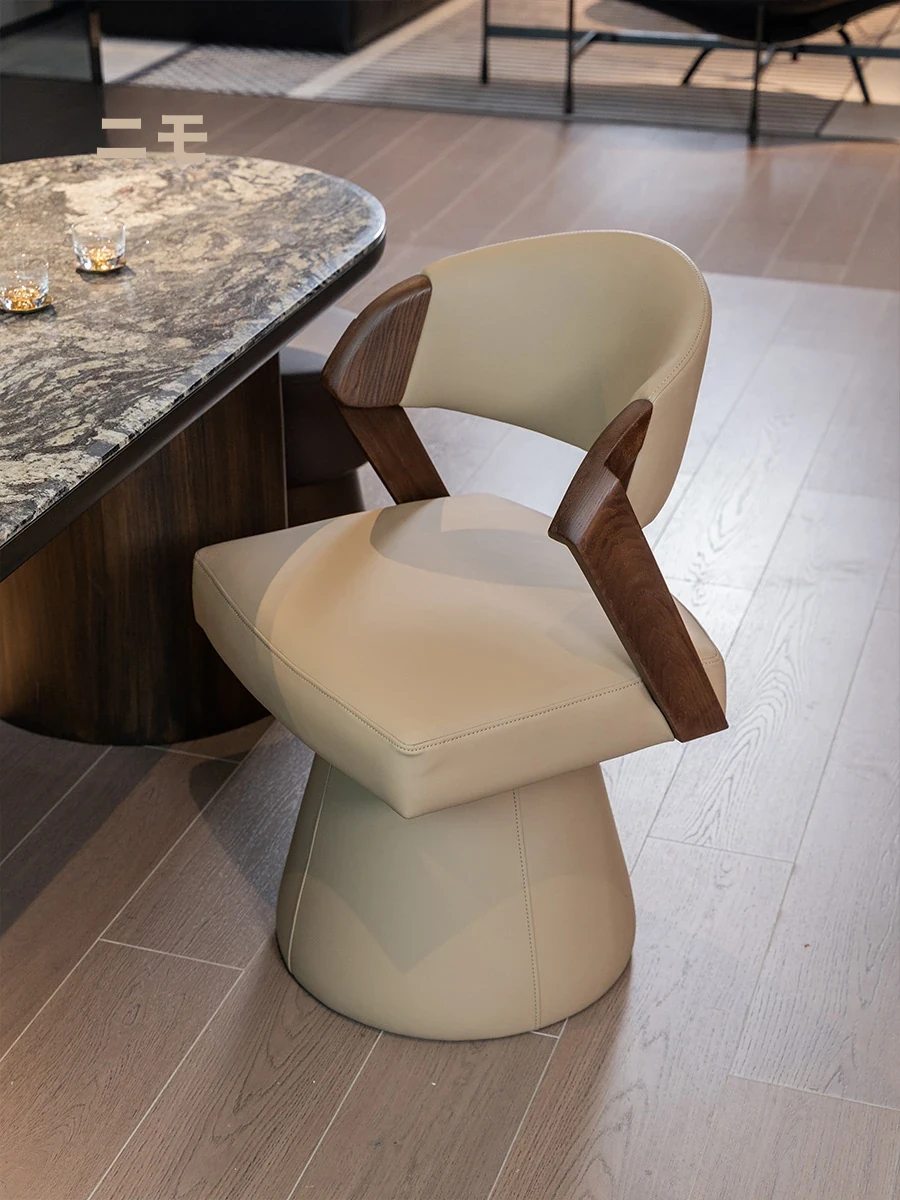 ニモデザイナー2025ラグジュアリー本革回転椅子 オーナーポジション用 ブラックウォールナット ティーカラー アンティークスタイル 無垢材ダイニングチェア