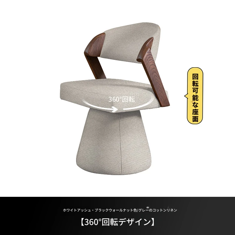 ホワイトアッシュ・ウォールナット色/グレーコットンリネン【360°回転可能】