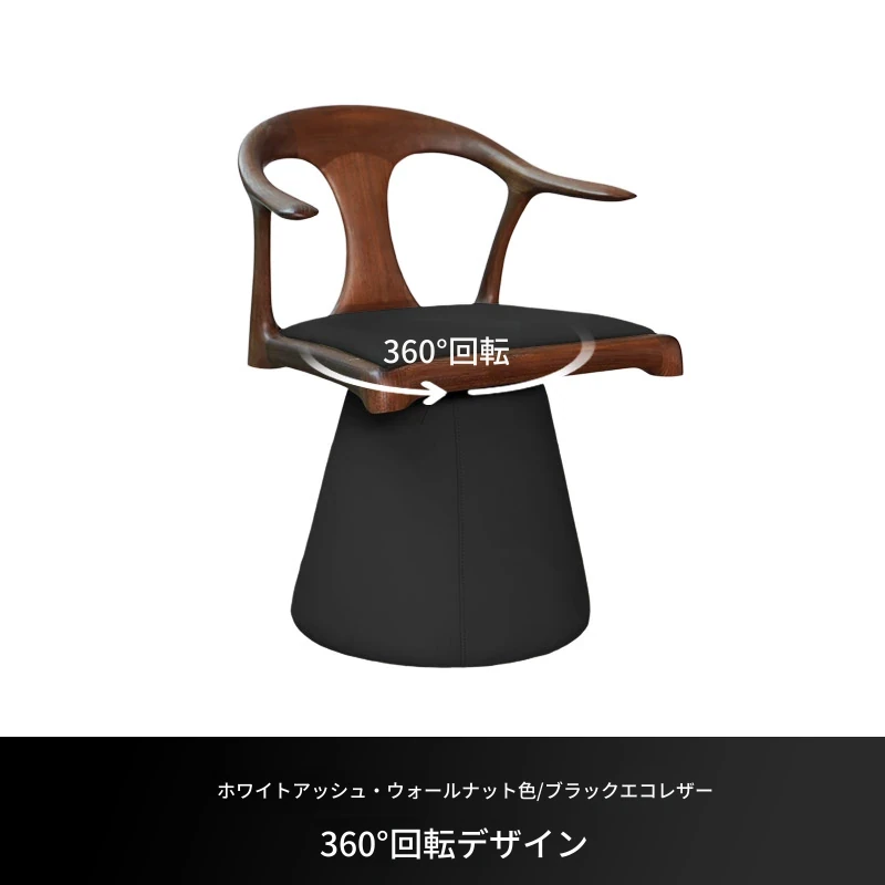 ホワイトアッシュ・ブラックウォールナット色/ブラックエコレザー【360°回転】