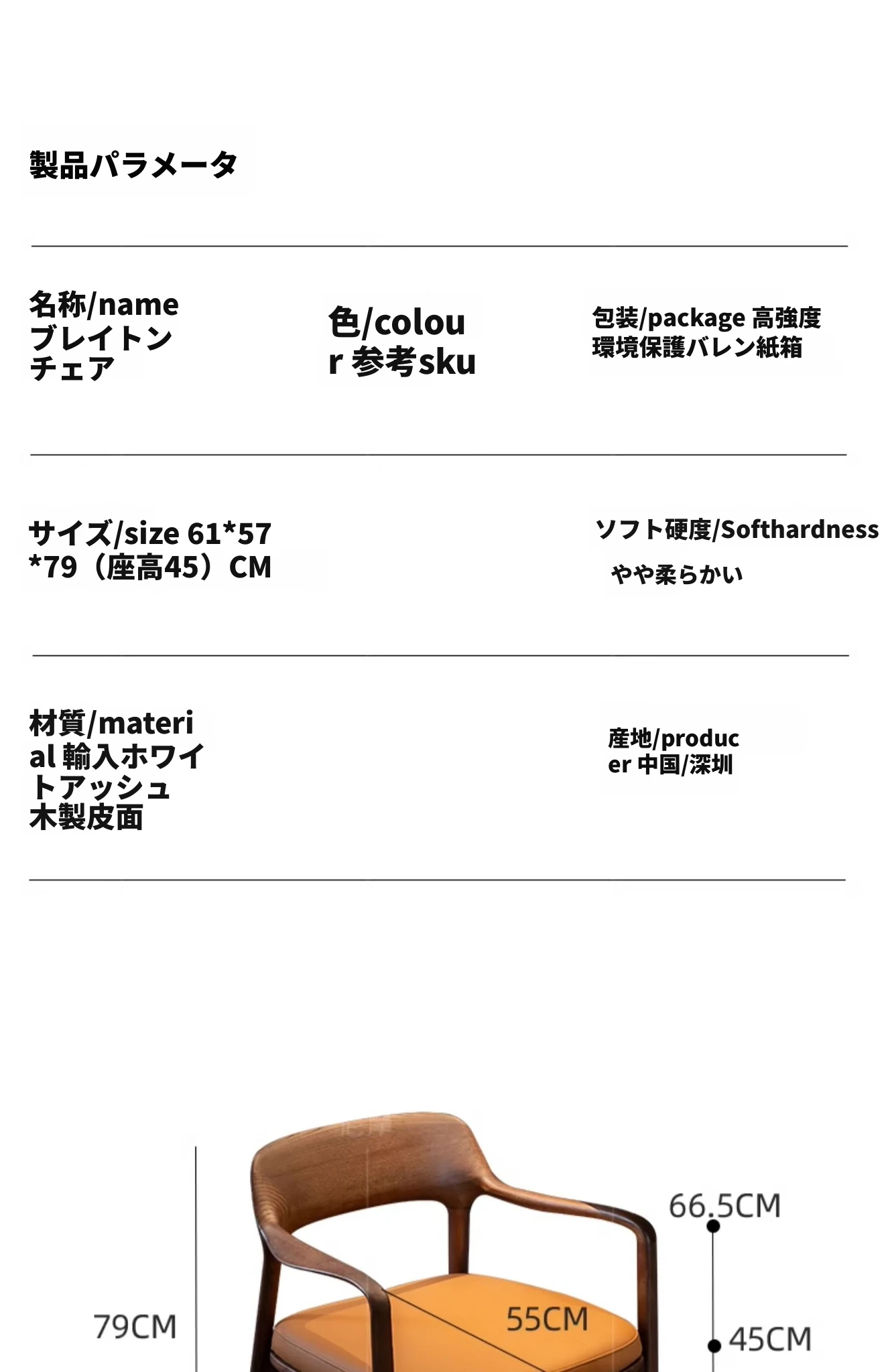 北米ホワイトアッシュ・ウォールナット色/ブラウンエコレザー【輸出バージョン】