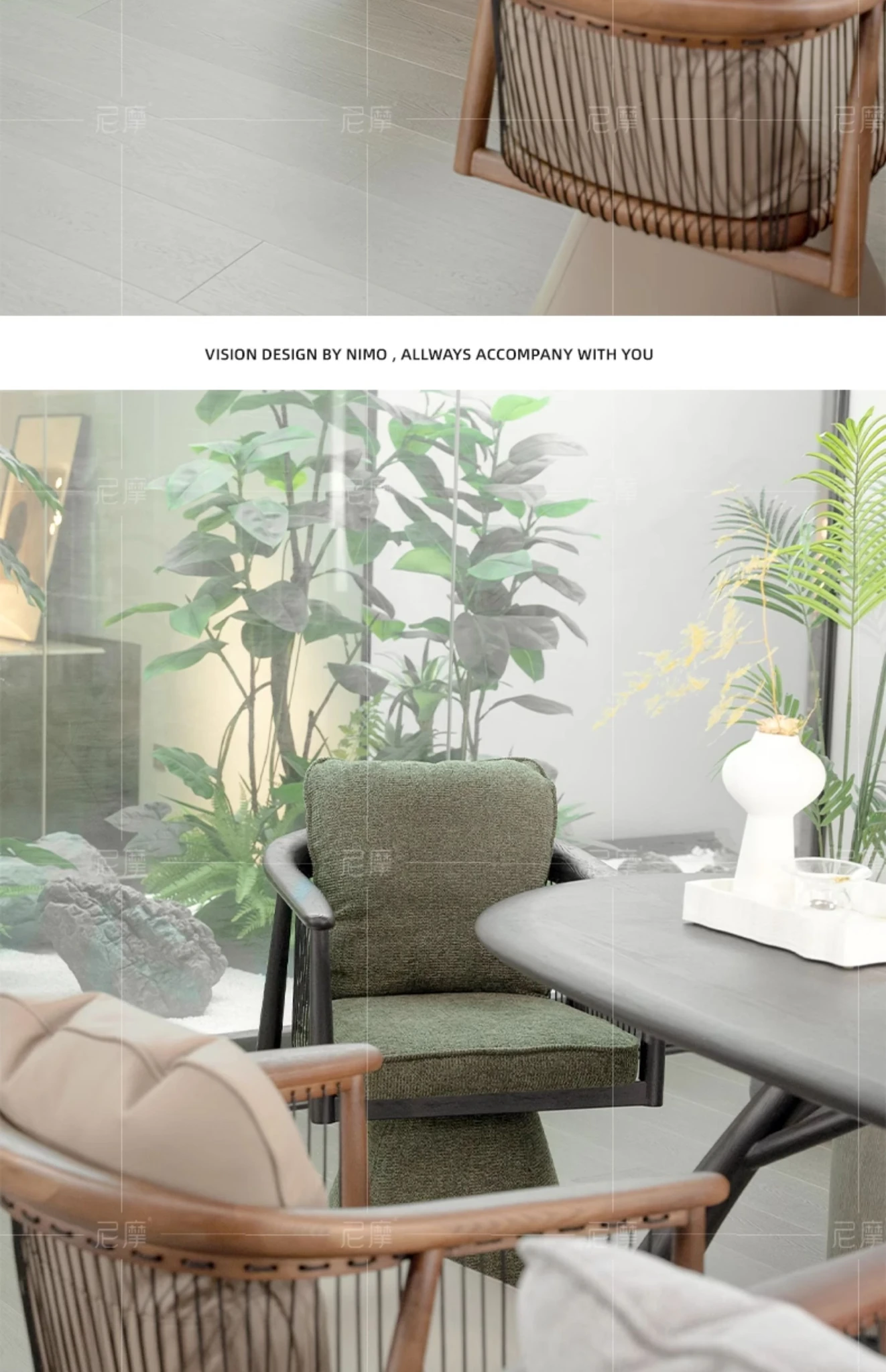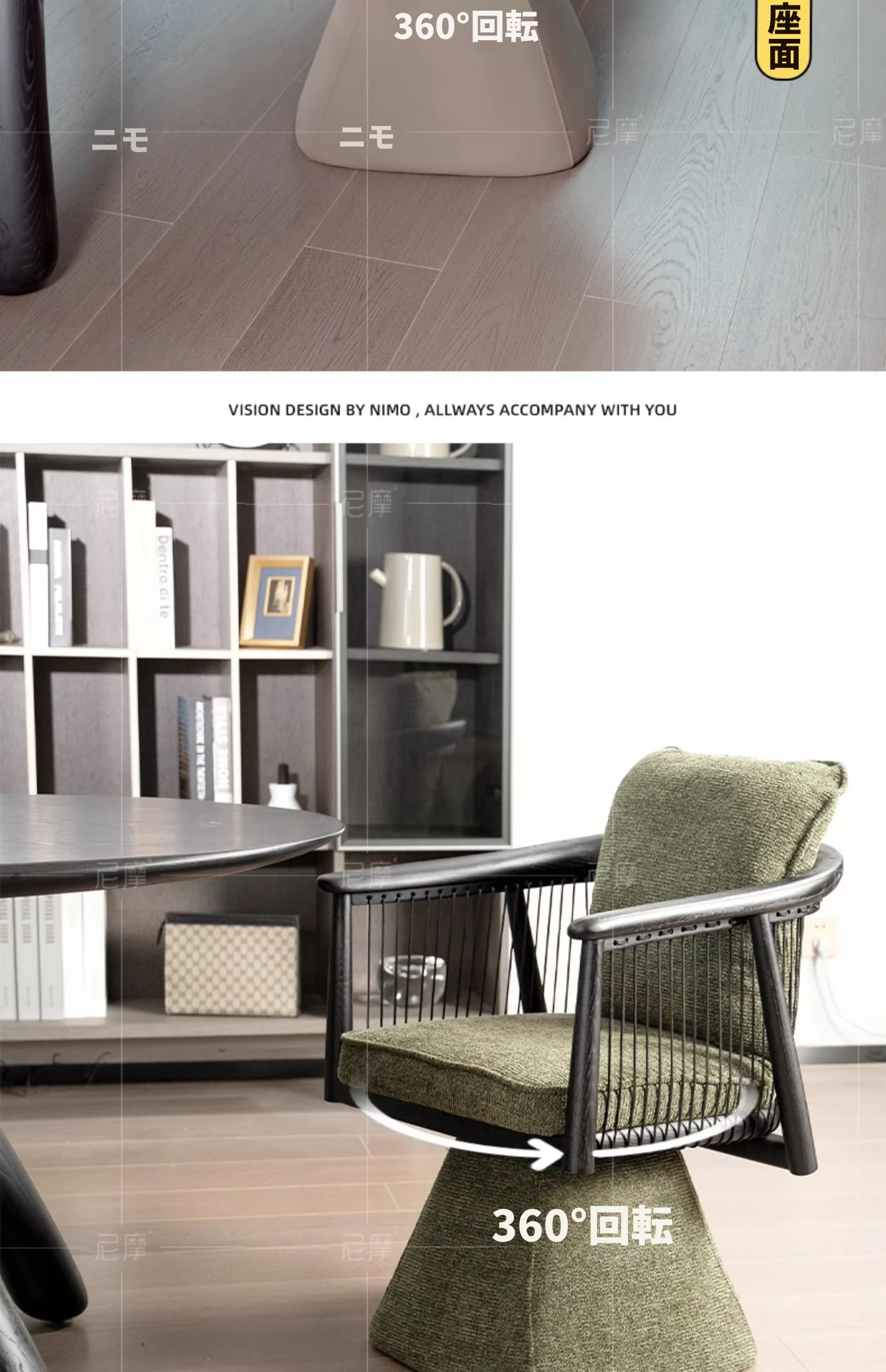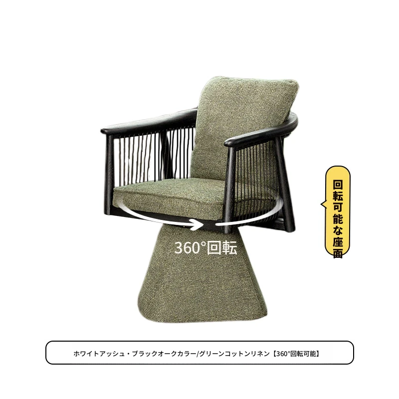 ホワイトアッシュ&ブラックオーク色/グリーンコットンリネン【360°回転】