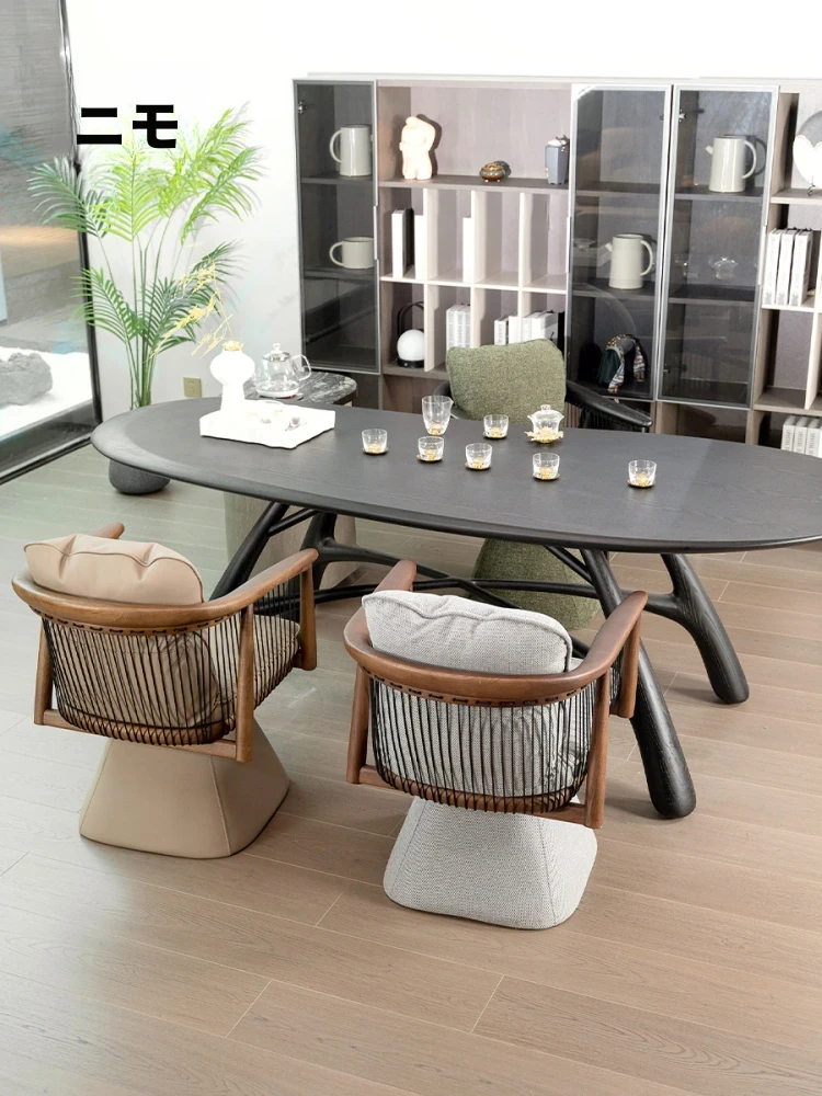 ホワイトアッシュ&ブラックウォールナット色/ブラックトップグレインレザー【360°回転】