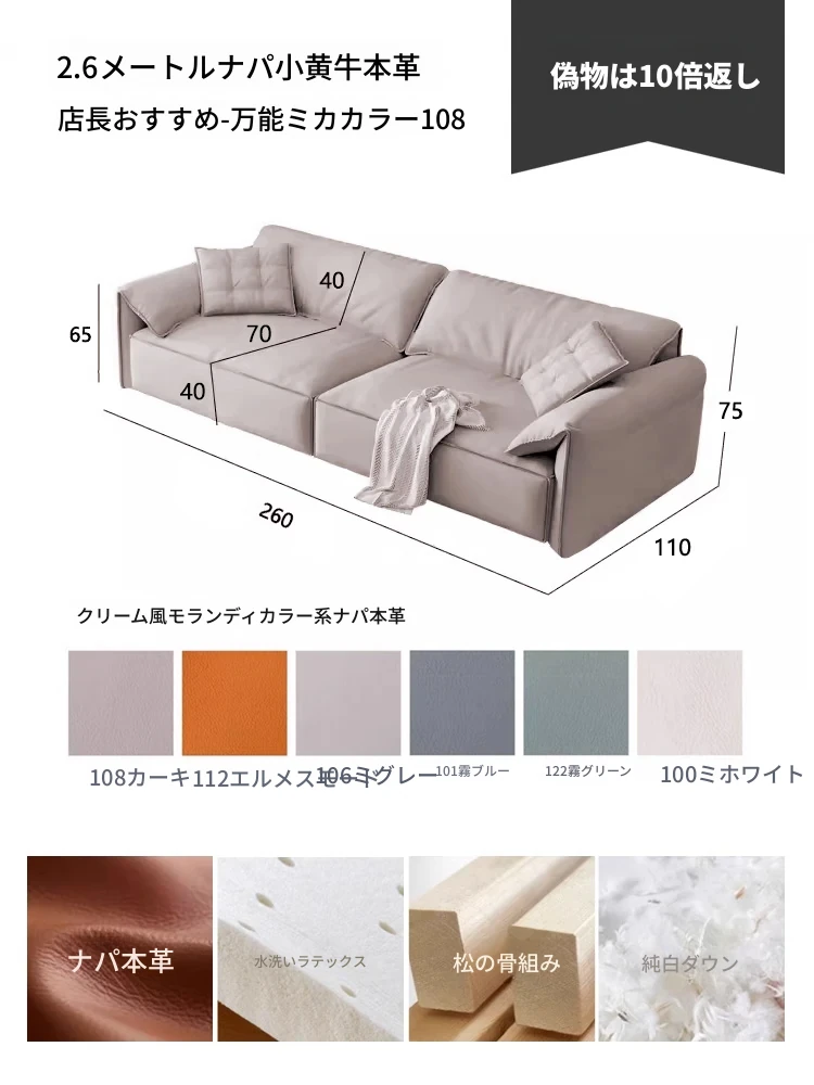 エレガントな象耳ソファセット|イタリアンデザインの本革|東莞・仏山・龍江産|2024年新作|高級な一層牛革使用で、贅沢な座り心地を実現!リビングを華やかに彩るスタイリッシュな選択。
