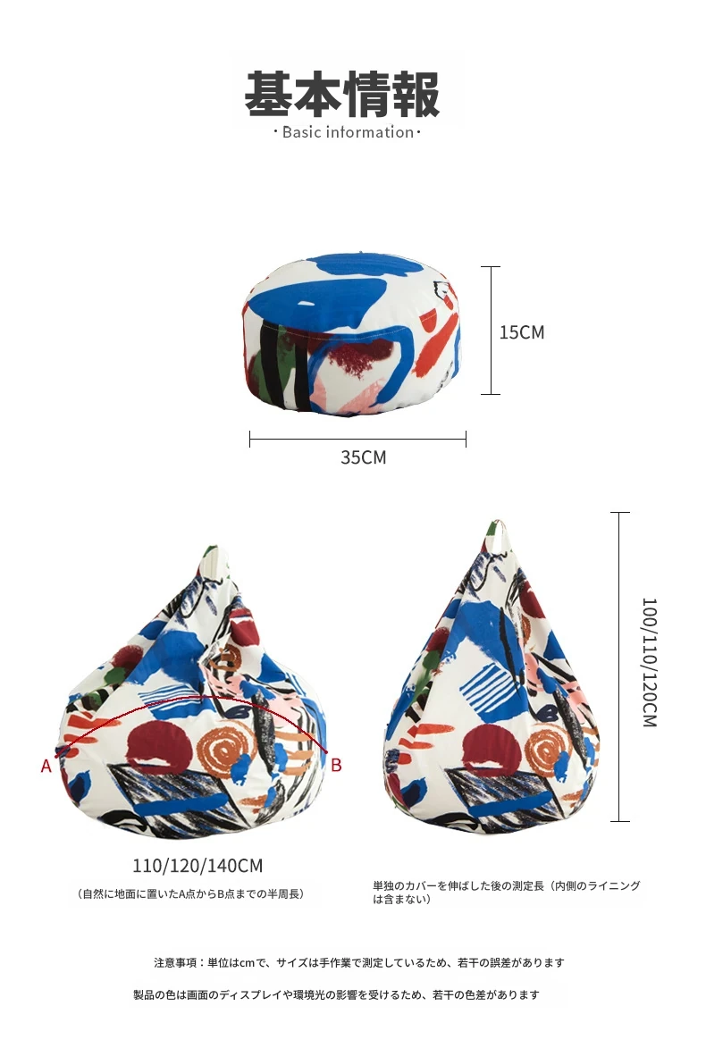 新作!カラフルなラクラク豆袋ソファ - 洗えるシンプルデザイン、子供にぴったりの快適さ。リビングやプレイルームに最適なアイテムです!