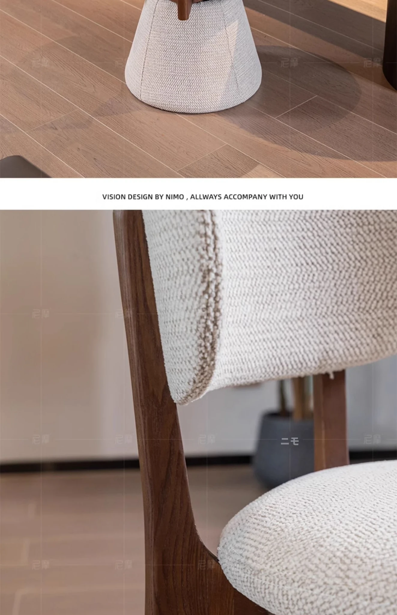ニモミニマリストスタイルの無垢材チェア、ホワイトアッシュのソフトパッド付き、イタリアンデザインのアイブラチェア。快適な背もたれで、スタイリッシュなダイニング体験をお楽しみください!