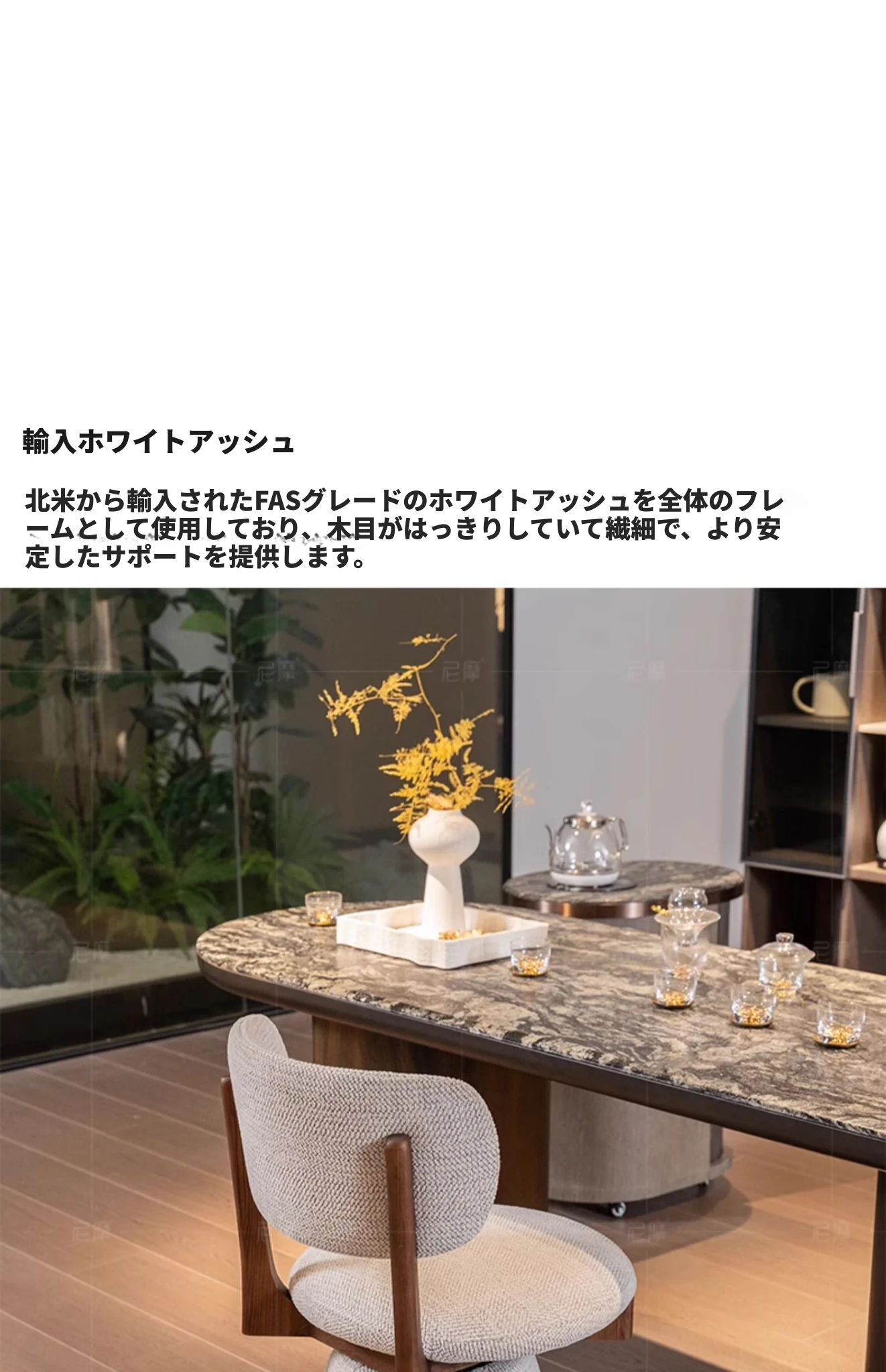無垢材のシンプルな和風ダイニングチェア|軽やかなラグジュアリー感と心地よい休息を提供|侘び寂びの美学を取り入れたデザイン|家庭用に最適なテーブルチェアとリラックスチェア