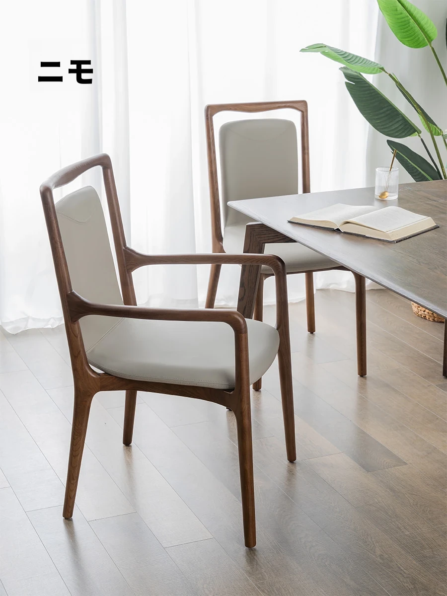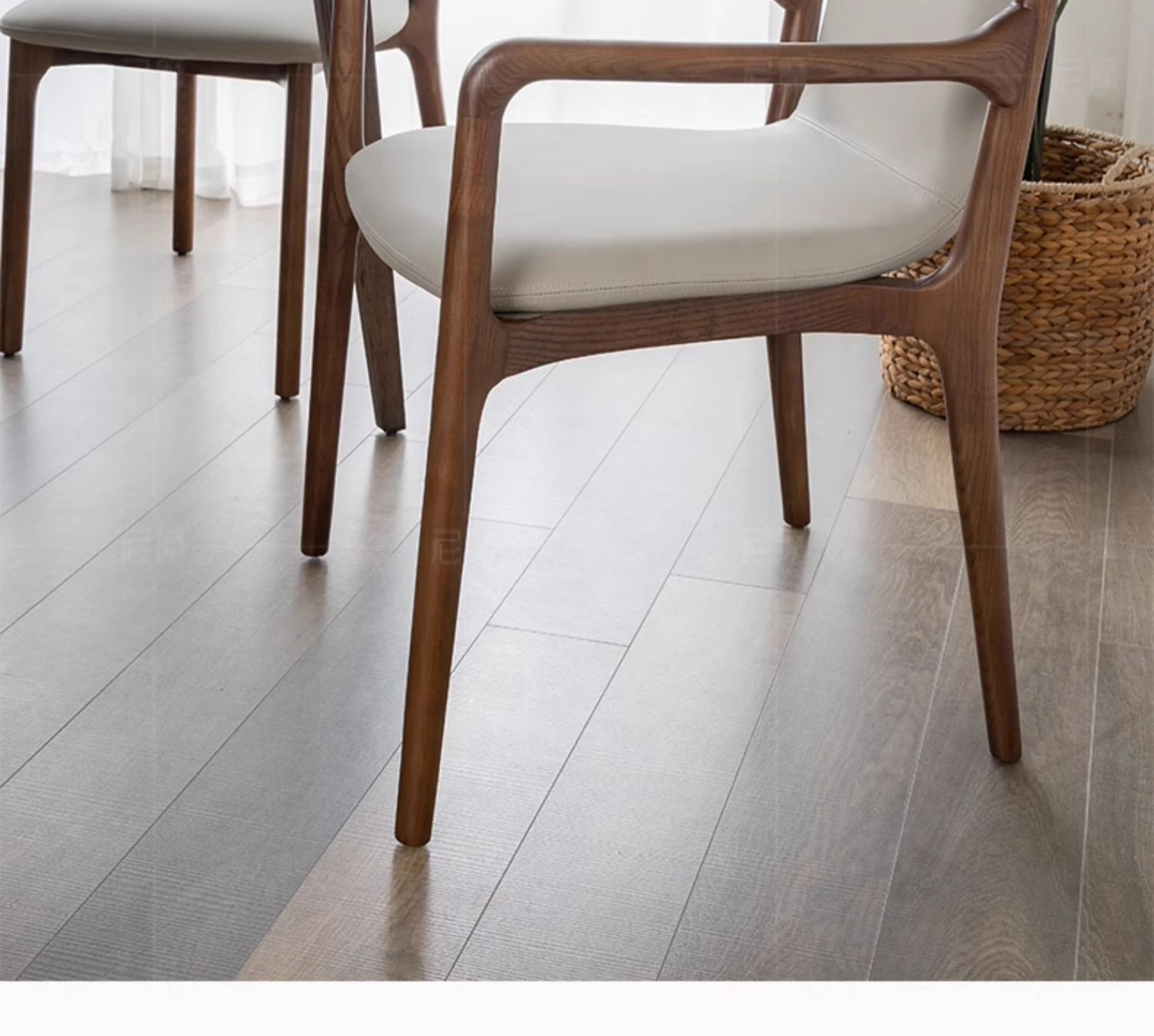 Bタイプのホワイトアッシュ・ウォールナット色/グレーの革(アームレストあり)