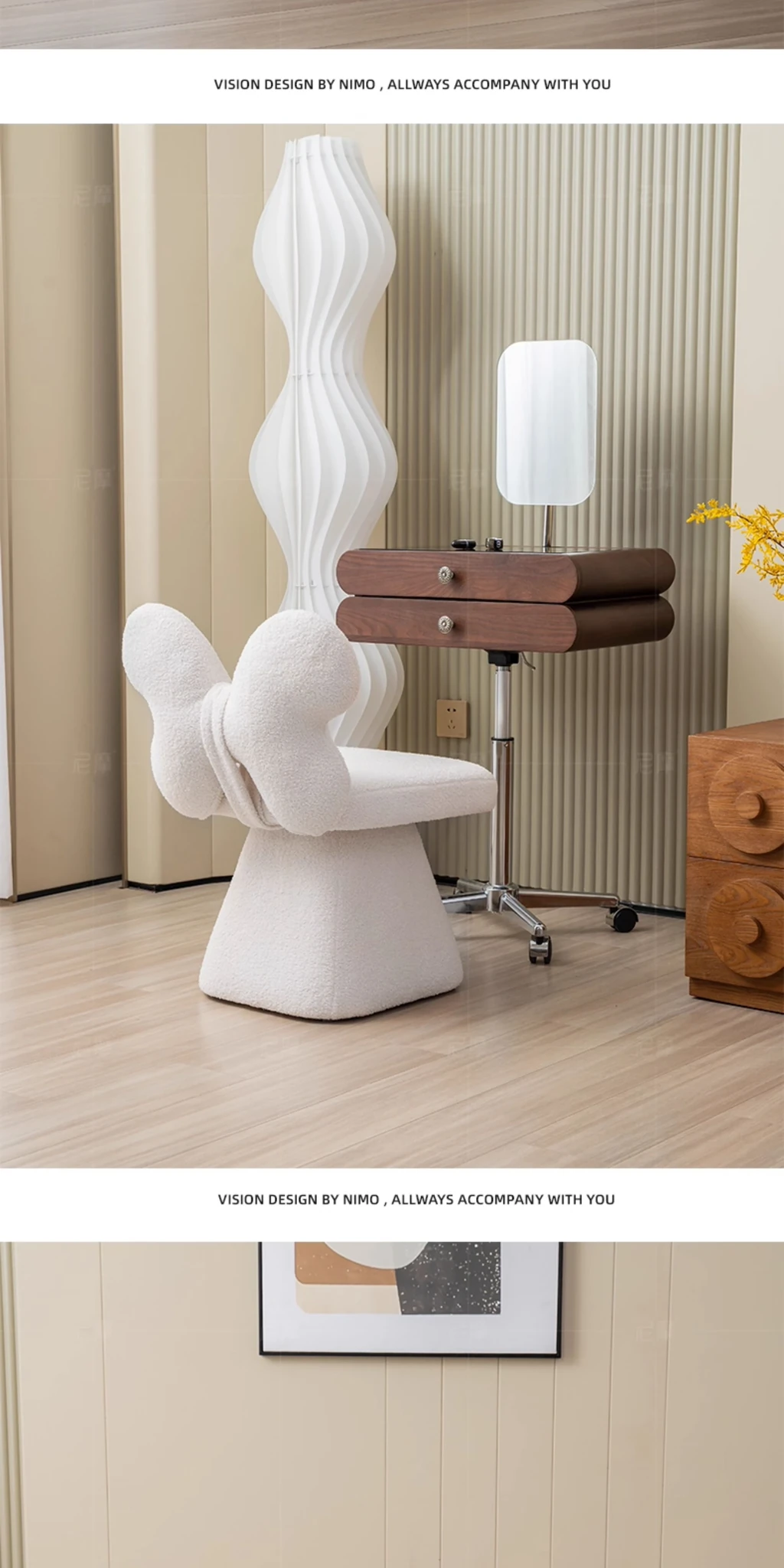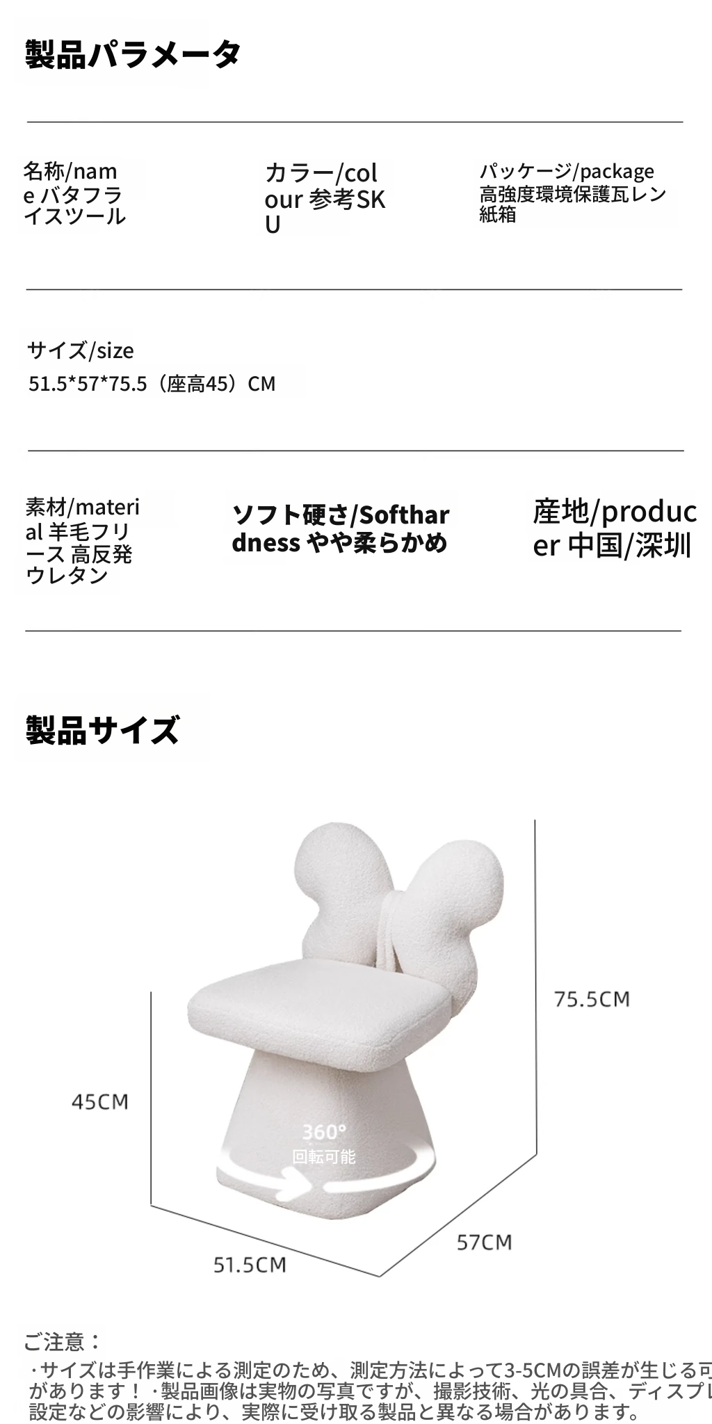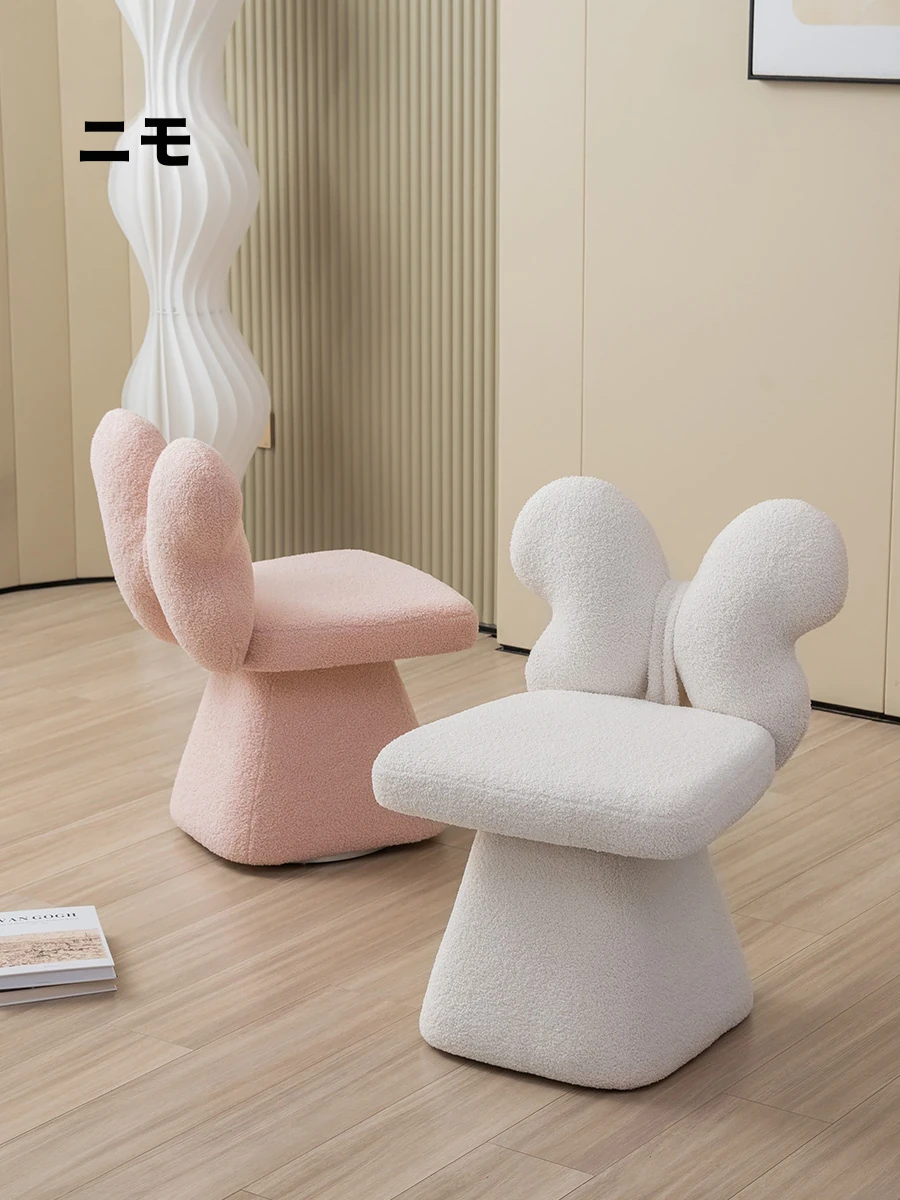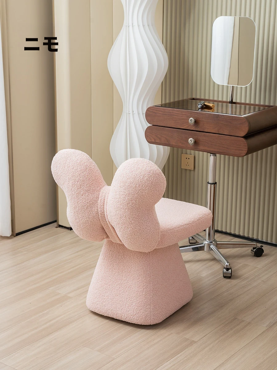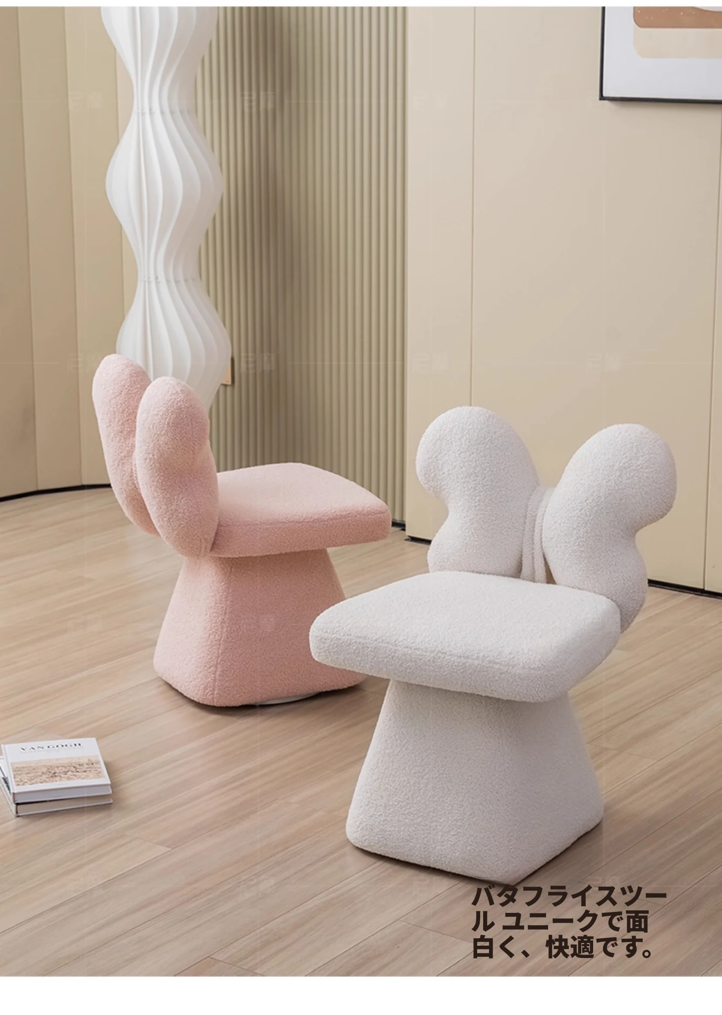 新作デザイナーによるミニマルなクリーム風バタフライチェア、寝室にぴったりの回転式メイクアップチェア。ラグジュアリーな雰囲気を演出する高級ドレッシングスツール!あなたの特別な空間に最適です。