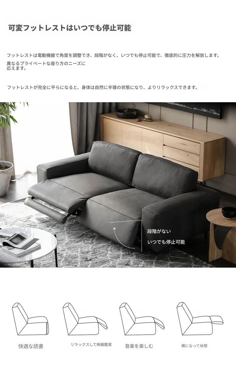 北欧スタイルのイタリア製本革FUORホームシアター電動多機能ソファ・3人掛け・コンパクトなお部屋に最適!快適な座り心地と洗練されたデザインで、あなたのリビングをスタイリッシュに演出します!