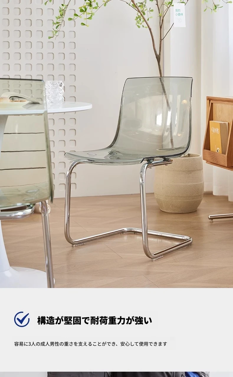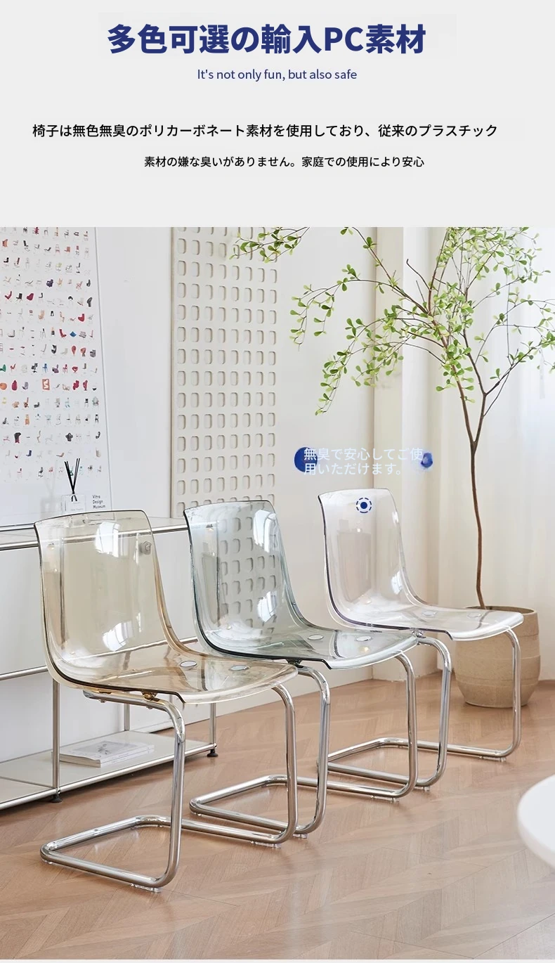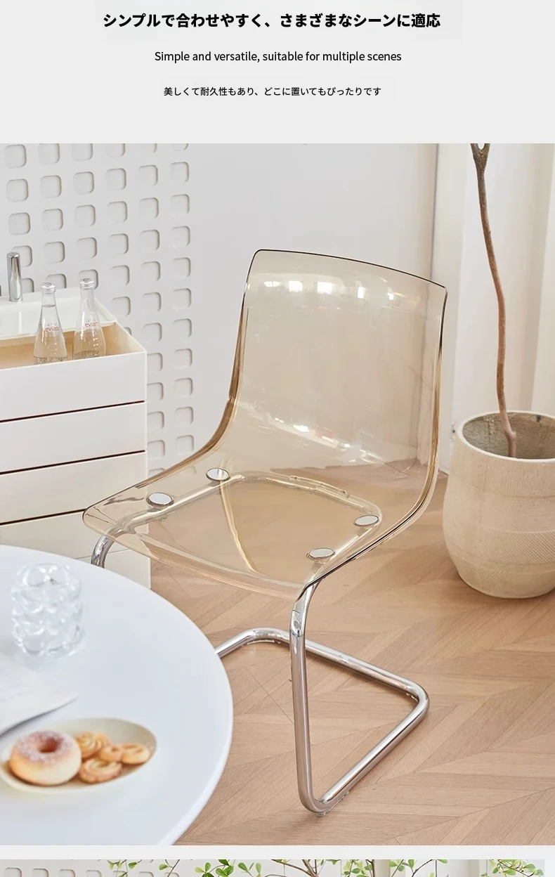 北欧風ミニマリスト透明チェア|快適な長時間座りに最適なアクリル製|上質感溢れるダイニングチェア|家庭用にぴったりの背もたれ付きデザイン