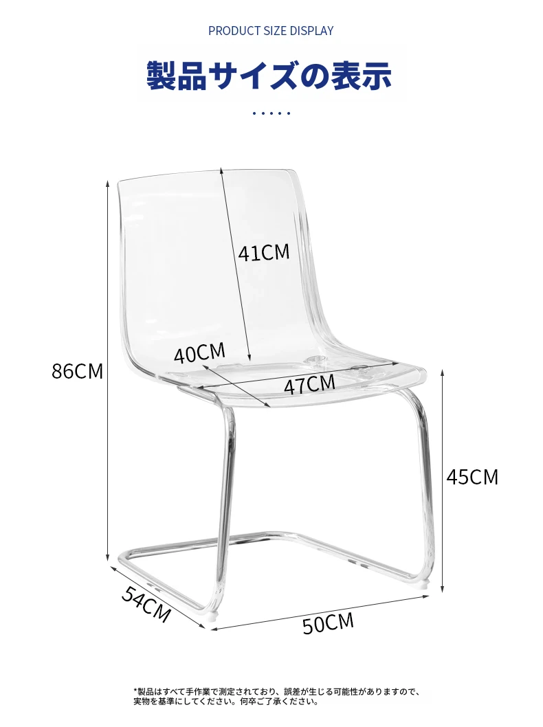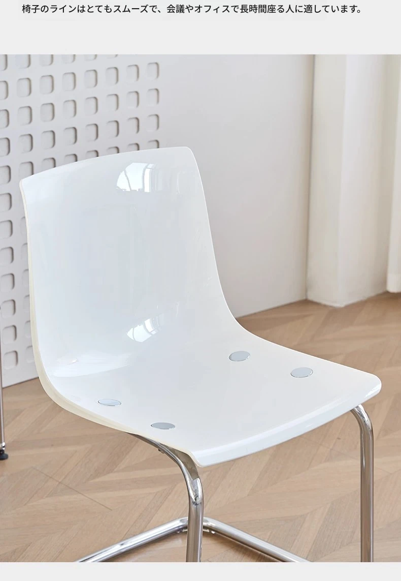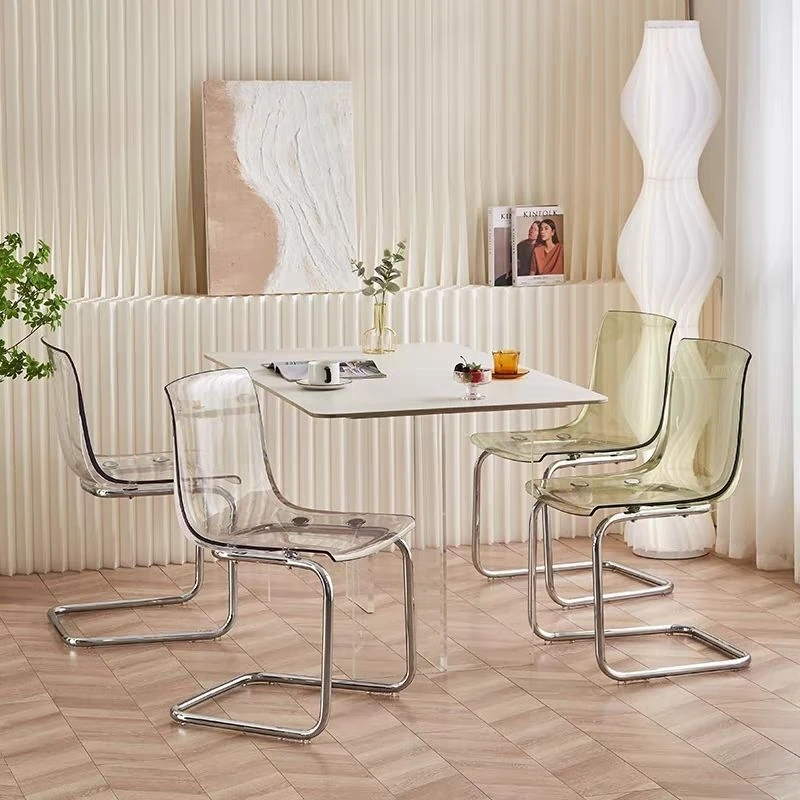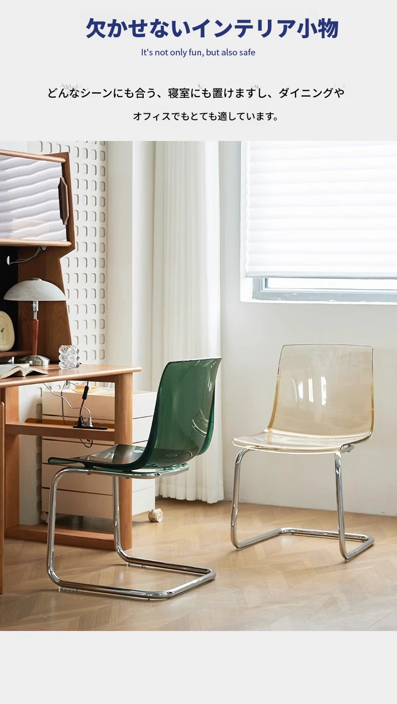 北欧風ミニマリスト透明チェア|快適な長時間座りに最適なアクリル製|上質感溢れるダイニングチェア|家庭用にぴったりの背もたれ付きデザイン
