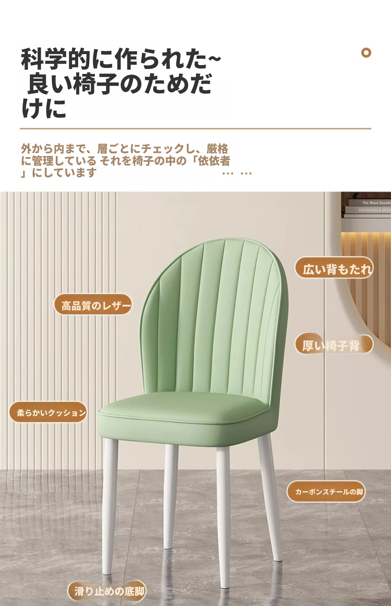 北欧風モダンシンプル背もたれ付きダイニングチェア|家庭用・カフェ用|快適なソフトパッキング|リラックスできるクリームカラーのテーブルチェア