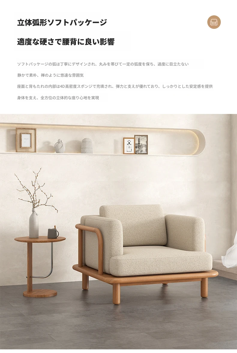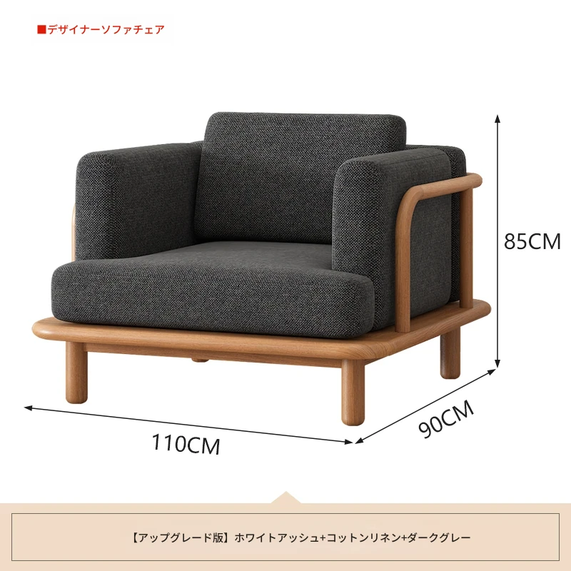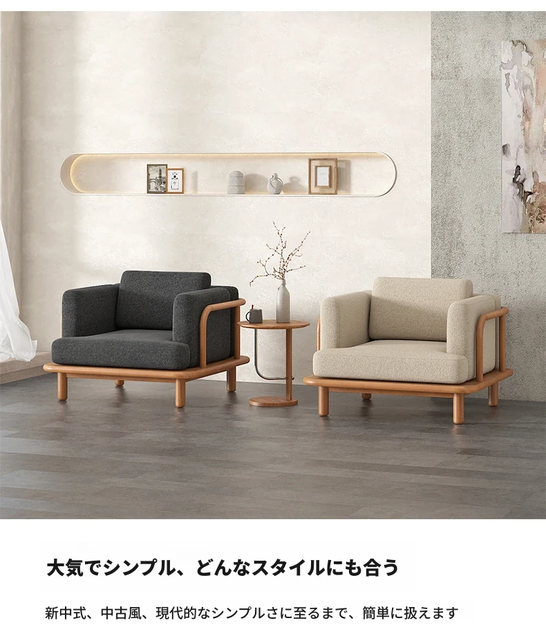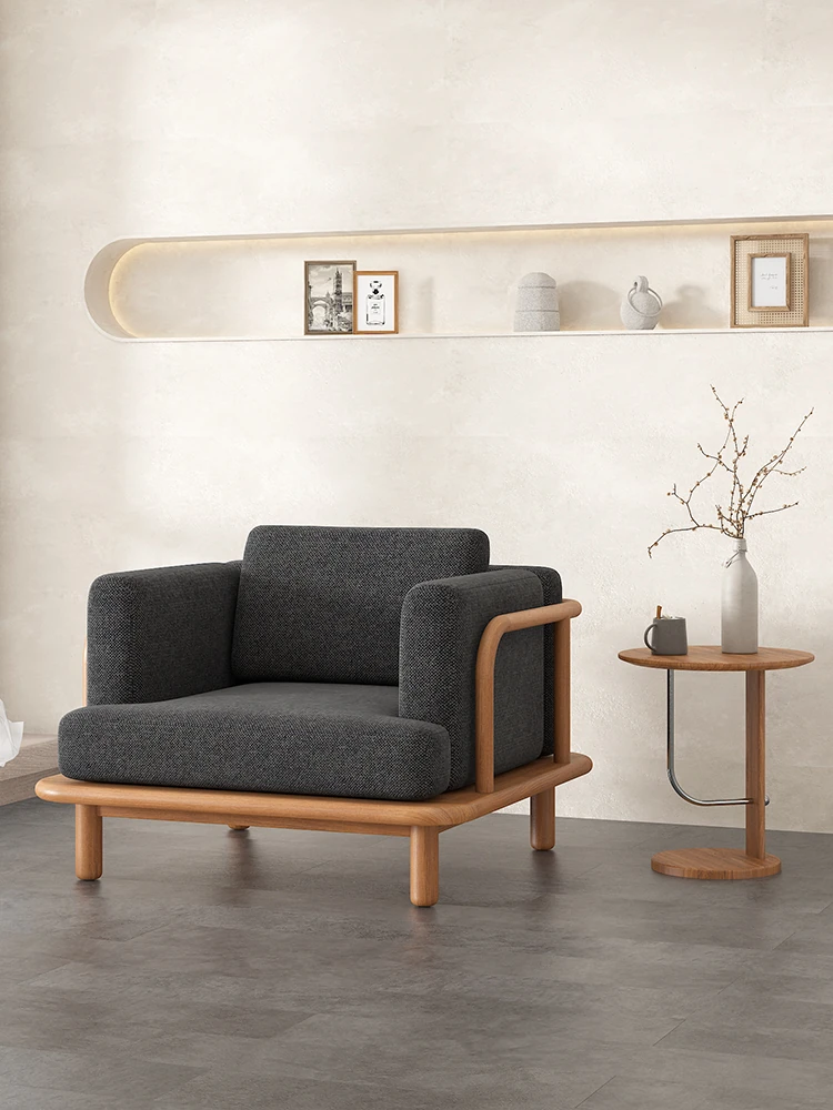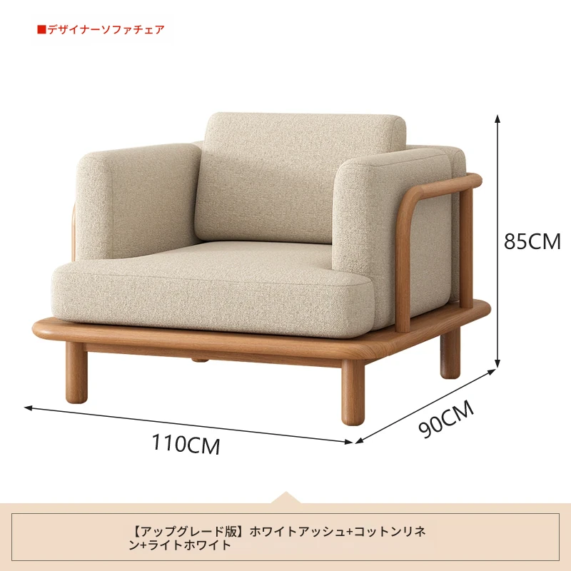 北欧スタイルの無垢材一人掛けソファチェア - モダンでシンプルなデザイン、リビングやバルコニーに最適なリラックスチェア。デザイナーによるラグジュアリーなラウンジソファで、あなたのくつろぎ空間を演出します!