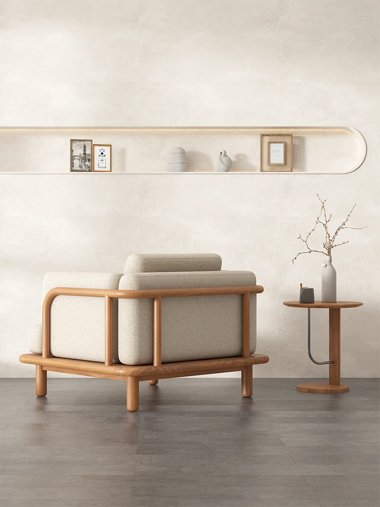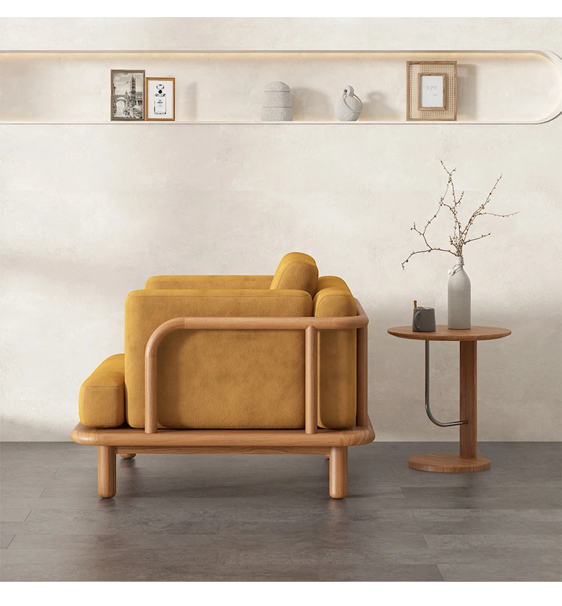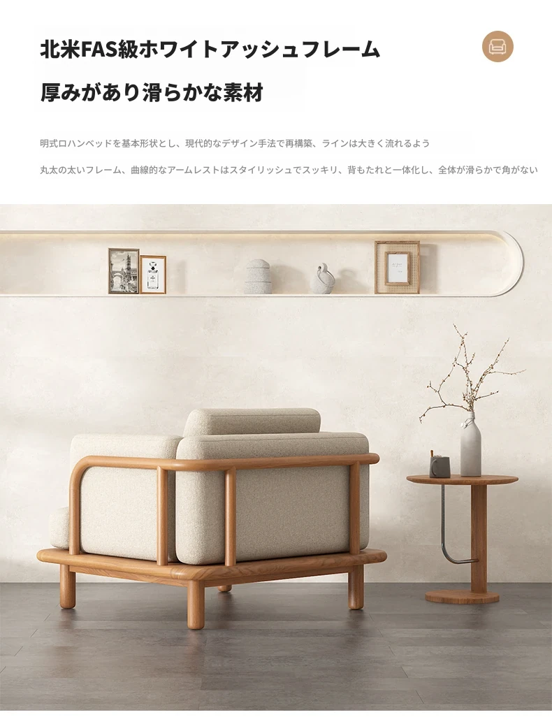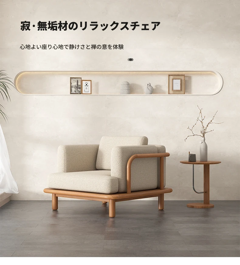 北欧スタイルの無垢材一人掛けソファチェア - モダンでシンプルなデザイン、リビングやバルコニーに最適なリラックスチェア。デザイナーによるラグジュアリーなラウンジソファで、あなたのくつろぎ空間を演出します!