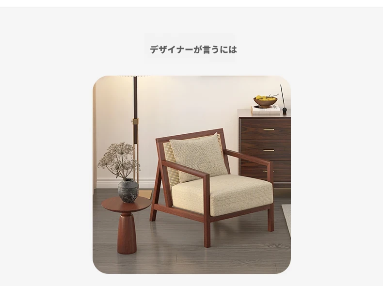 ヴィンテージ風の一人掛けソファ、クリーミーなウルフデザイン、北米産のブラックウォールナット使用!デザイナーによるクリエイティブな無垢材リラックスチェアで、居心地の良い空間を演出します。