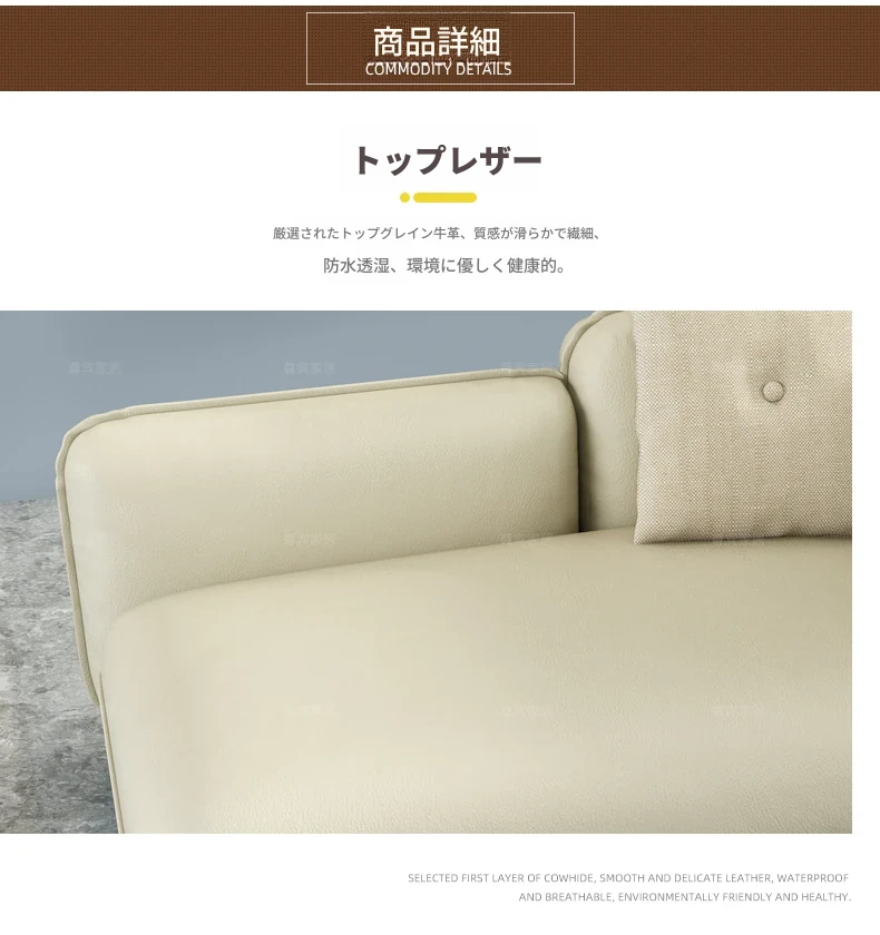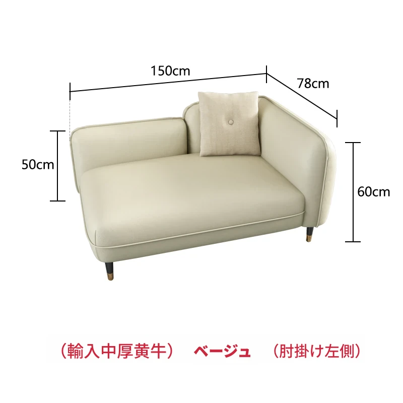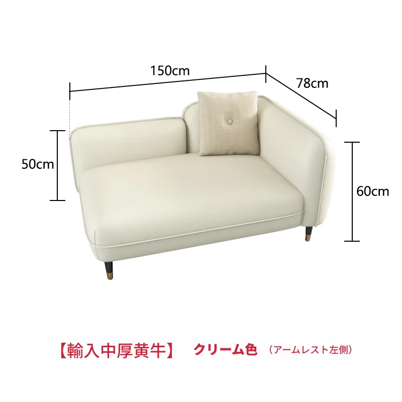 【輸入中厚黄牛】米黄色(アームレスト左側)