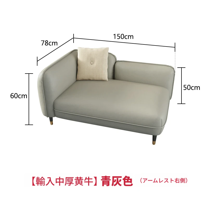 【輸入中厚黄牛】青灰色(アームレスト左側)