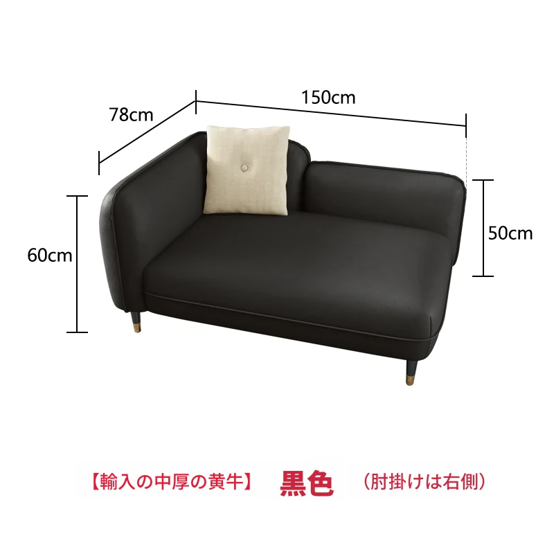 【輸入中厚黄牛】黒色(アームレスト左側)